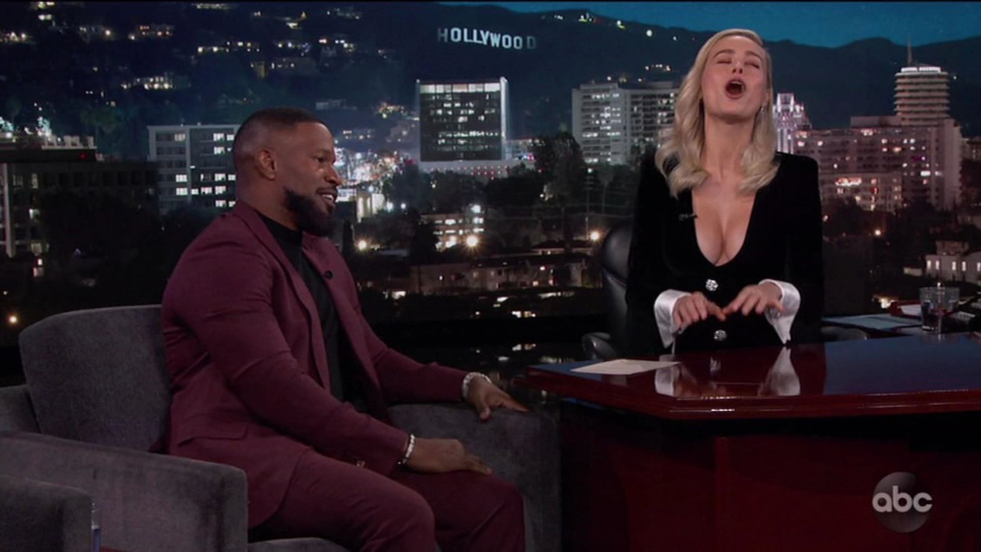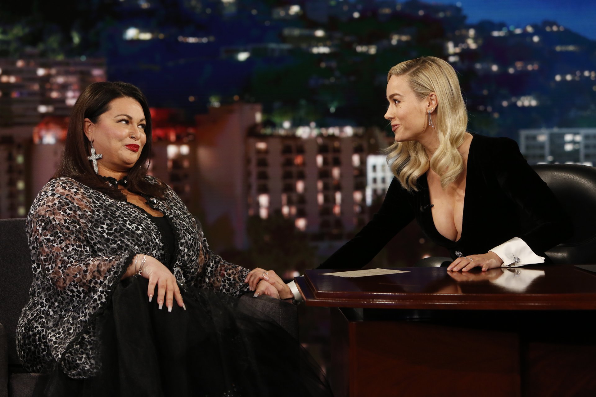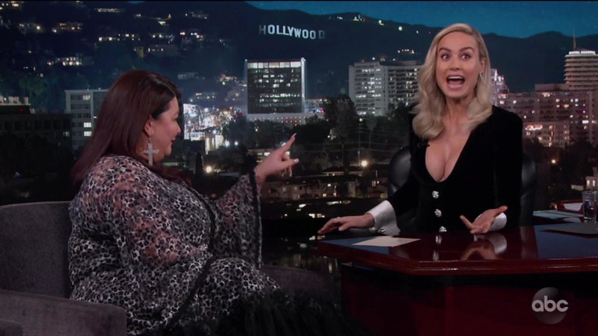 Molly confirmó que ese era su superpoder, lo que llevó a Brie a señalar su vestido y bromear: “¡Te lo puse muy fácil! ¡Aquí tienes!” Molly entonces le dijo: “Eres una 30F, que es de triple D a G, pero no es lo que compras.” Una sorprendida Brie respondió: “¡No compro eso!” Molly añadió: “Compras como 34Ds,” a lo que Brie respondió: “¡Santo cielo!” Molly luego le preguntó: “¿Eso es lo que compras?” y la estrella confirmó: “¡Sí!” Después de que Molly se quejara de que “nadie en América sabe las tallas de sujetador”, Brie sacó una foto de Taylor Swift en la nueva película Cats y dijo: “Tengo una pregunta difícil para ti. ¿Cuál es la talla de sujetador de esta?” Molly respondió riendo: “Ella es un poco más pequeña, es una D.” Brie, que se había burlado de la nueva película Cats en el monólogo de apertura del programa, preguntó: “¿Estás teniendo en cuenta el pelaje?” a lo que Molly dijo: “Oh sí.” También en el programa Brie entrevistó a su compañero de Just Mercy Jamie Foxx, quien también comentó sobre su apariencia, diciéndole: “¡Te ves increíble, eres hermosa!”