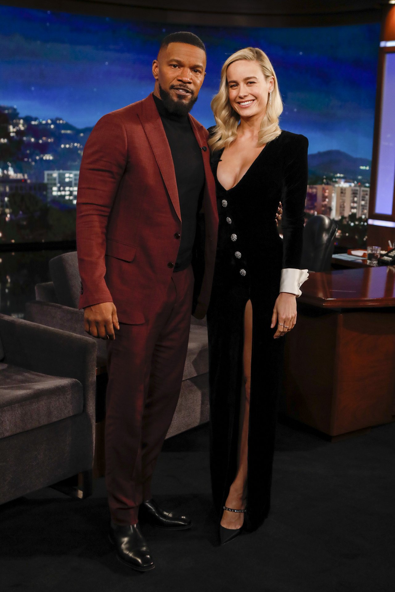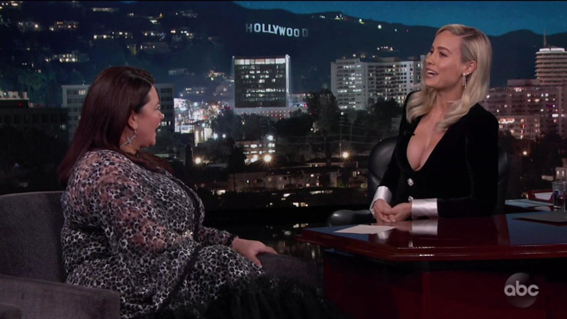 Brie Larson muestra su impresionante pecho 34D en un vestido increíblemente escotado mientras actúa como presentadora en Jimmy Kimmel Live, 19/11/2019. La estrella de Captain Marvel y Fappening evitó por poco un fallo de vestuario mientras presentaba el programa de entrevistas nocturno con un impresionante vestido negro que no solo mostraba sus pechos sino que también tenía una sexy abertura alta en el muslo.