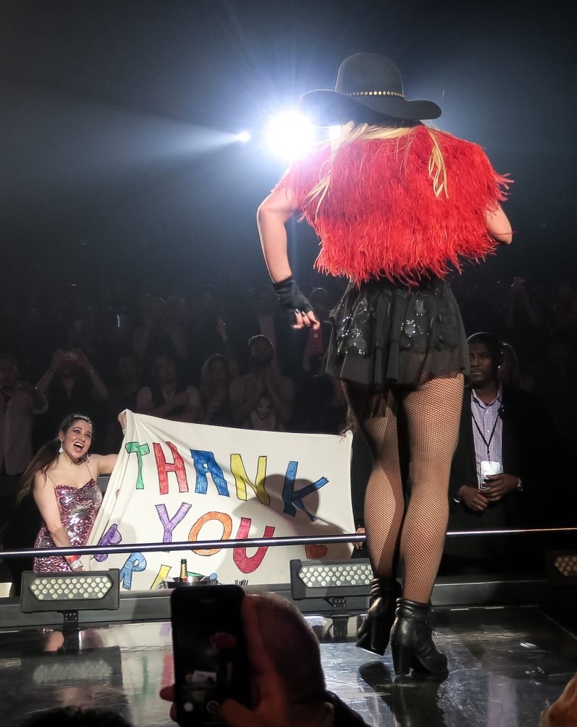 Aunque se ve bien para su edad, puede que sea hora de pensar en pasar a un concierto más maduro. Creo que ya superó la etapa de "correr por el escenario con atuendos de Fredericks of Hollywood" en su carrera.