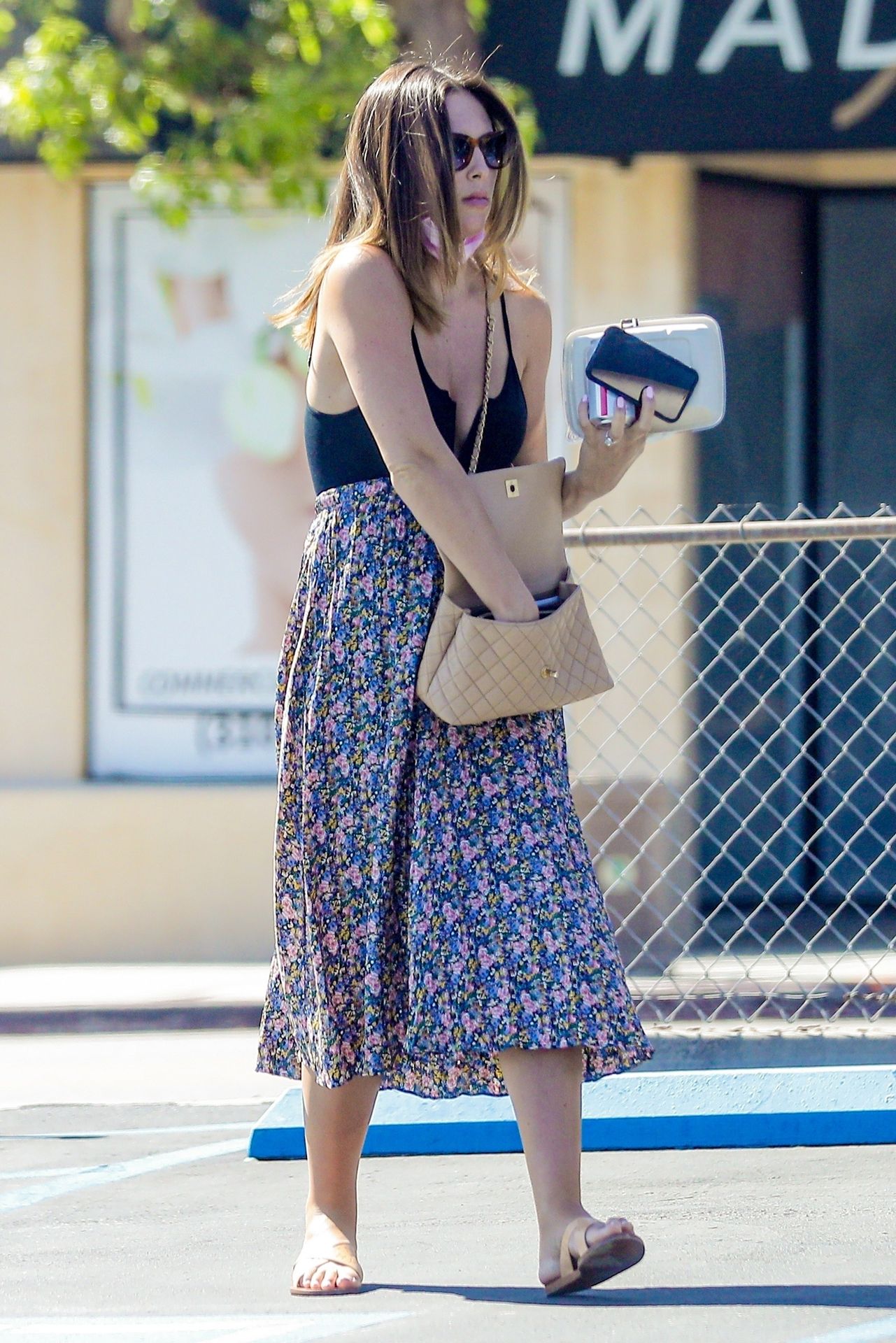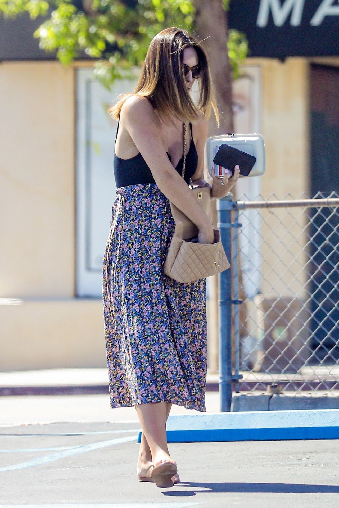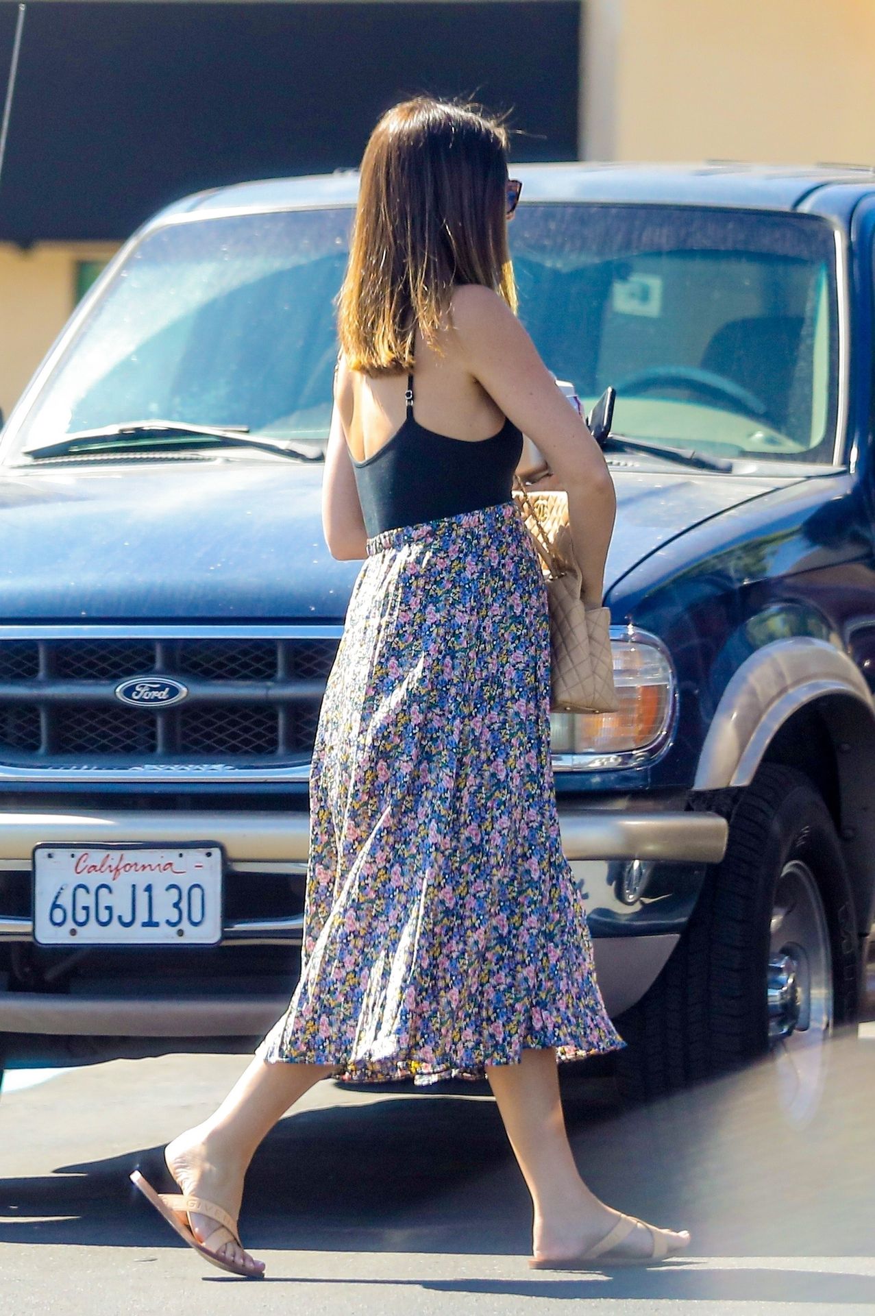 Pregnant Brittny Ward viste su barriguita con un vestido de verano mientras disfruta de una sesión de mimos en un salón de uñas en Brentwood, 14/10/2020.