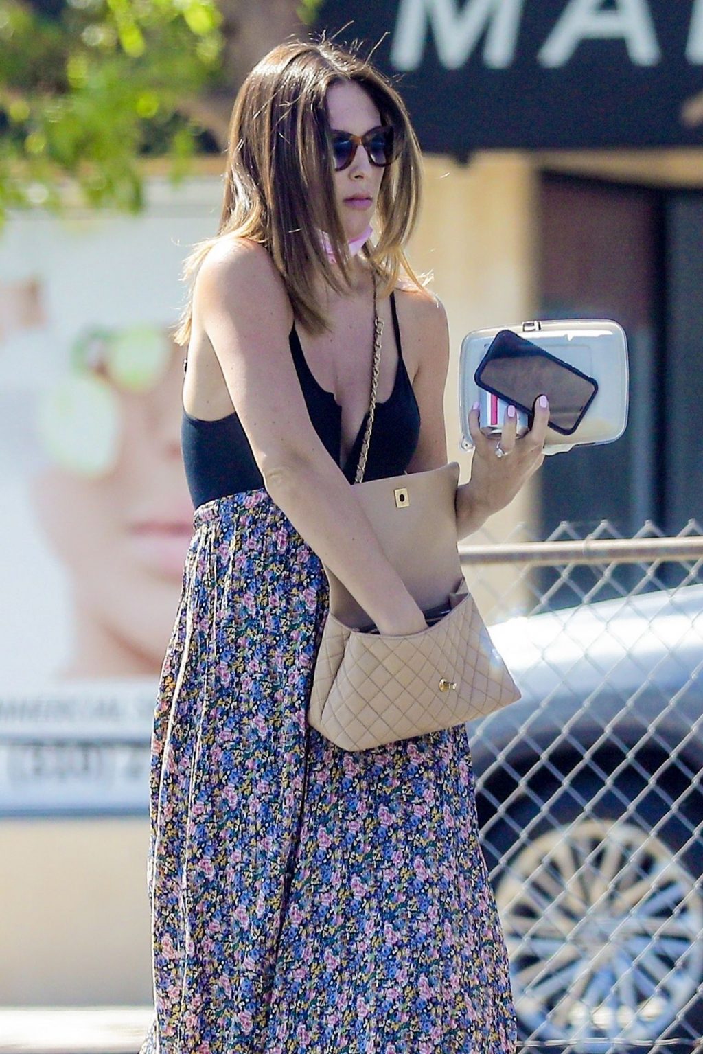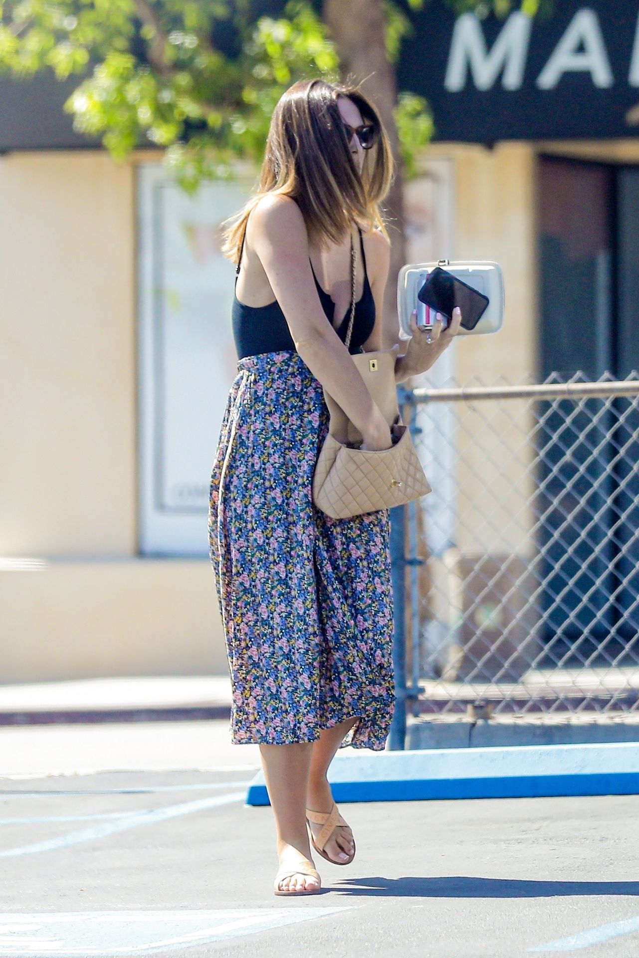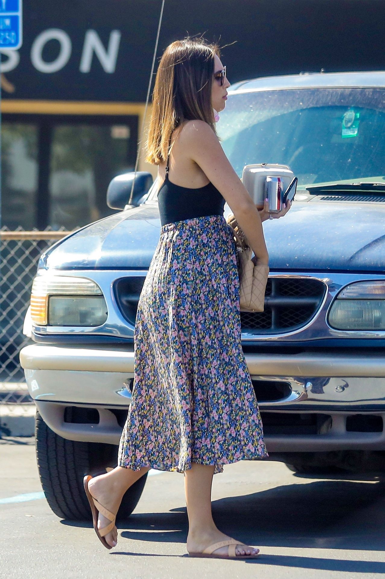 Pregnant Brittny Ward viste su barriguita con un vestido de verano mientras disfruta de una sesión de mimos en un salón de uñas en Brentwood, 14/10/2020.