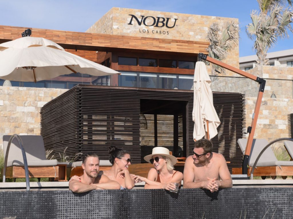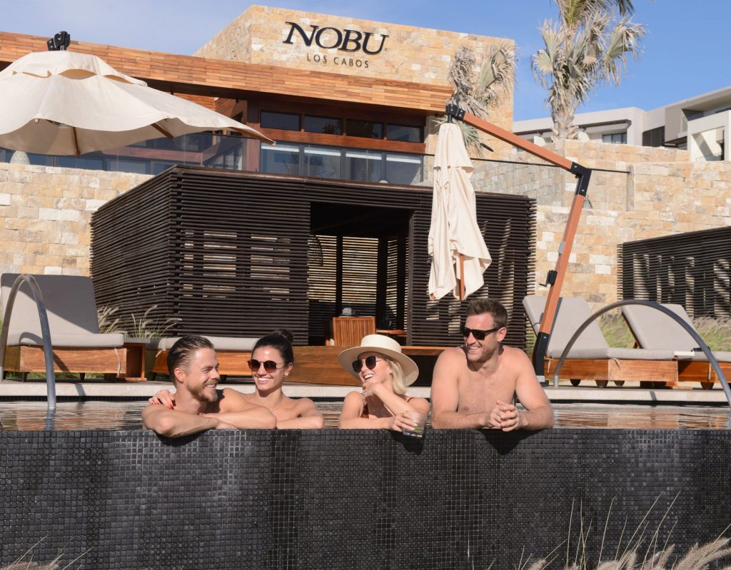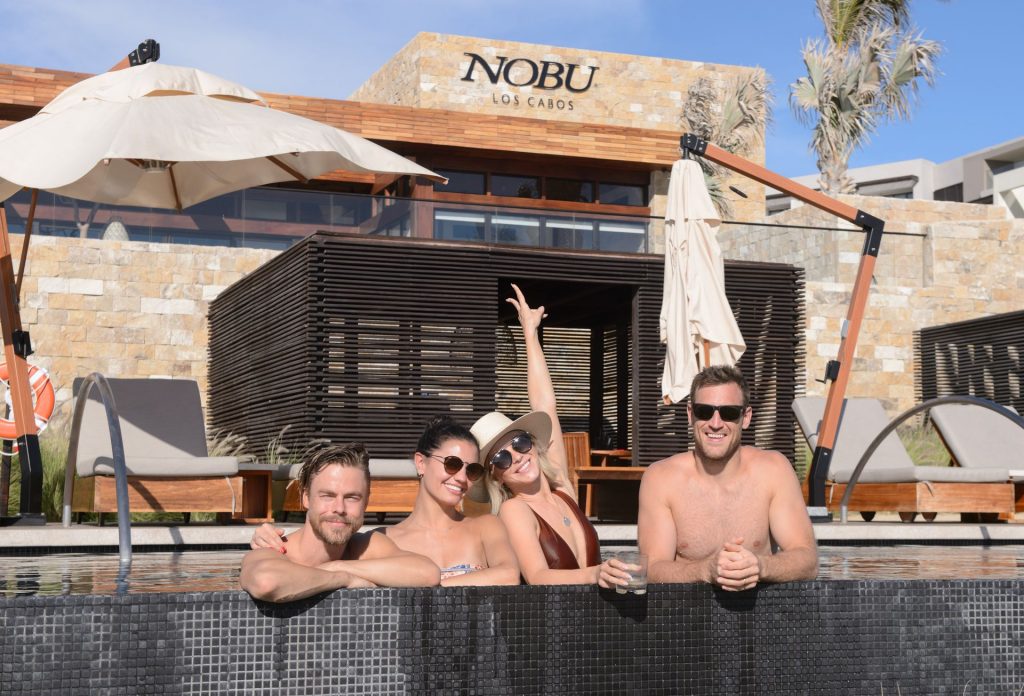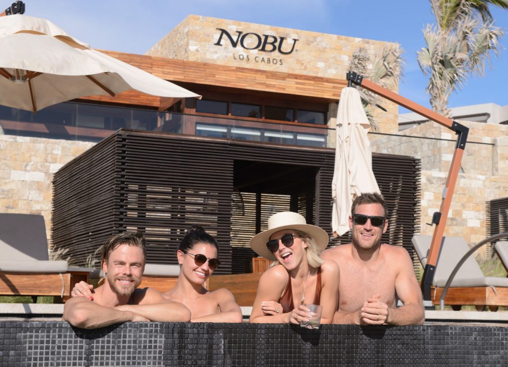 Los seis sexys fueron vistos sudando en el gimnasio del lugar para una rápida sesión de entrenamiento antes de dirigirse a sus cabañas privadas donde disfrutaron margaritas y aguachile de camarón junto a la piscina. Después de tomar el sol y nadar todo el día en una de las tres piscinas del resort, todos se retiraron al Spa Esencia para masajes en pareja y sesiones de hidroterapia. Al comenzar a ponerse el sol, el grupo optó por cócteles en el patio del restaurante Nobu para disfrutar de una impresionante puesta de sol en Cabo San Lucas en todo su esplendor.