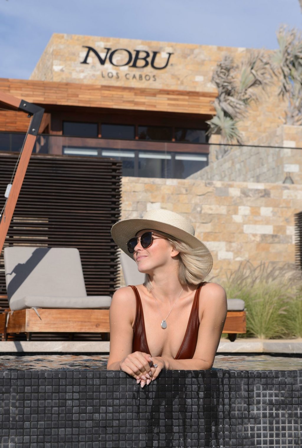 La ex presentadora de Dancing With The Stars de 48 años fue fotografiada luciendo su mejor bikini junto a la piscina en el nuevo Nobu Hotel Los Cabos.