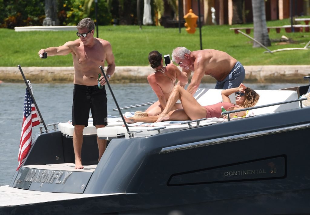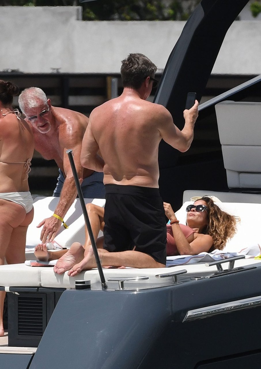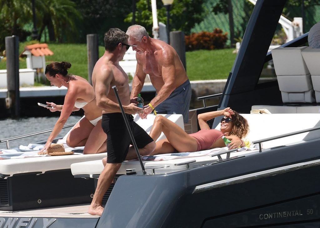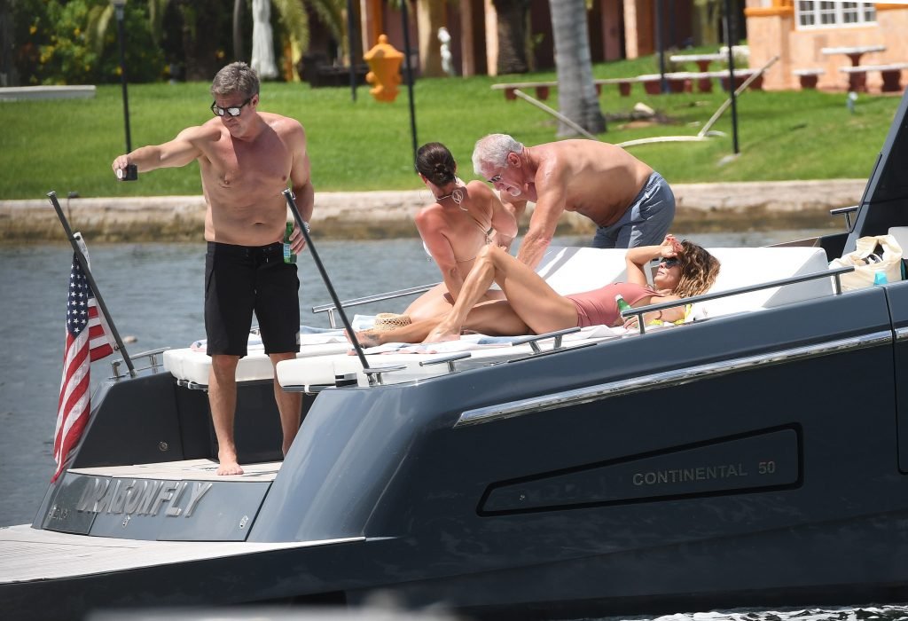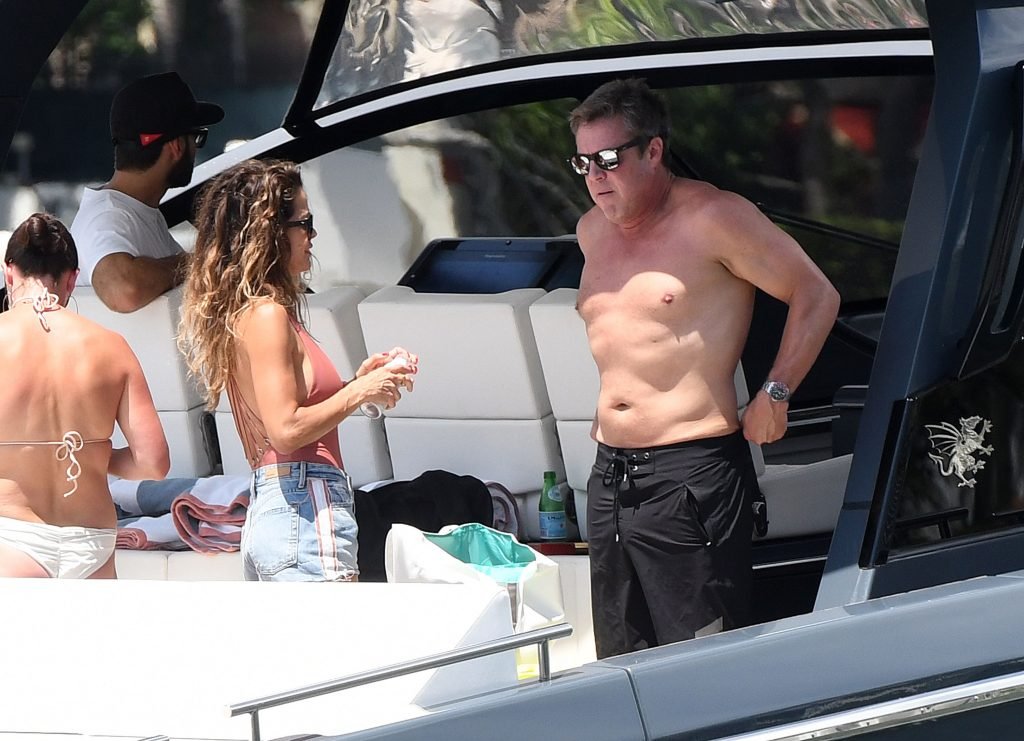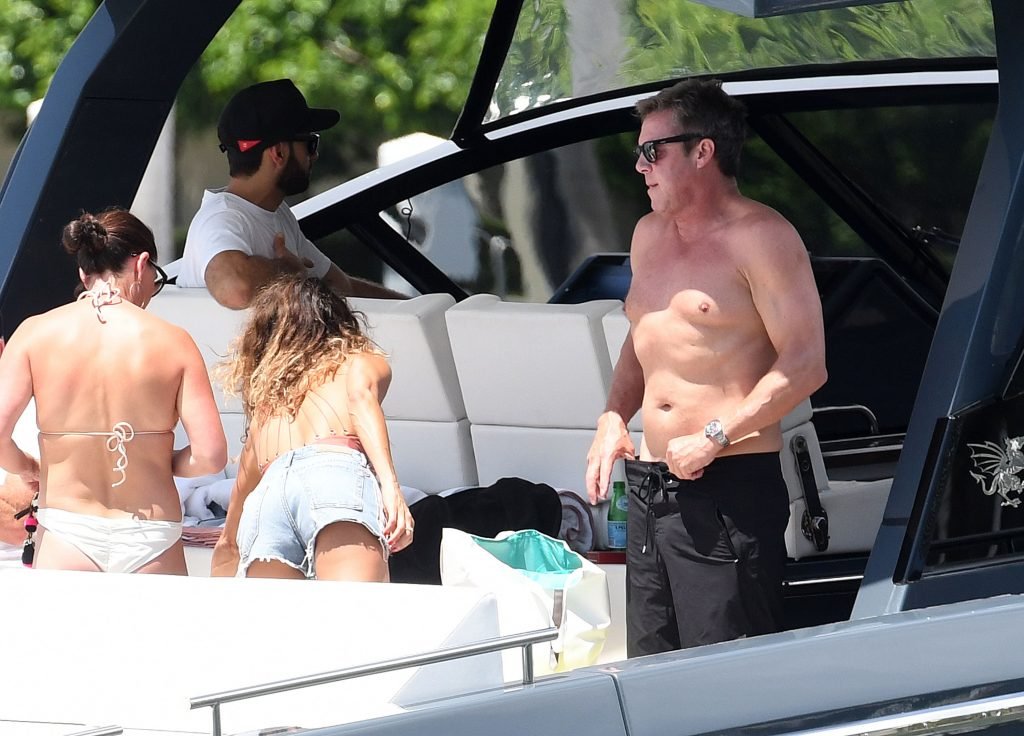 Brooke Burke disfruta de una tarde relajante en la piscina. Se ve genial mientras se prepara para saltar a la piscina bajo el calor de Miami, 10/09/2018 + Brooke Burke, recién divorciada, celebra su cumpleaños con un traje de baño rosa en un yate con un hombre misterioso en Miami.