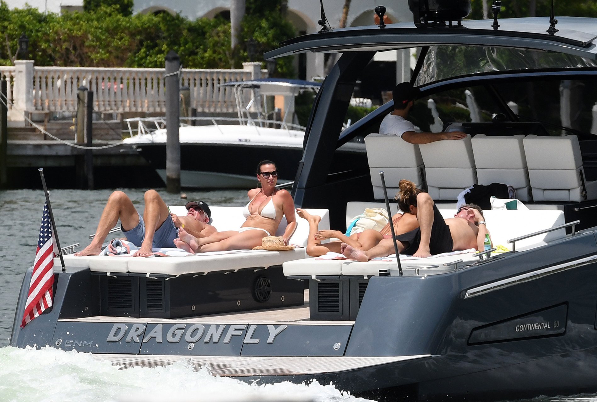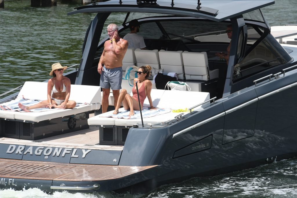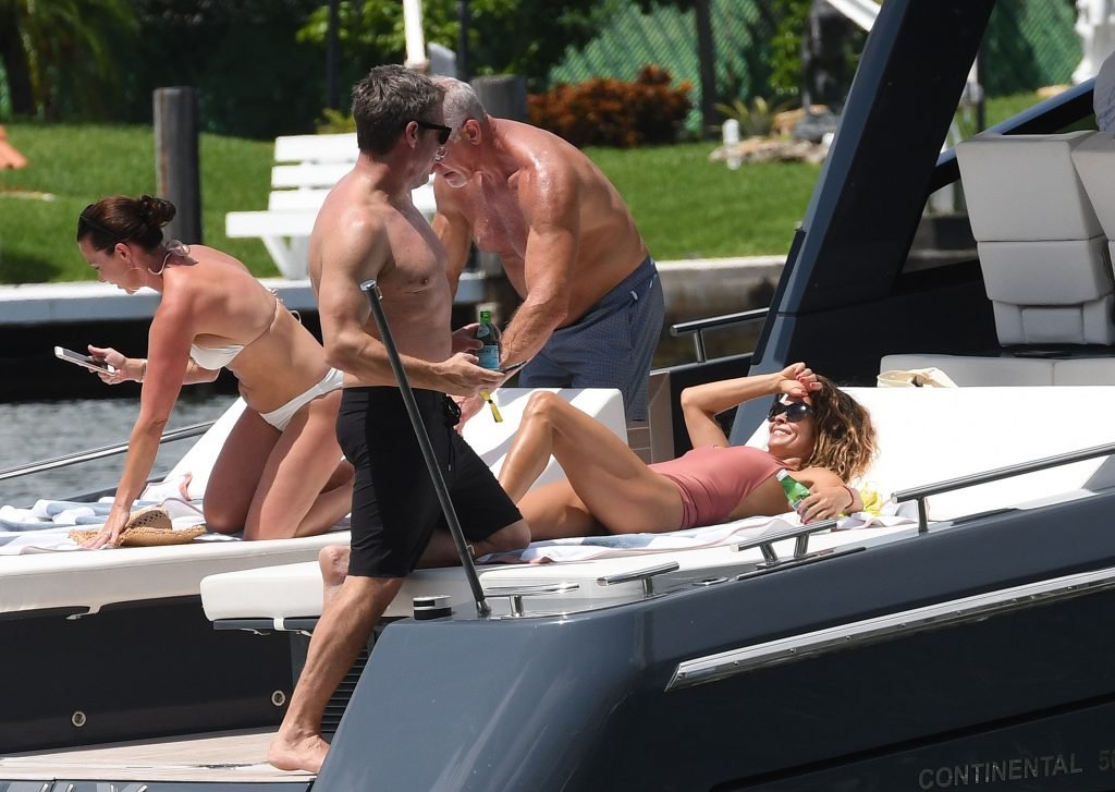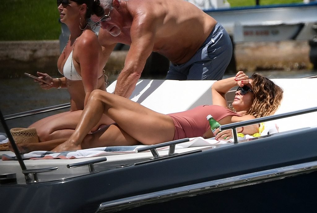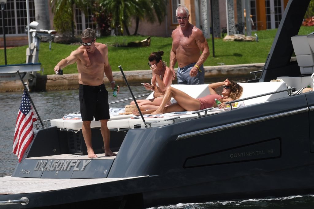 Brooke Burke disfruta de una tarde relajante en la piscina. Se ve genial mientras se prepara para saltar a la piscina bajo el calor de Miami, 10/09/2018 + Brooke Burke, recién divorciada, celebra su cumpleaños con un traje de baño rosa en un yate con un hombre misterioso en Miami.