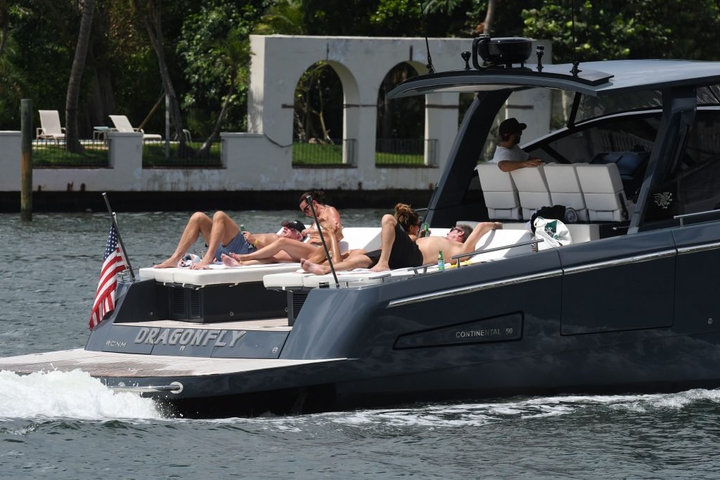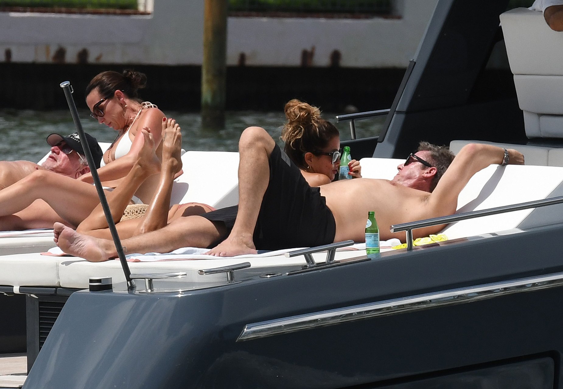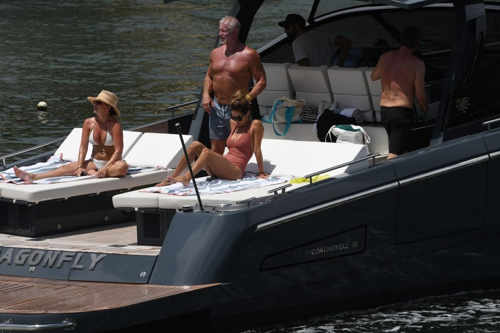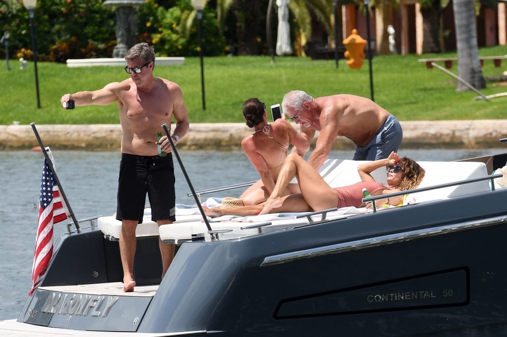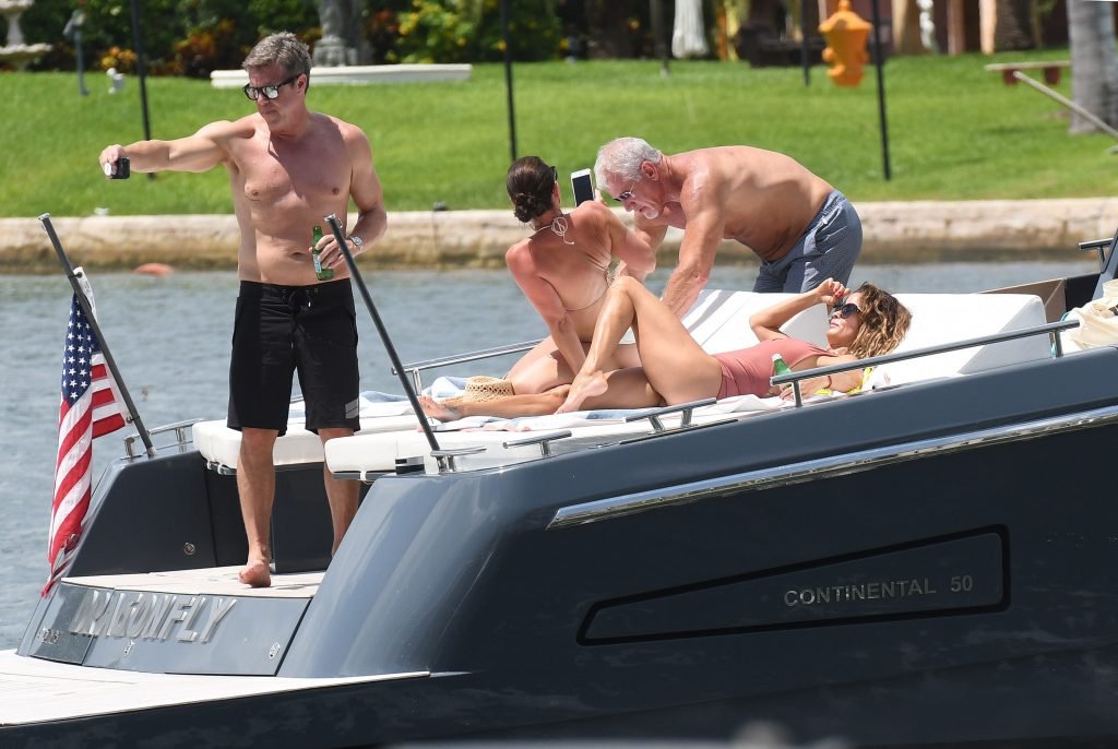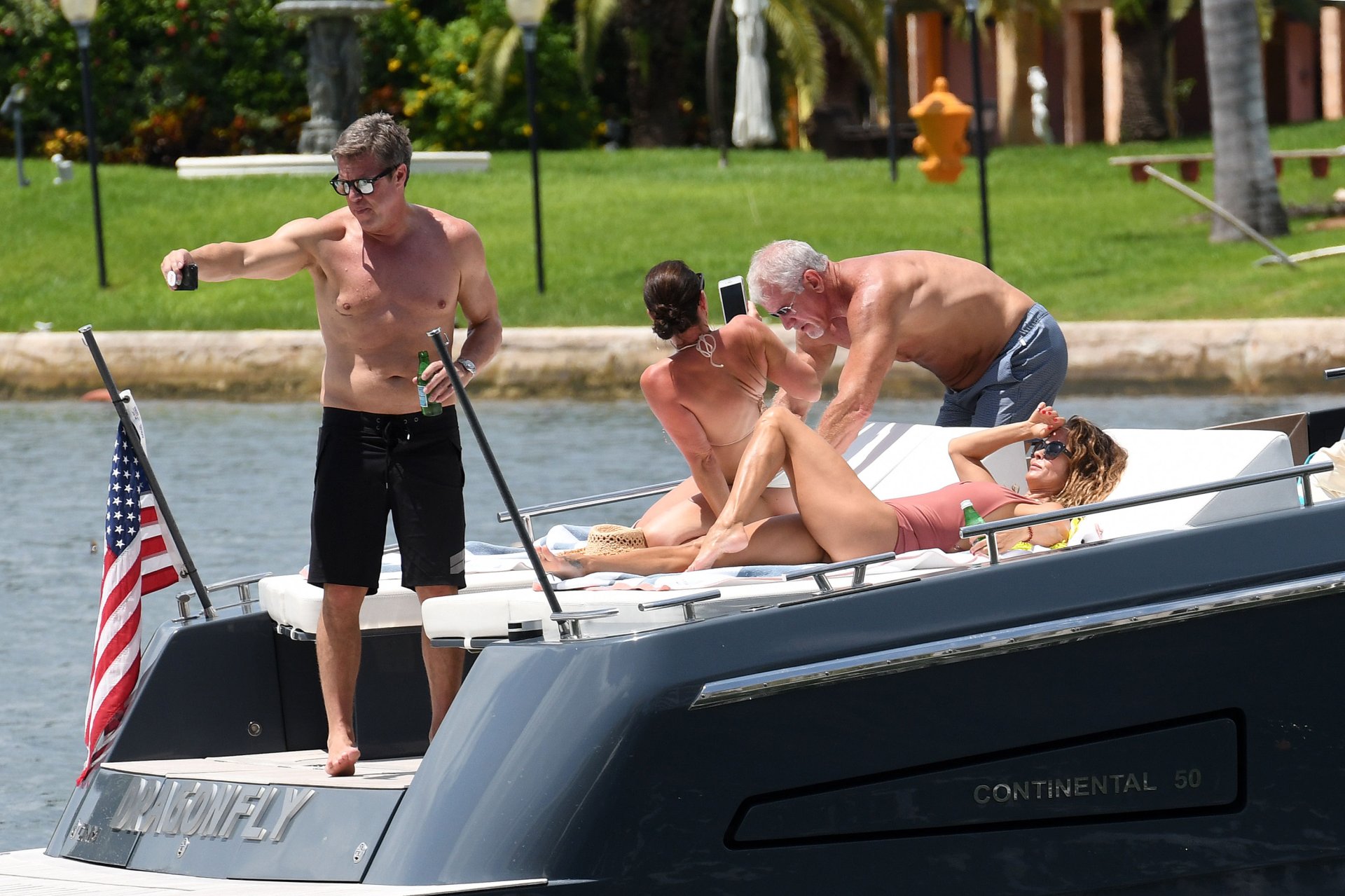 Brooke Burke disfruta de una tarde relajante en la piscina. Se ve genial mientras se prepara para saltar a la piscina bajo el calor de Miami, 10/09/2018 + Brooke Burke, recién divorciada, celebra su cumpleaños con un traje de baño rosa en un yate con un hombre misterioso en Miami.