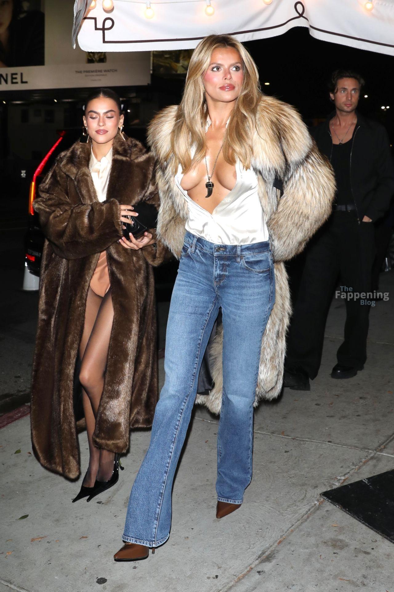 La modelo estadounidense estaba en Hollywood, luciendo un abrigo de piel sintética, esa arriesgada blusa de satén y jeans de cintura alta. Se veía impresionante toda la noche, pero un movimiento rápido casi lo convierte en un fallo total de vestuario.
