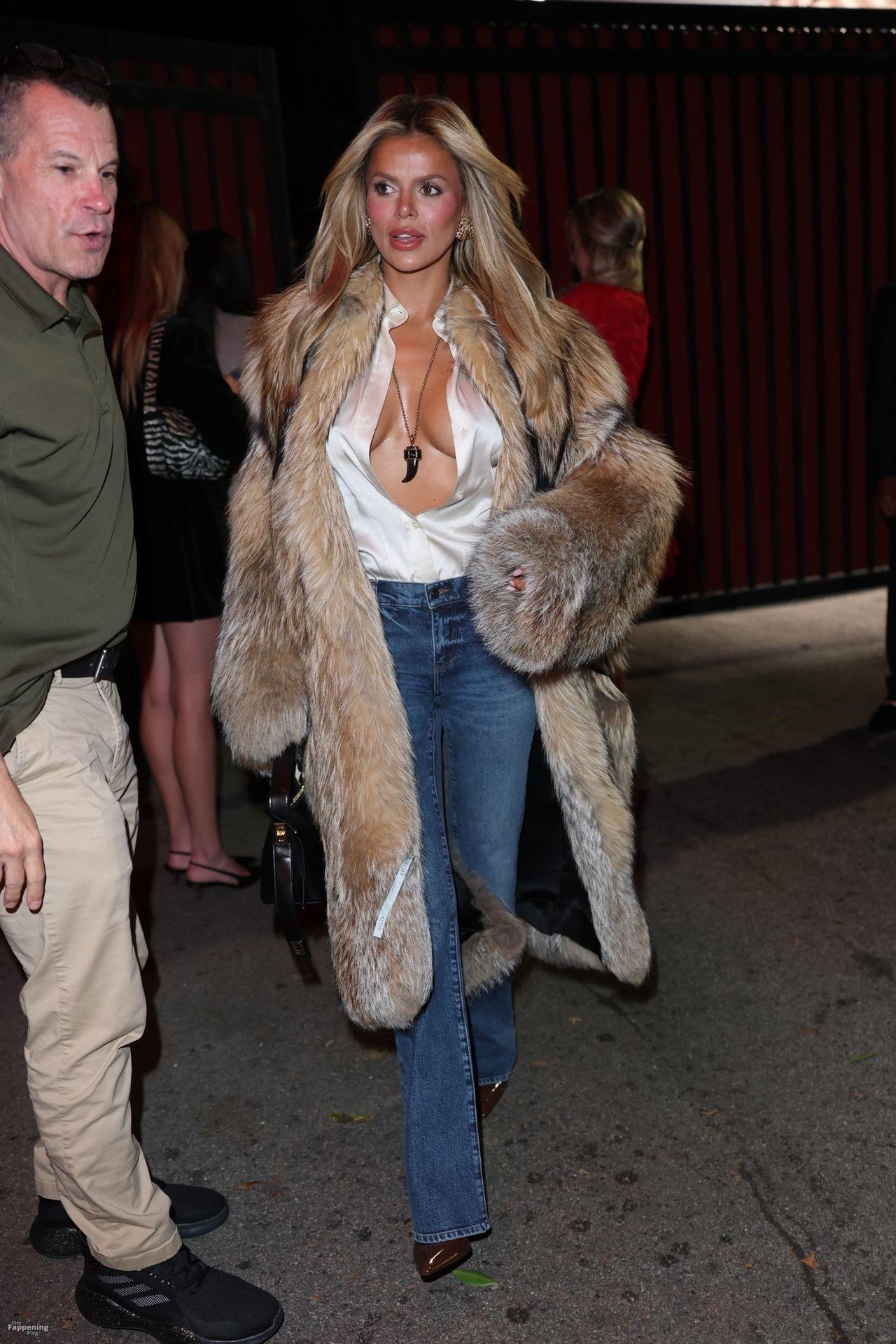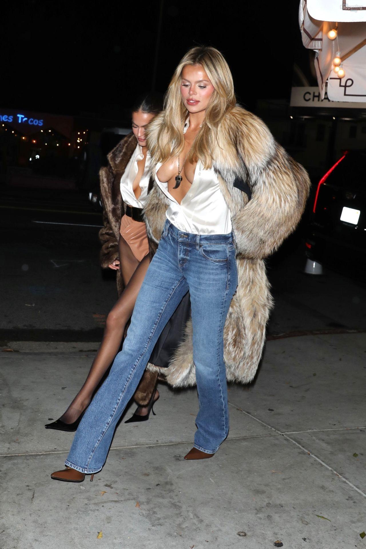 Brooks Nader casi tuvo un desliz total de pezón en la fiesta de Maybelline LA, su blusa de satén apenas aguantaba y mostraba un escote impresionante.