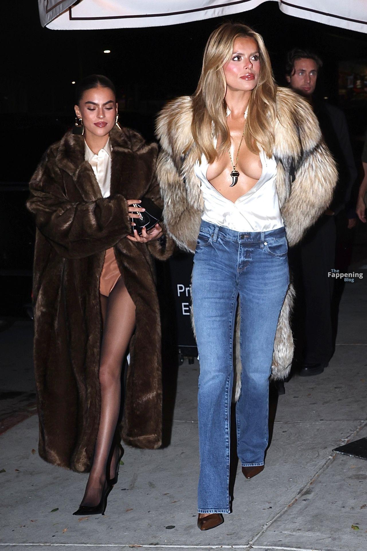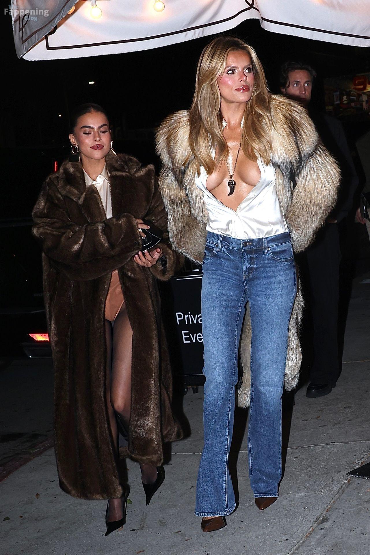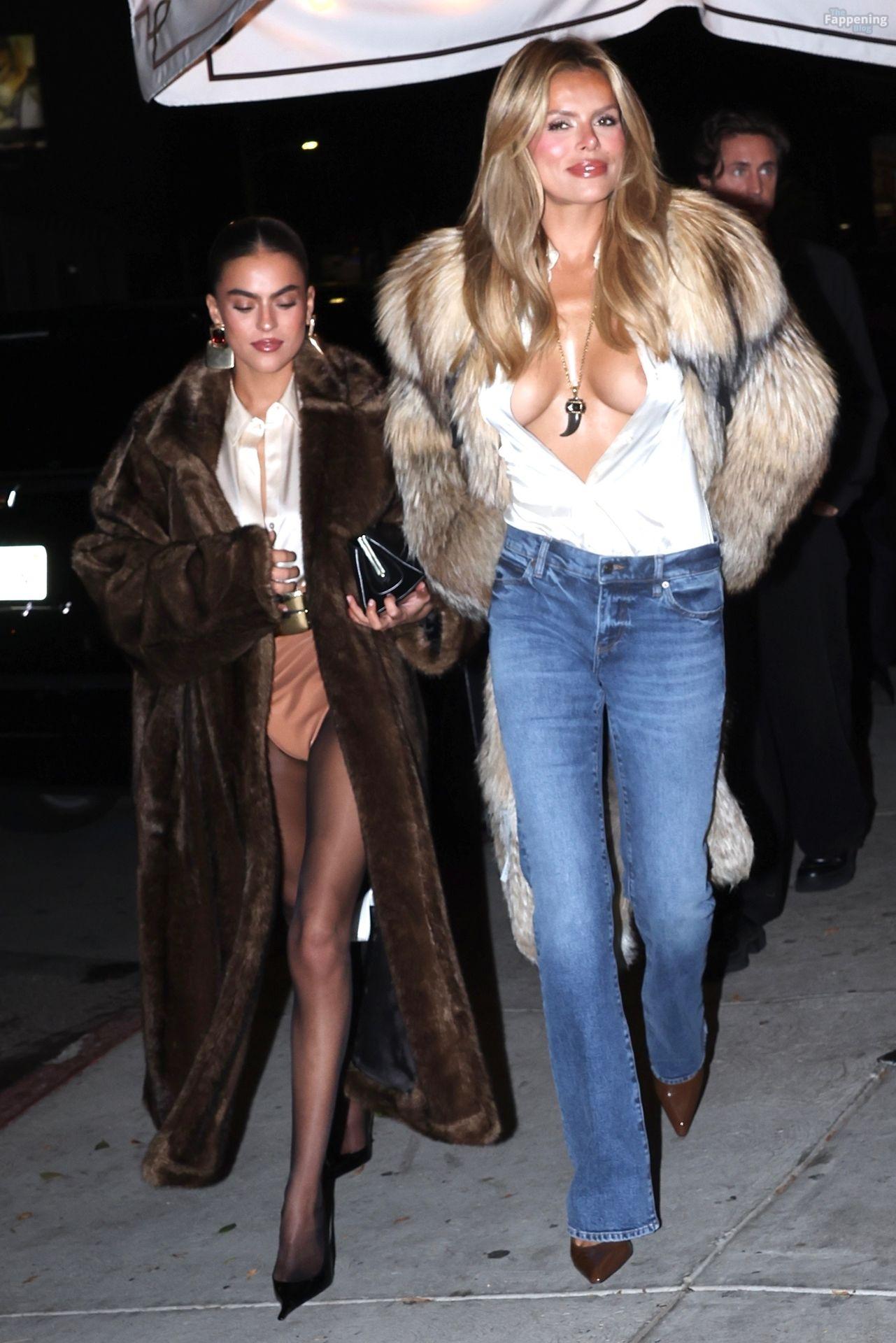 La modelo estadounidense estaba en Hollywood, luciendo un abrigo de piel sintética, esa arriesgada blusa de satén y jeans de cintura alta. Se veía impresionante toda la noche, pero un movimiento rápido casi lo convierte en un fallo total de vestuario.