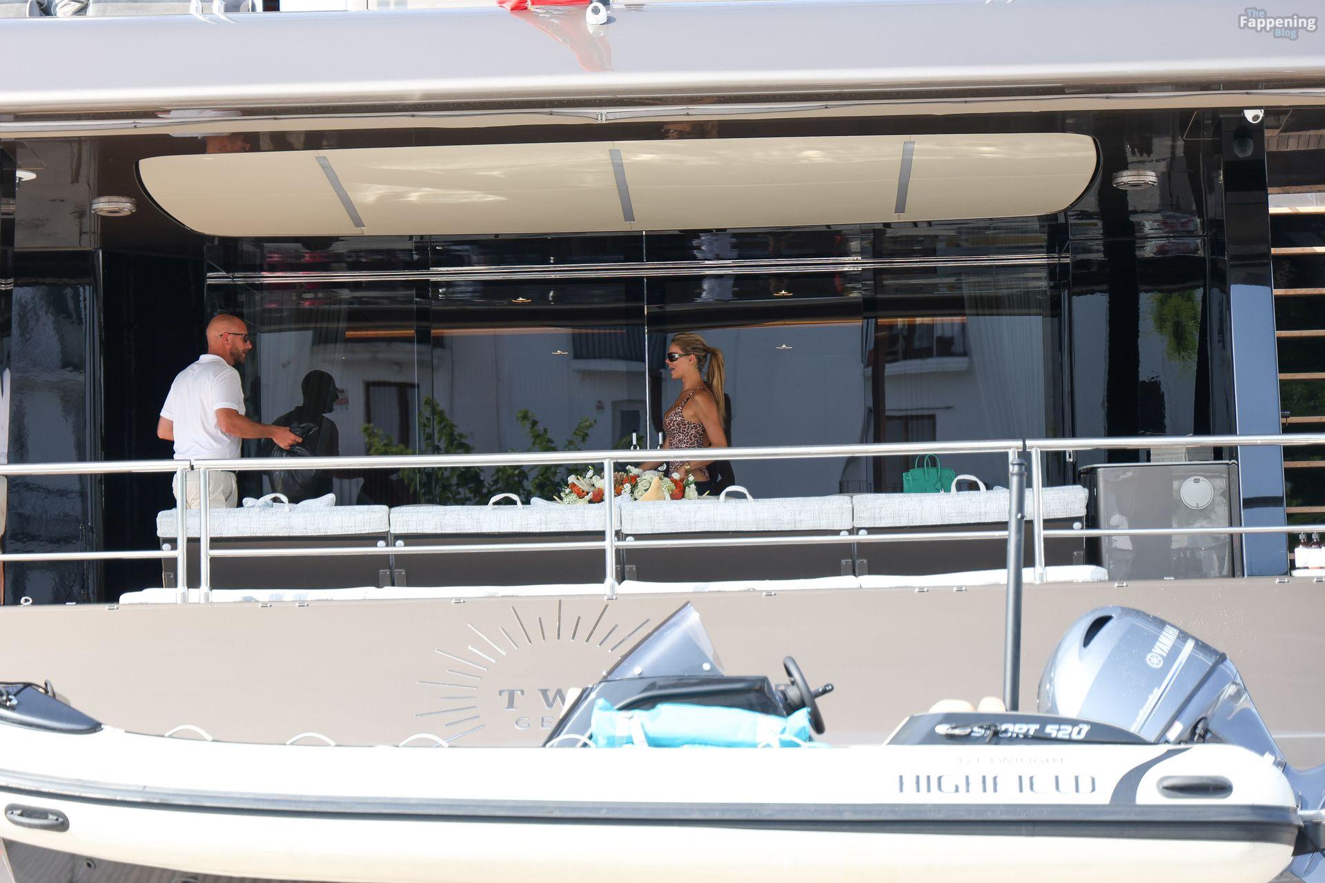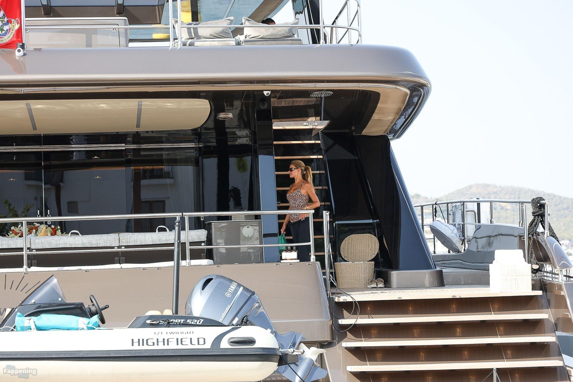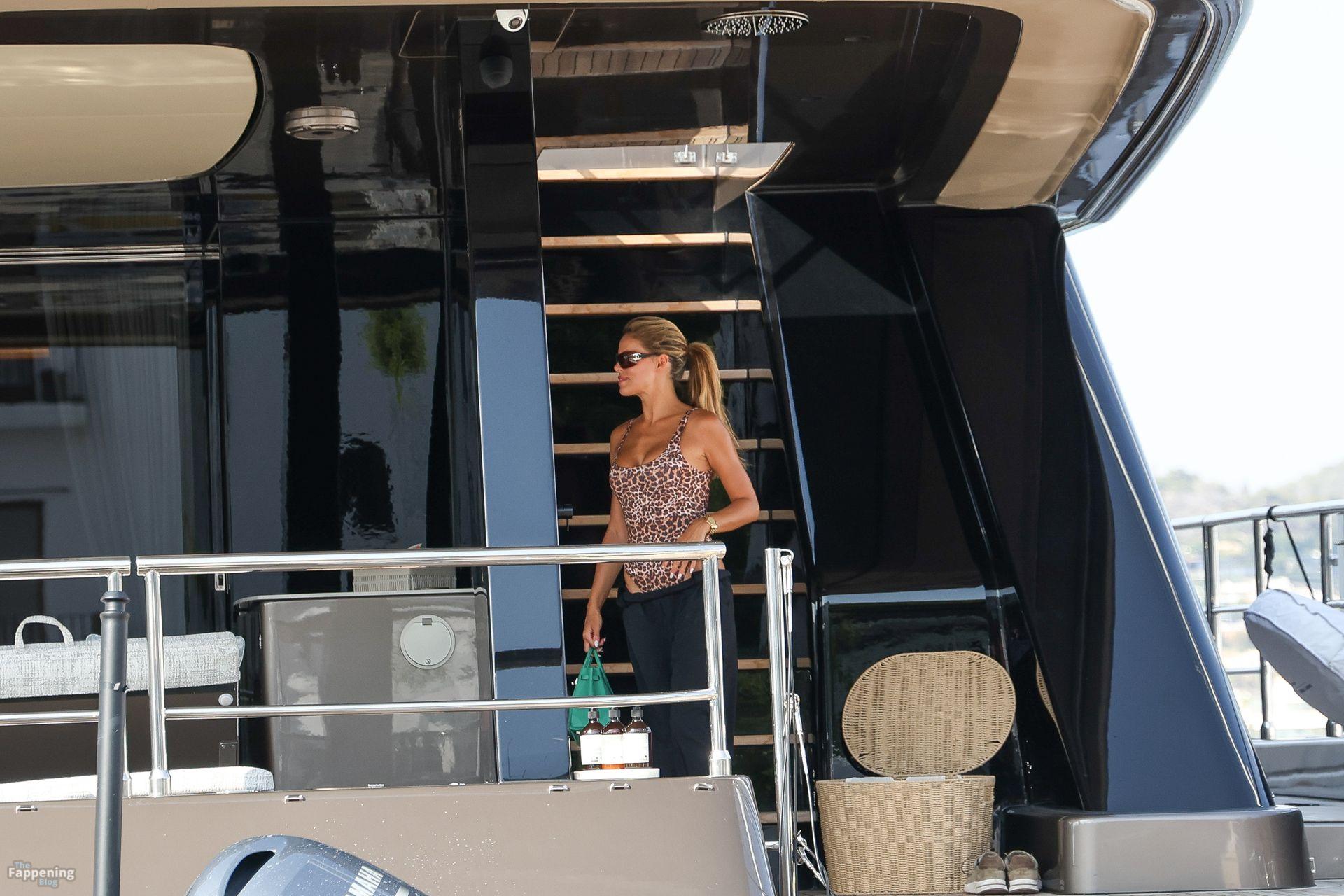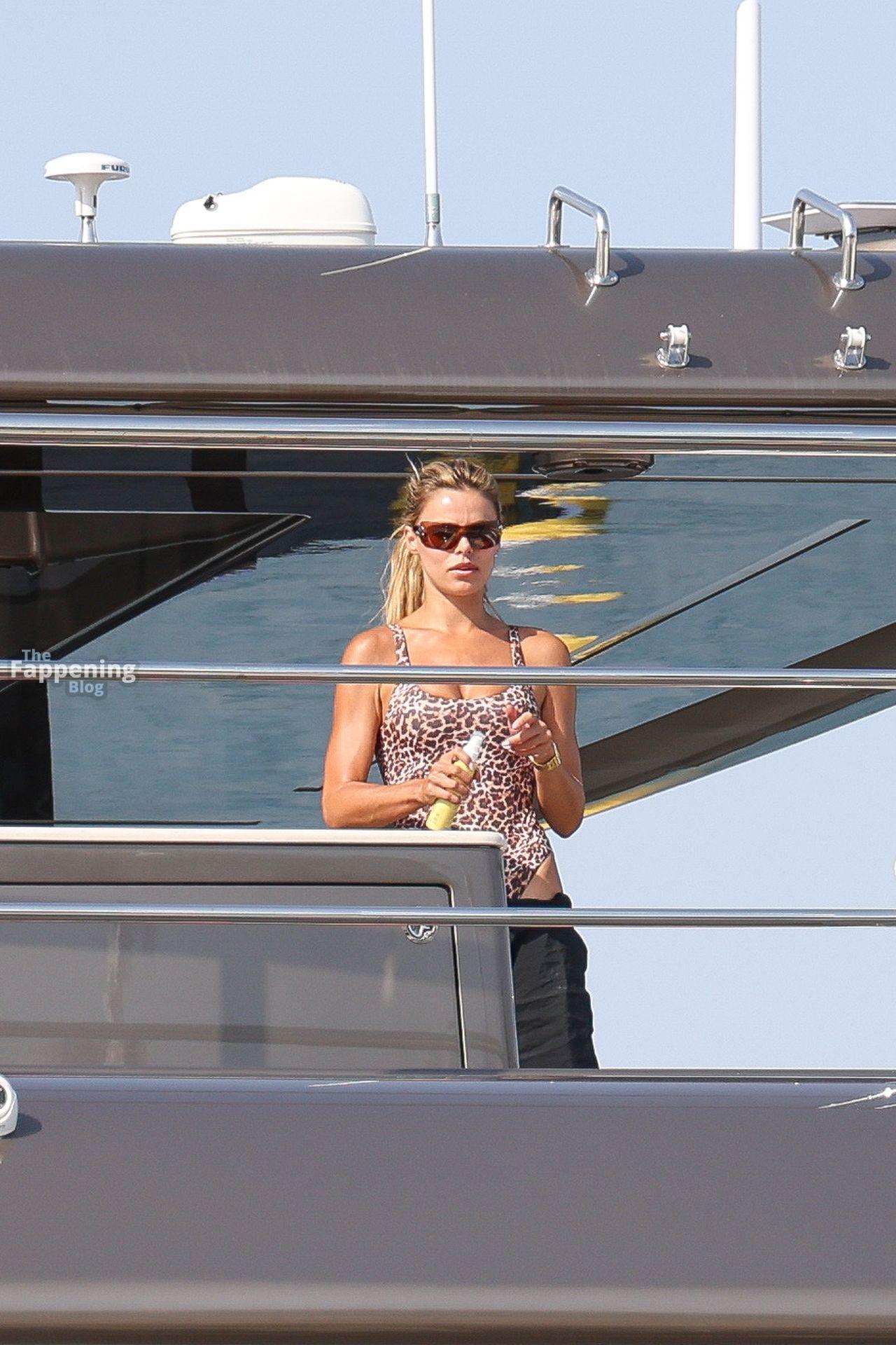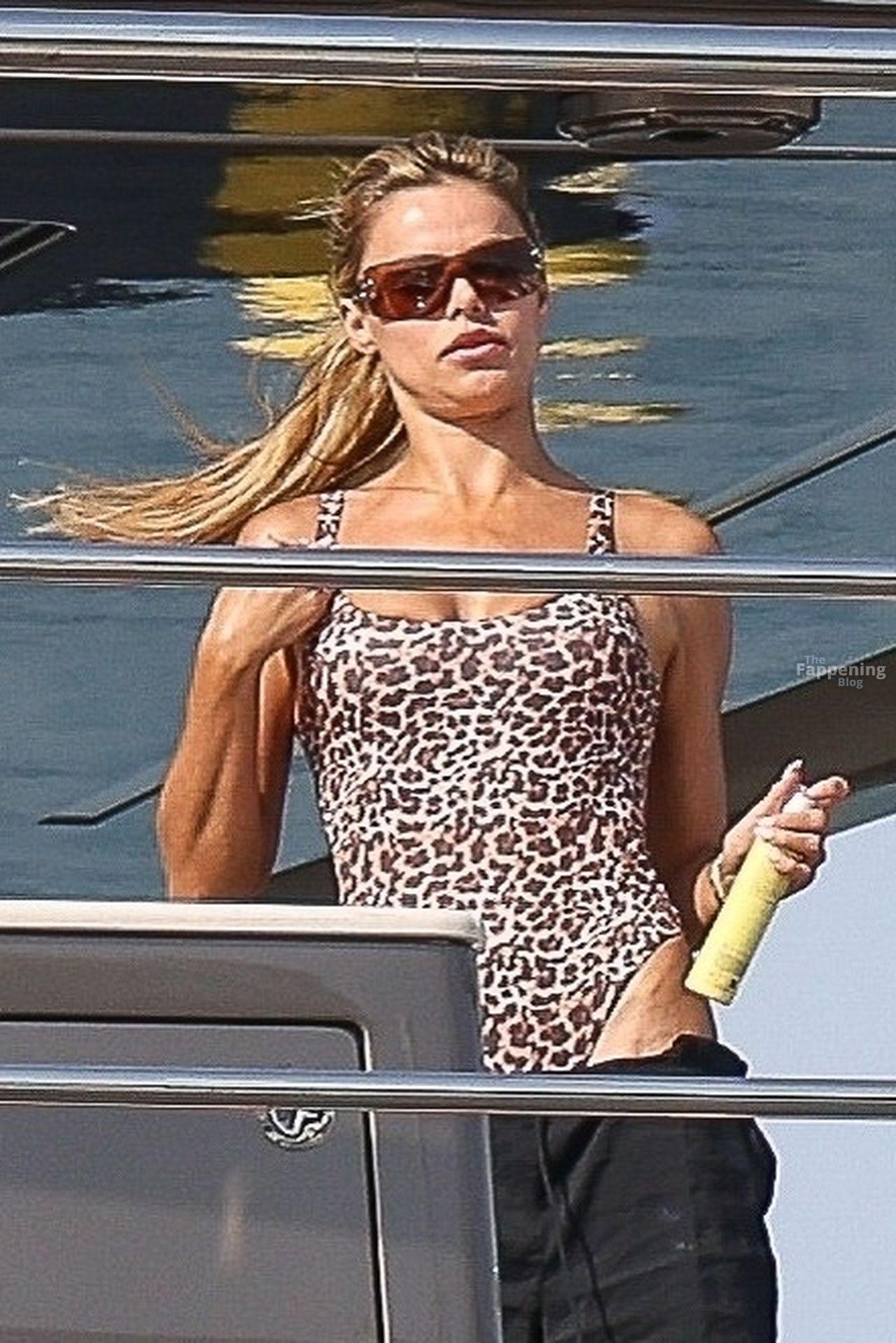 Brooks Nader y su hermana Sarah Jane Nader están relajándose en su superyate Twilight Georgetown de €10.9M en Ibiza, tomando el sol. Brooks lleva un traje de baño enterizo de leopardo con pantalones deportivos, mostrando su trasero y curvas mientras lleva un bolso Hermès Birkin. También están paseando por la ciudad, comiendo helado.