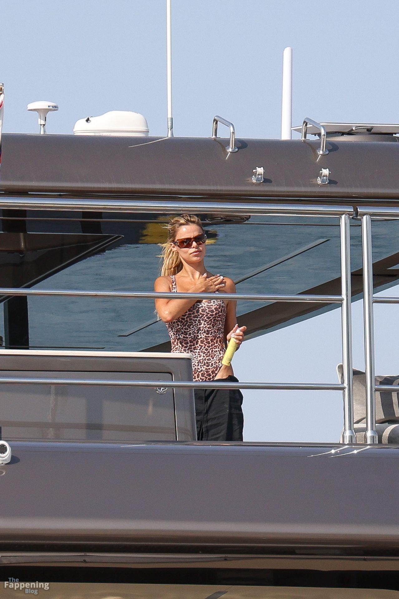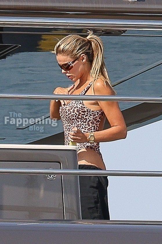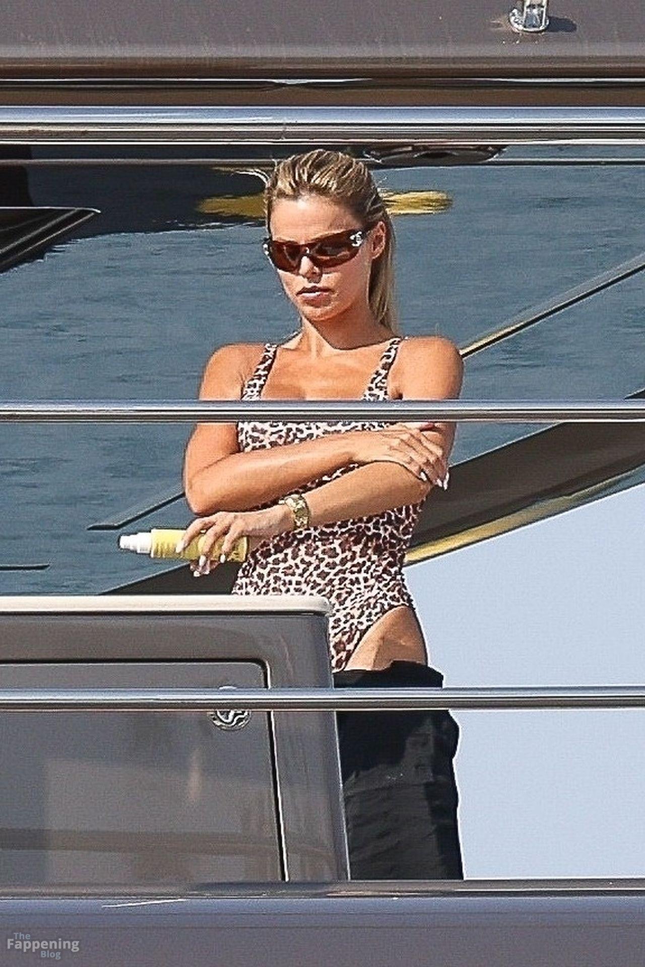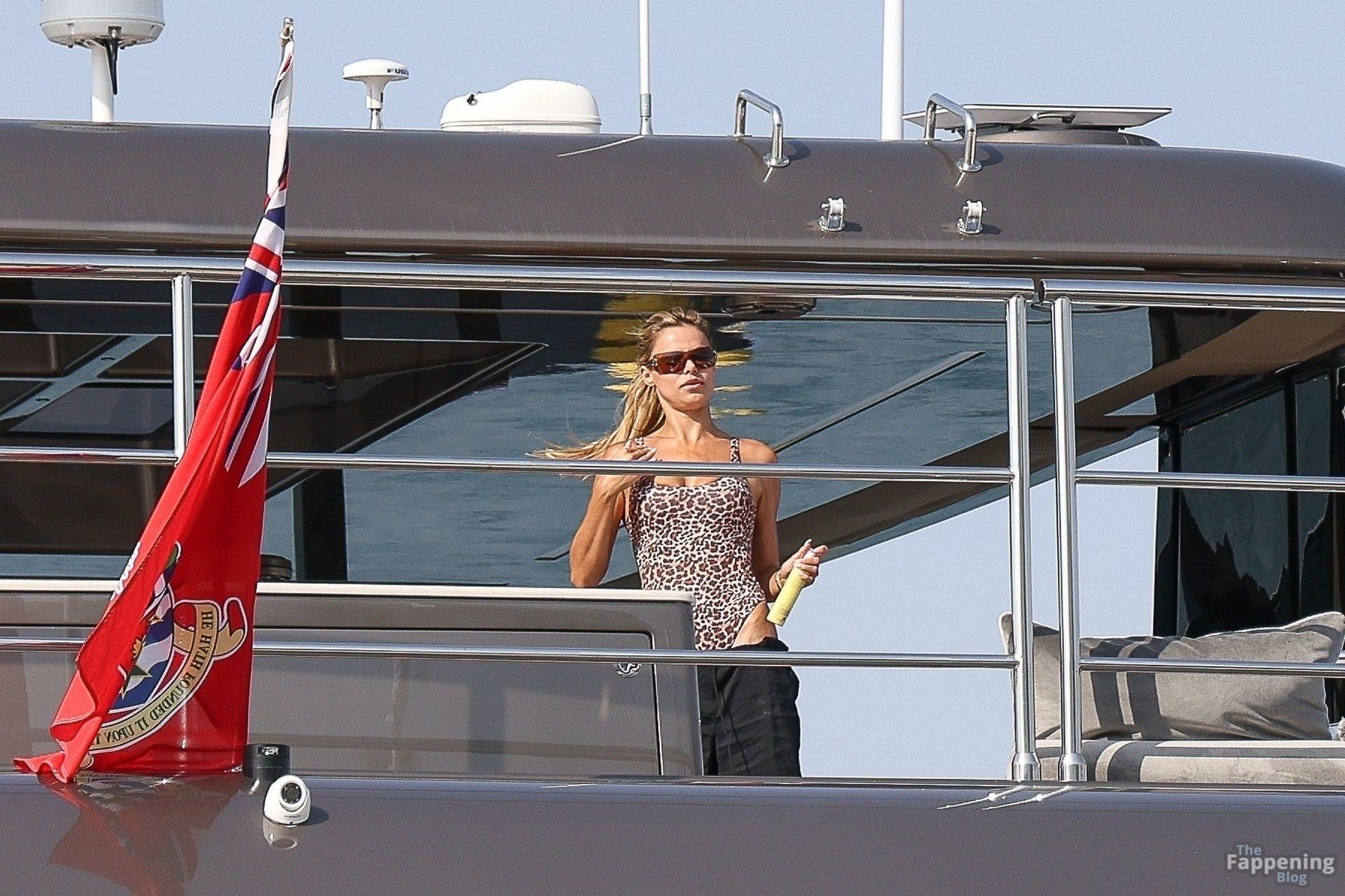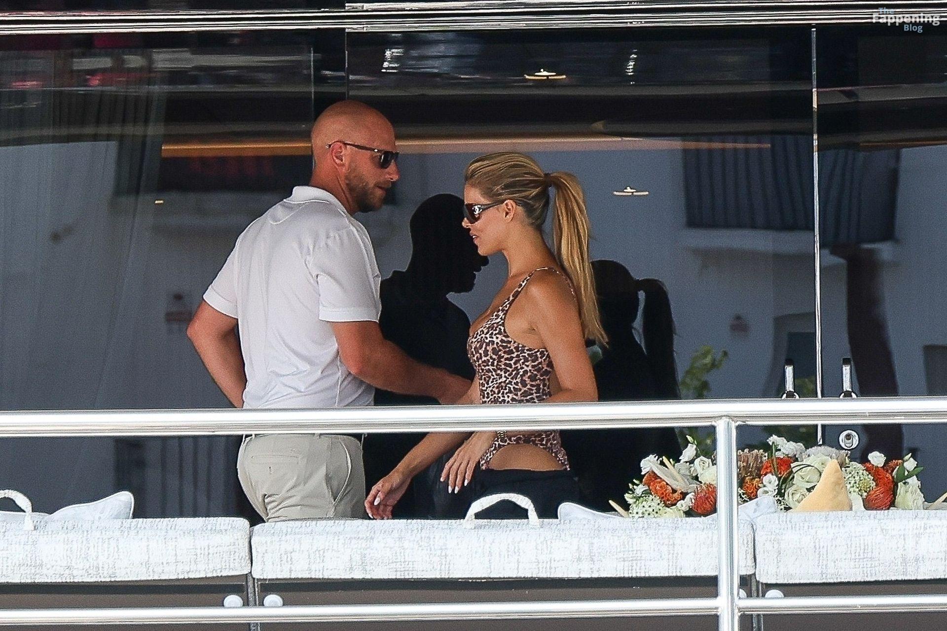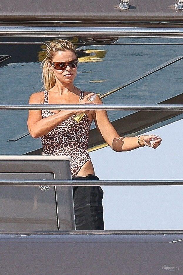 Brooks Nader y su hermana Sarah Jane Nader están relajándose en su superyate Twilight Georgetown de €10.9M en Ibiza, tomando el sol. Brooks lleva un traje de baño enterizo de leopardo con pantalones deportivos, mostrando su trasero y curvas mientras lleva un bolso Hermès Birkin. También están paseando por la ciudad, comiendo helado.