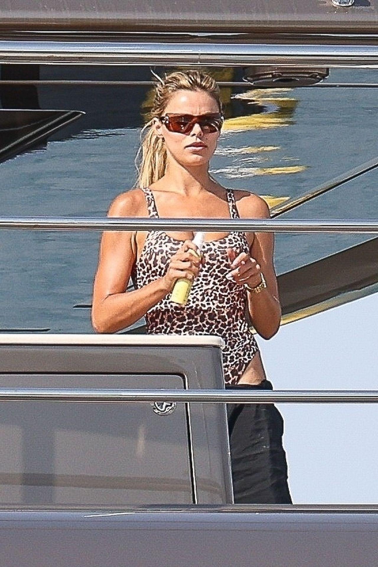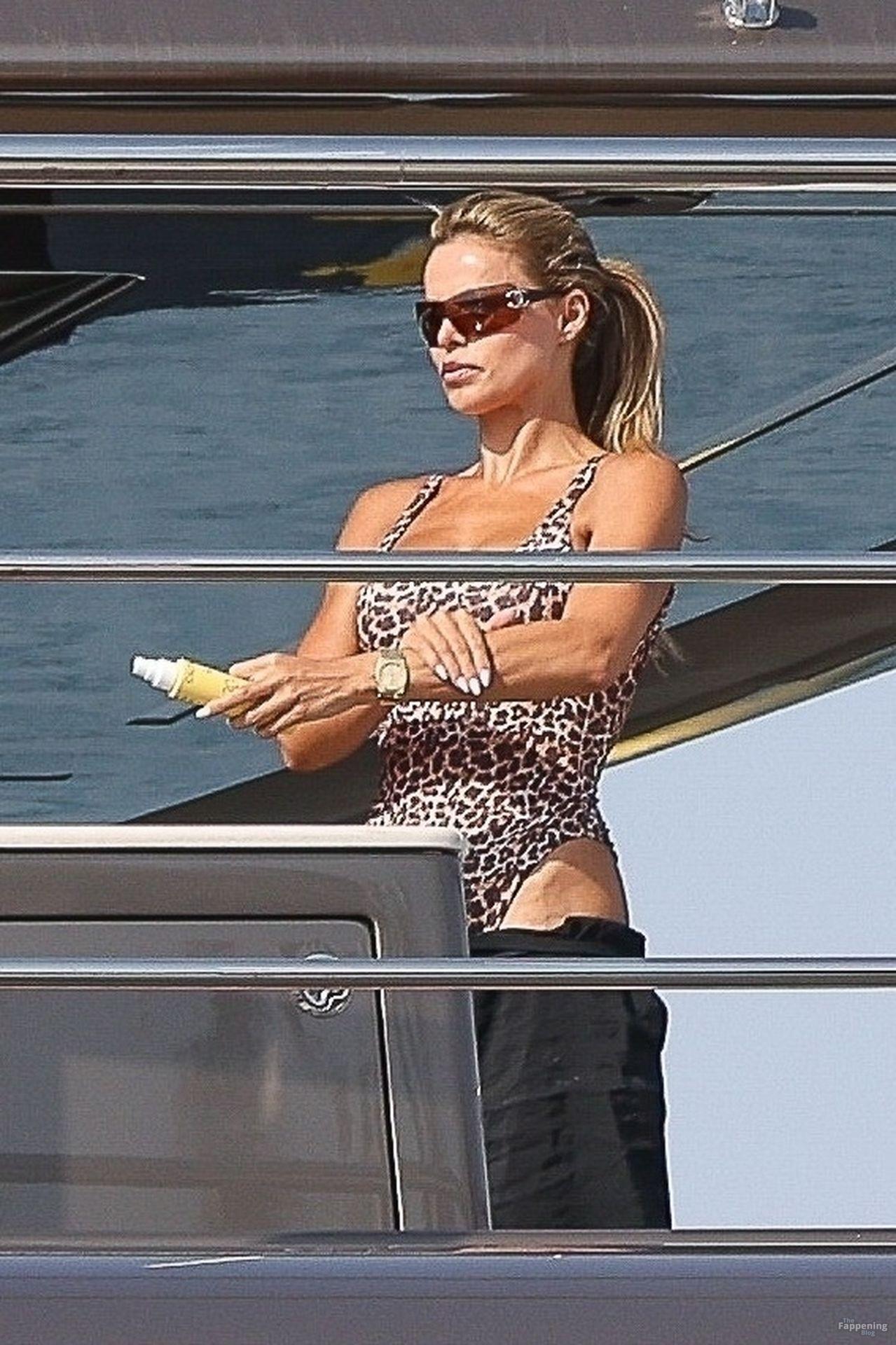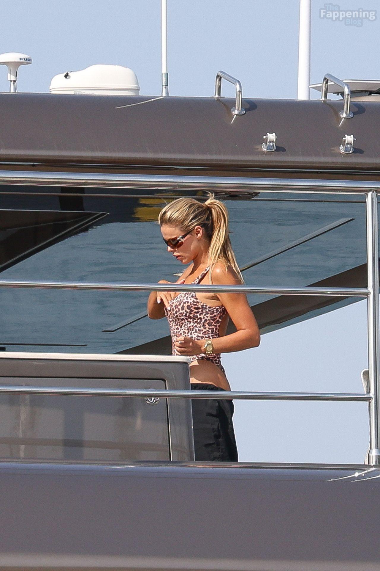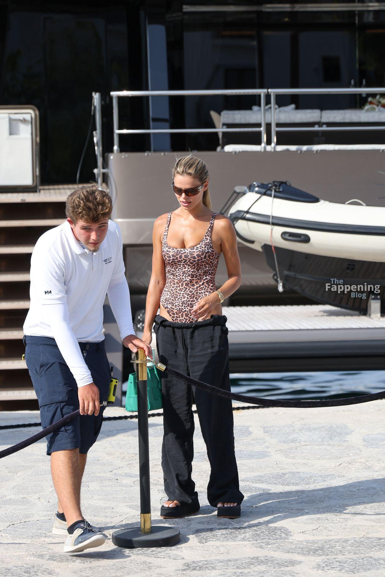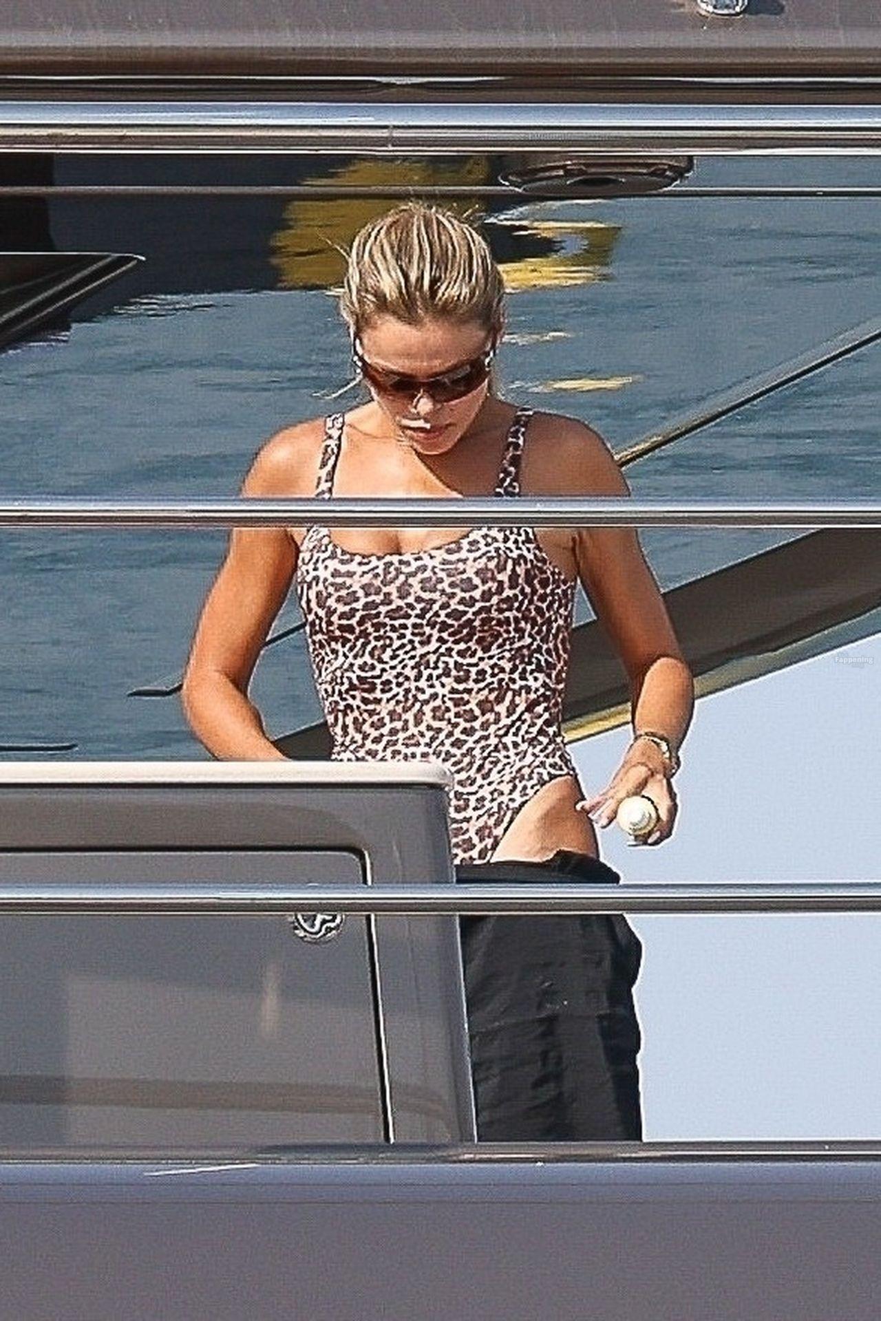 Brooks Nader y su hermana Sarah Jane Nader están relajándose en su superyate Twilight Georgetown de €10.9M en Ibiza, tomando el sol. Brooks lleva un traje de baño enterizo de leopardo con pantalones deportivos, mostrando su trasero y curvas mientras lleva un bolso Hermès Birkin. También están paseando por la ciudad, comiendo helado.
