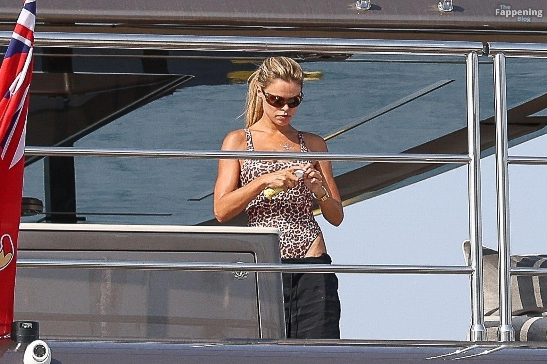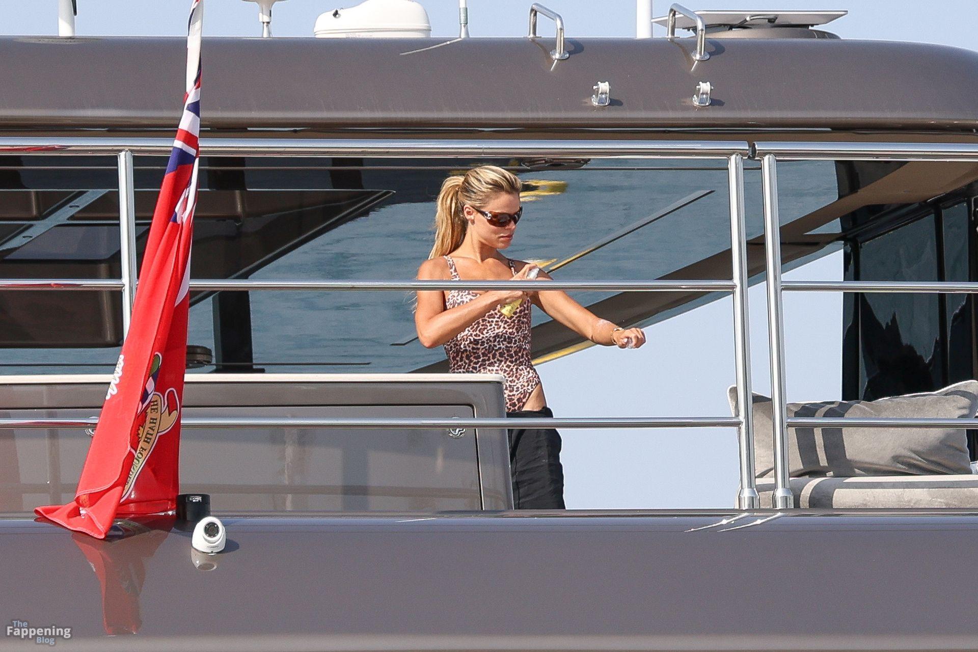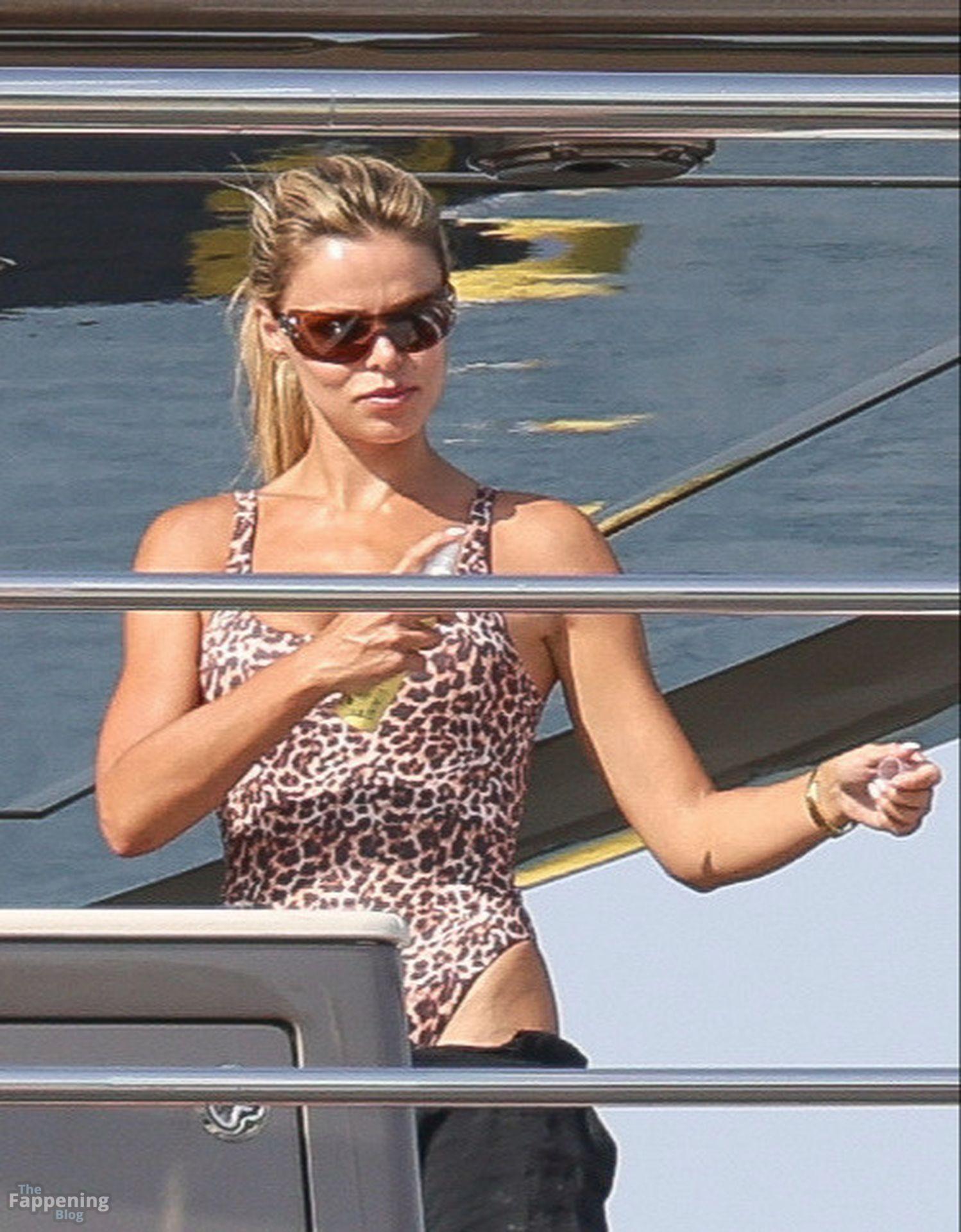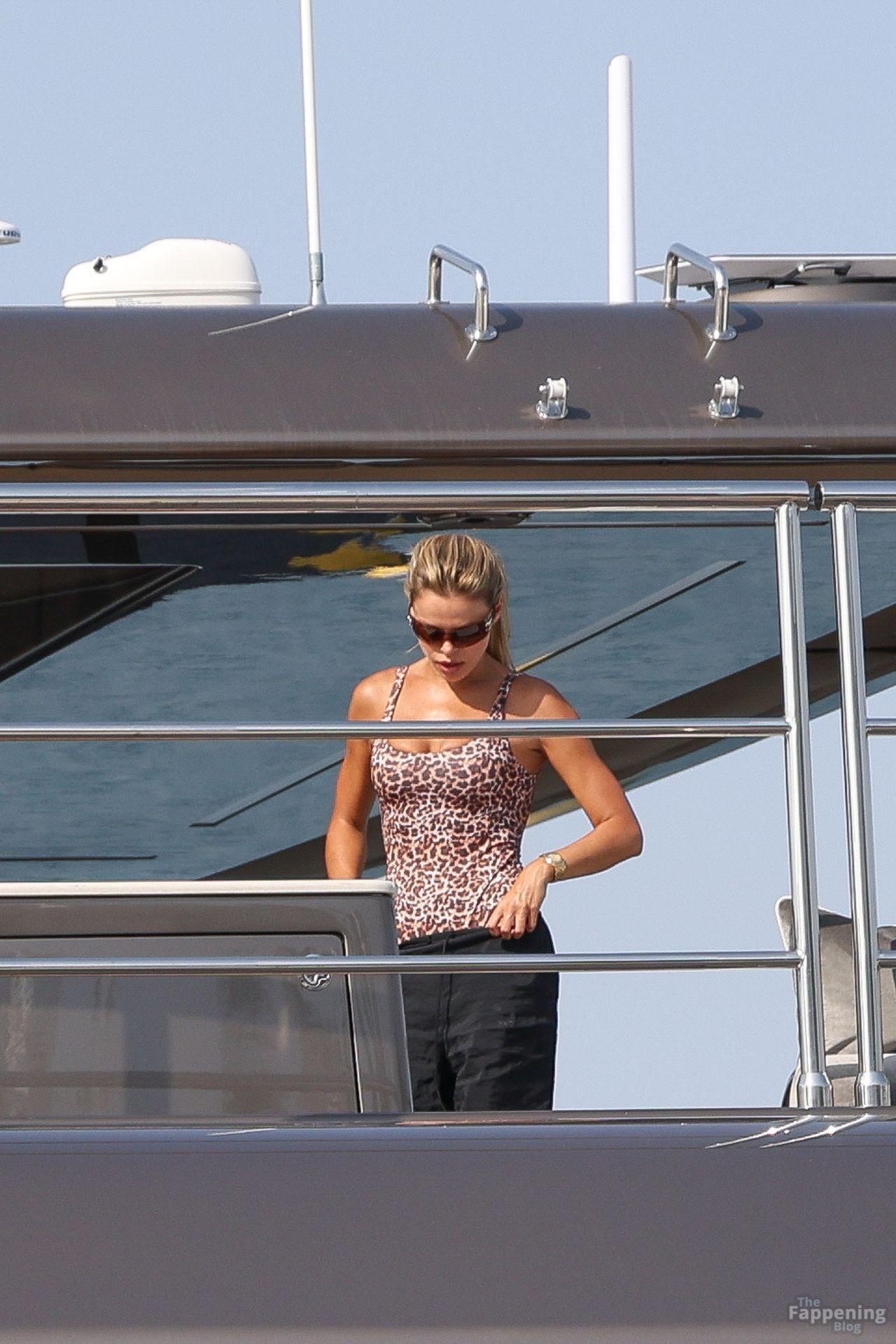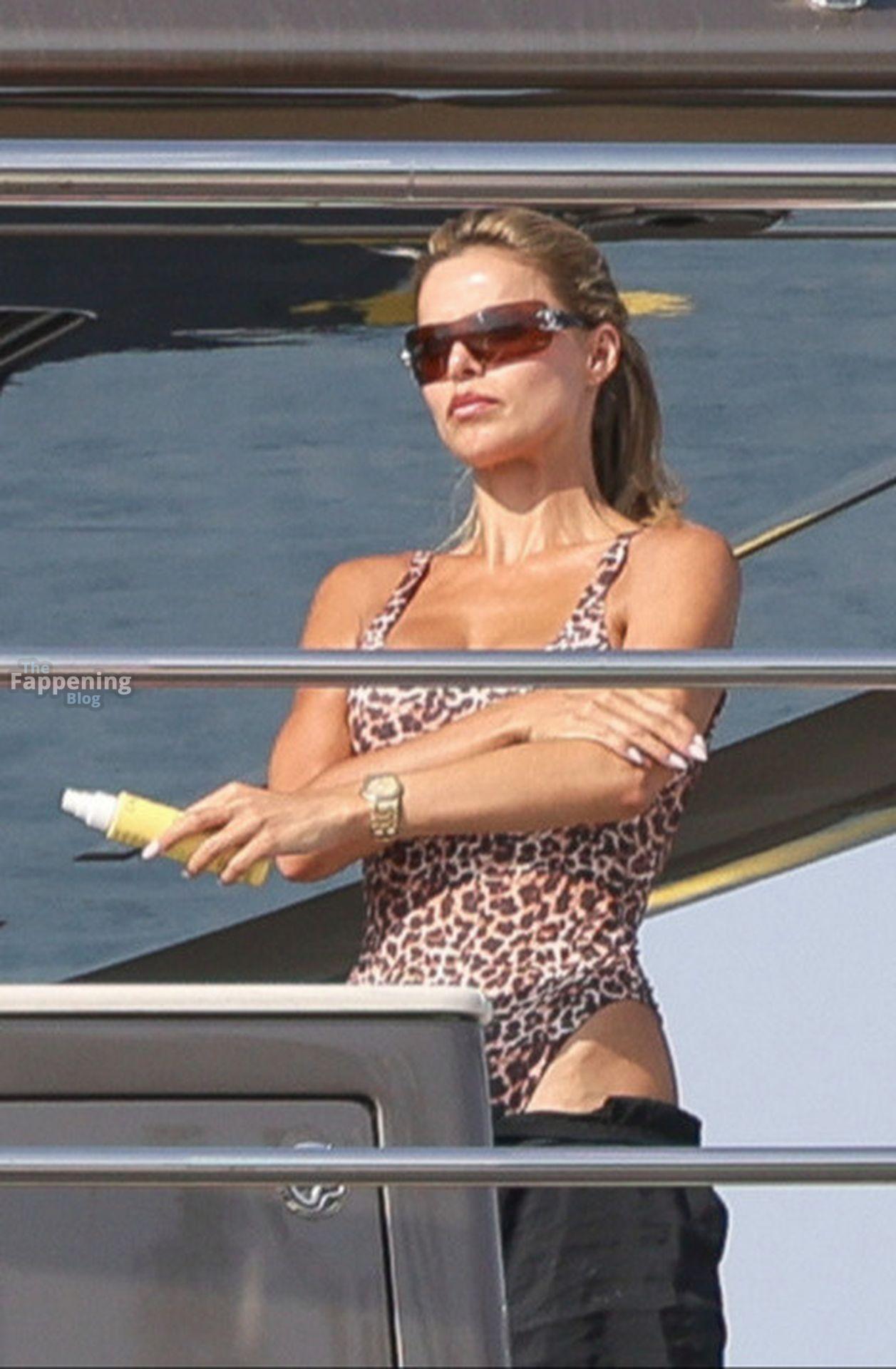 Brooks Nader y su hermana Sarah Jane Nader están relajándose en su superyate Twilight Georgetown de €10.9M en Ibiza, tomando el sol. Brooks lleva un traje de baño enterizo de leopardo con pantalones deportivos, mostrando su trasero y curvas mientras lleva un bolso Hermès Birkin. También están paseando por la ciudad, comiendo helado.