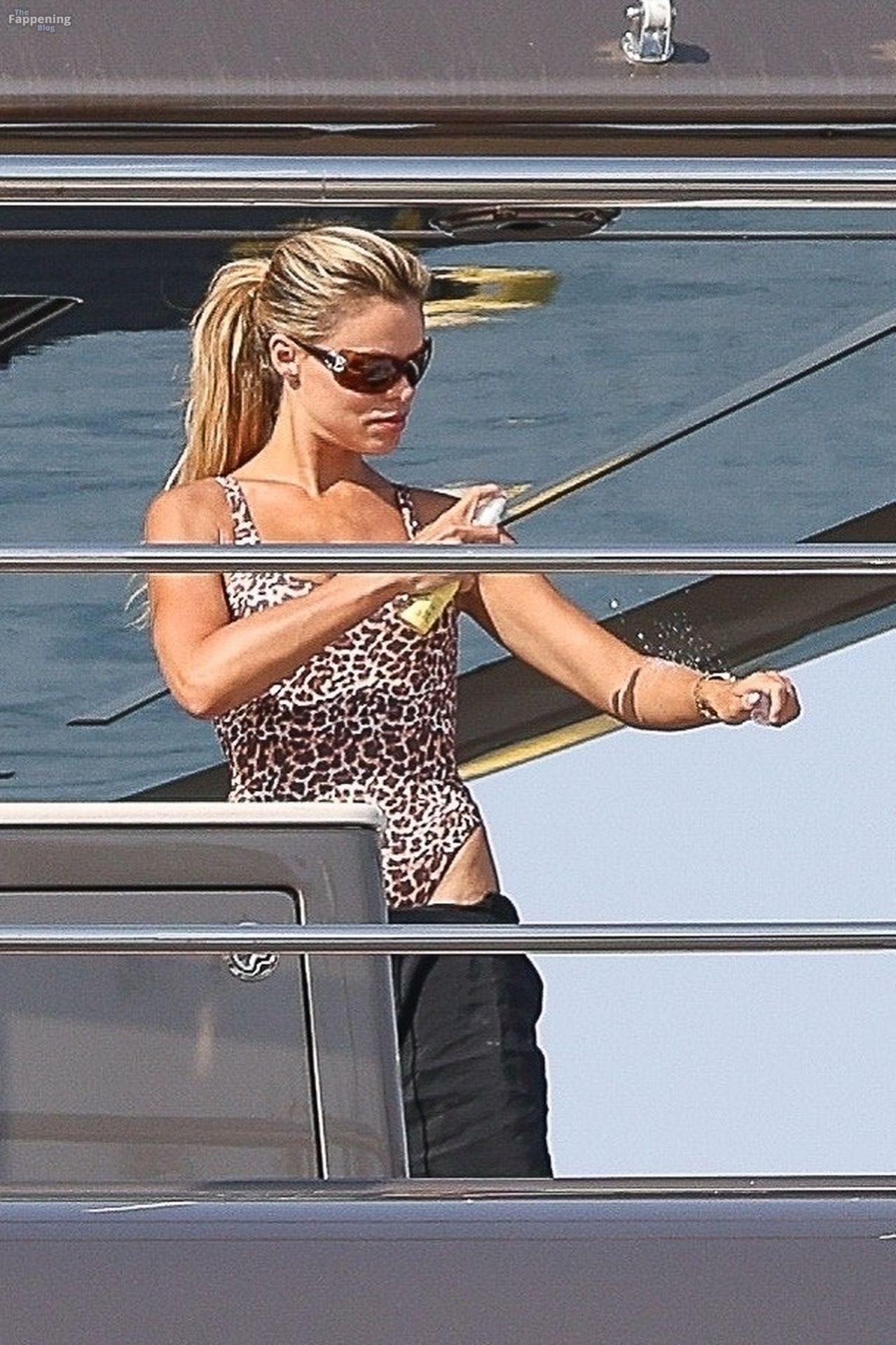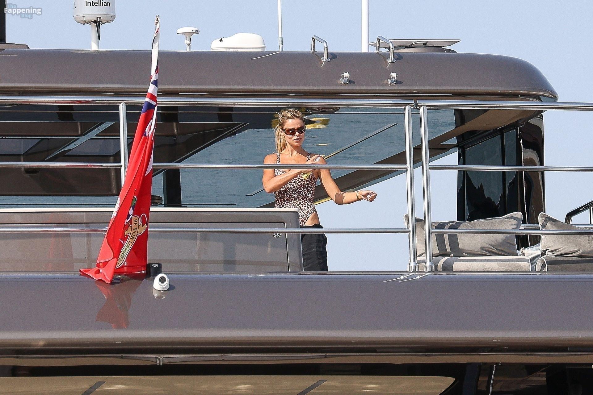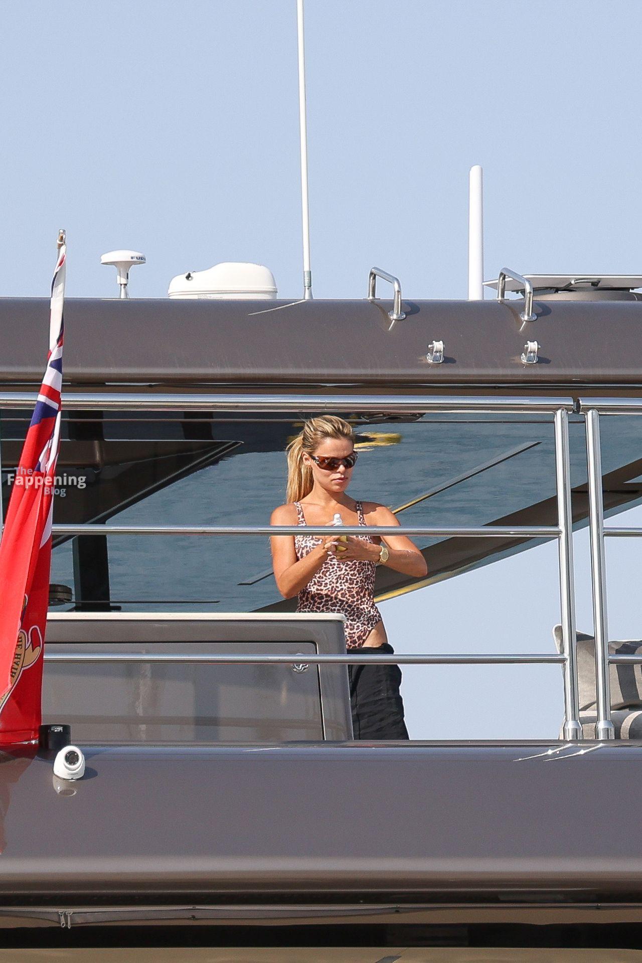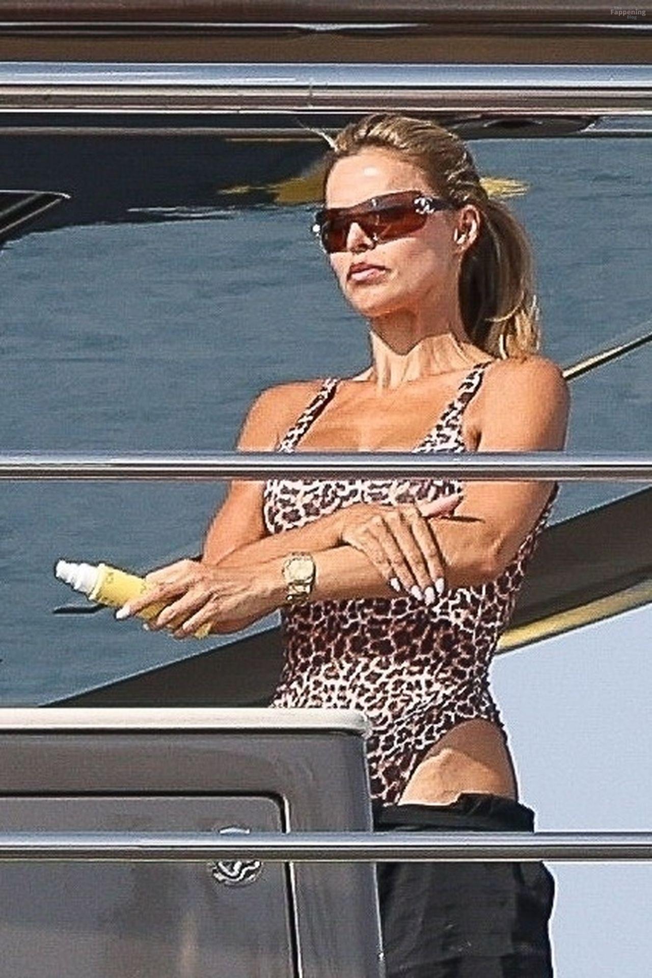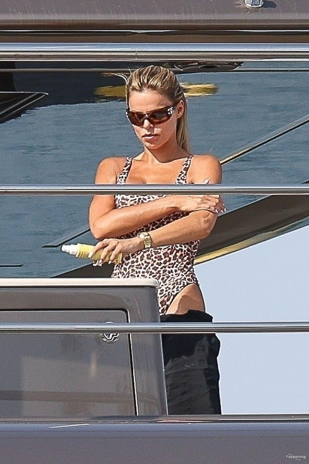 Brooks Nader y su hermana Sarah Jane Nader están relajándose en su superyate Twilight Georgetown de €10.9M en Ibiza, tomando el sol. Brooks lleva un traje de baño enterizo de leopardo con pantalones deportivos, mostrando su trasero y curvas mientras lleva un bolso Hermès Birkin. También están paseando por la ciudad, comiendo helado.