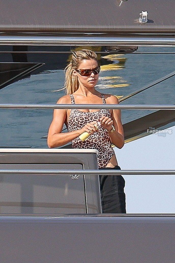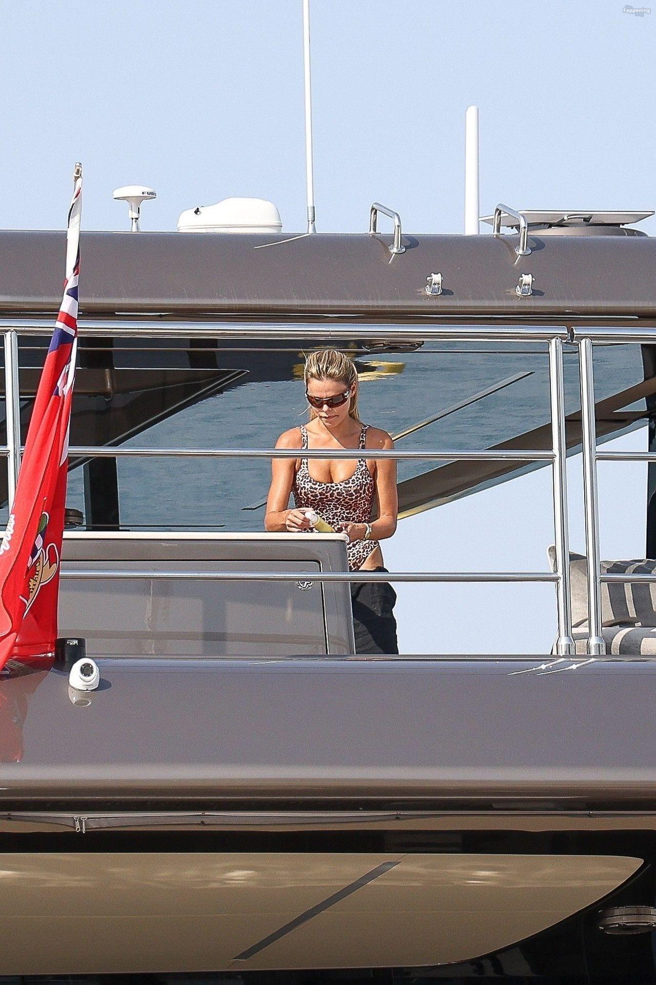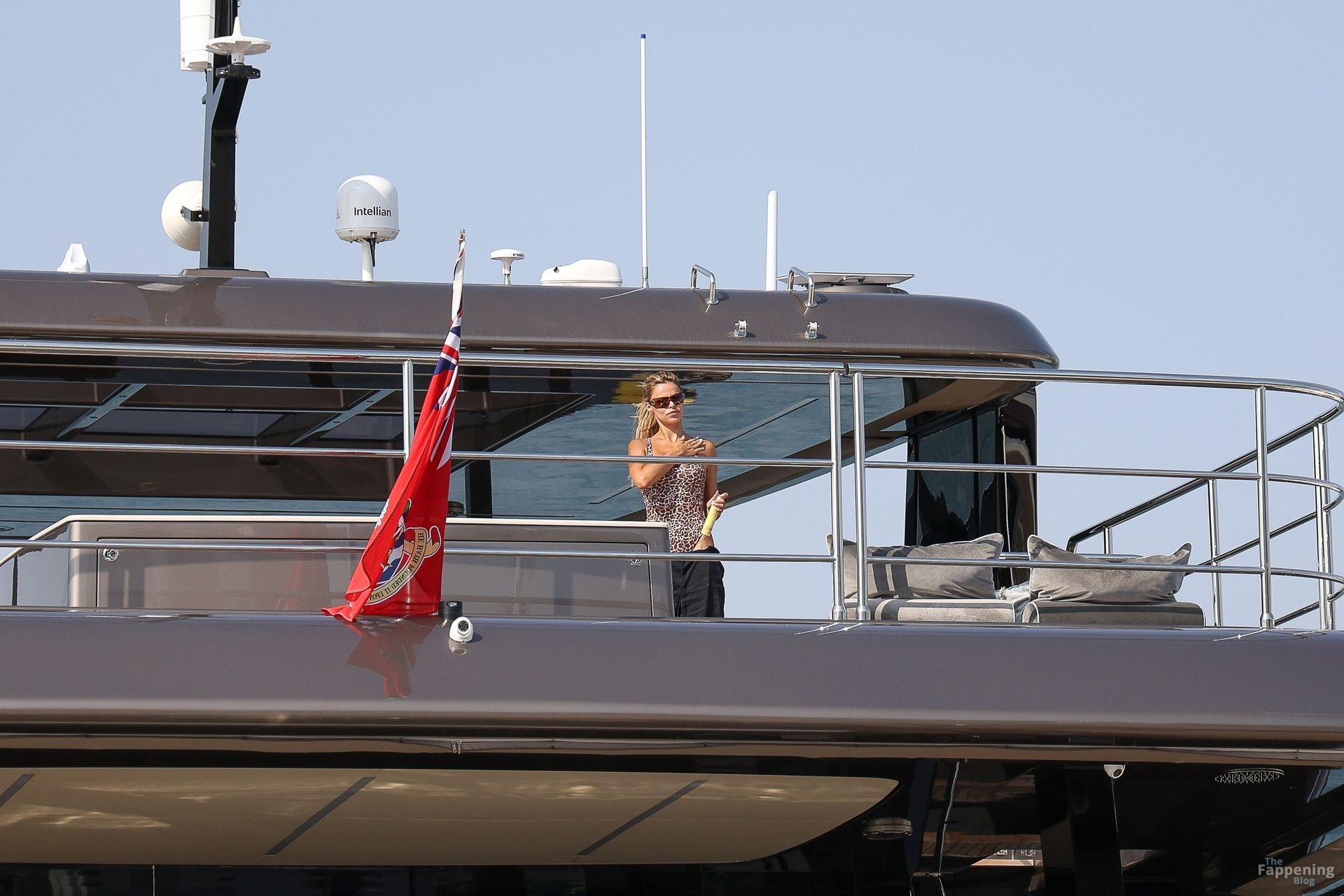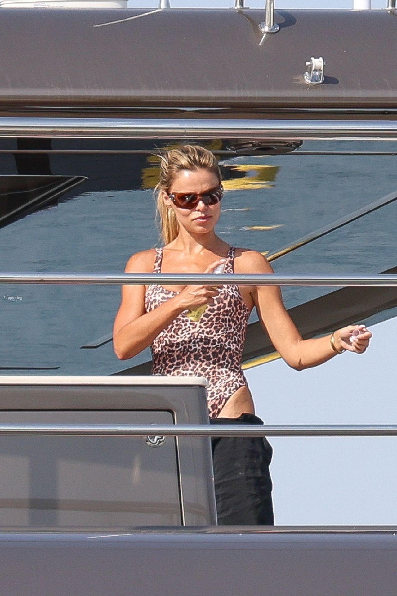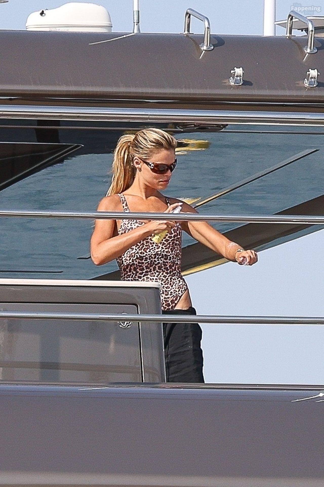 Brooks Nader y su hermana Sarah Jane Nader están relajándose en su superyate Twilight Georgetown de €10.9M en Ibiza, tomando el sol. Brooks lleva un traje de baño enterizo de leopardo con pantalones deportivos, mostrando su trasero y curvas mientras lleva un bolso Hermès Birkin. También están paseando por la ciudad, comiendo helado.