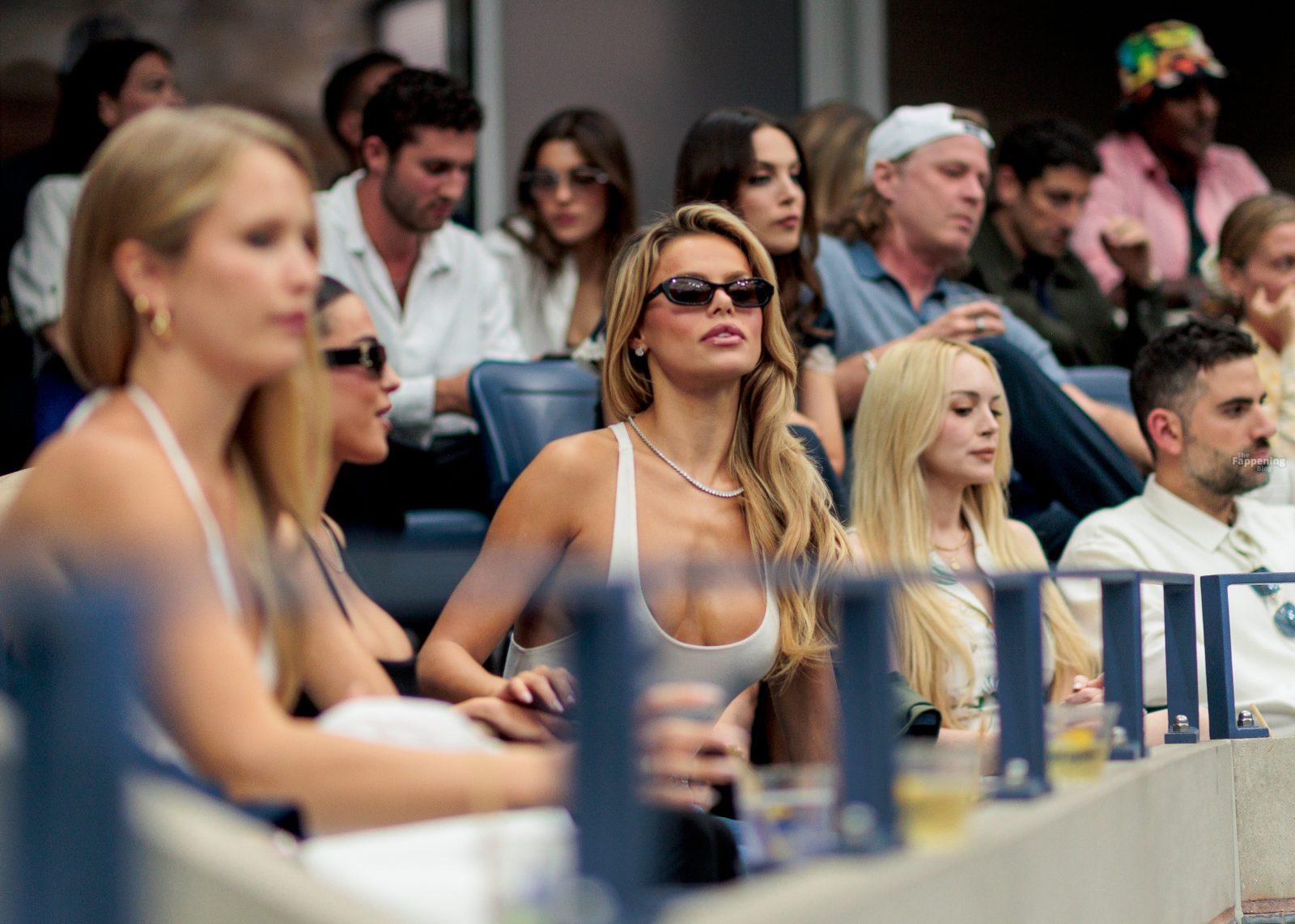 Modelo y estrella de reality TV Brooks Nader fue sin sostén en el US Open, llevando una camiseta sin mangas con un escote profundo que estuvo a punto de mostrar demasiado justo al lado de la cancha.