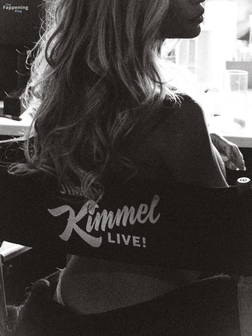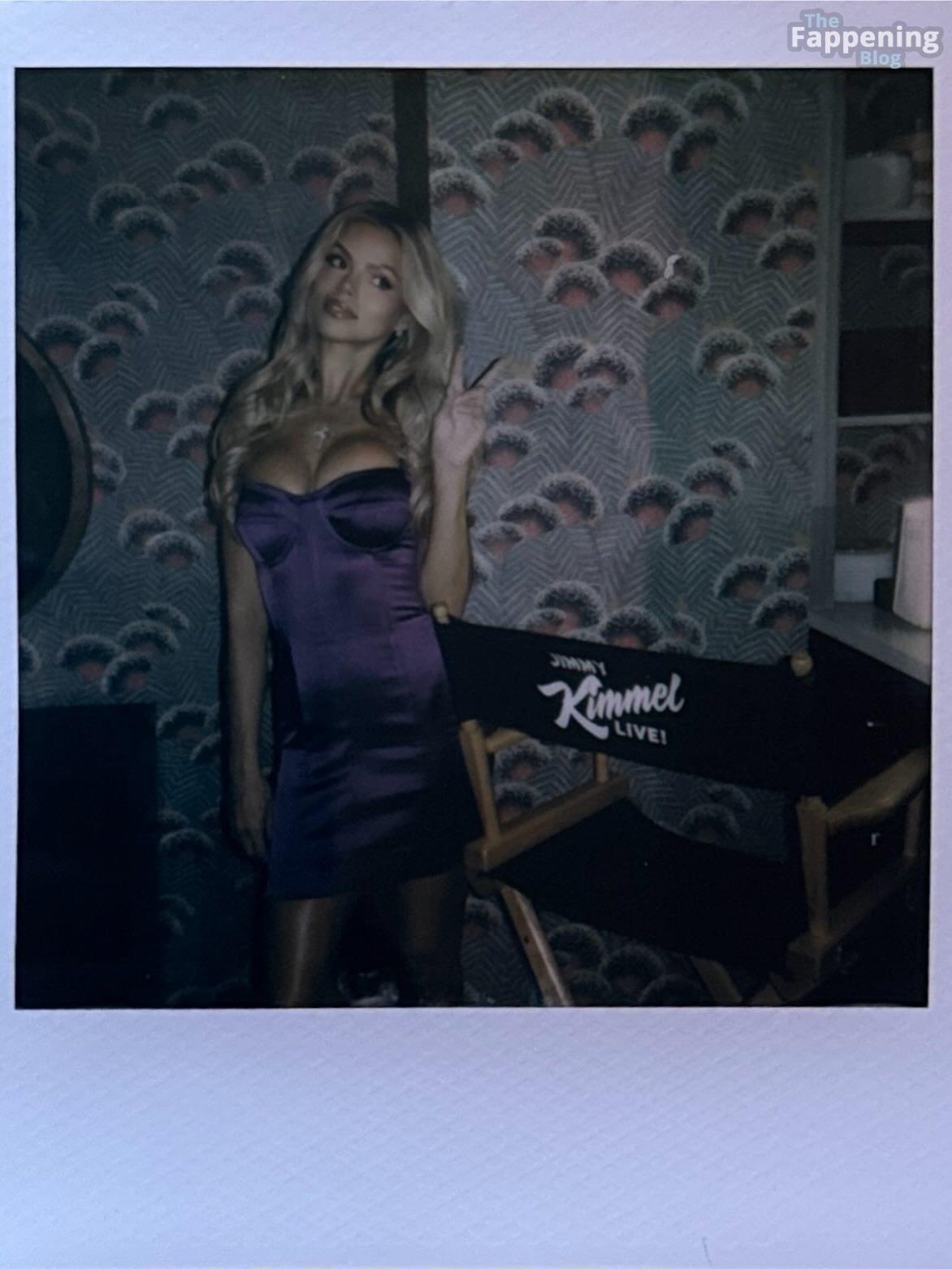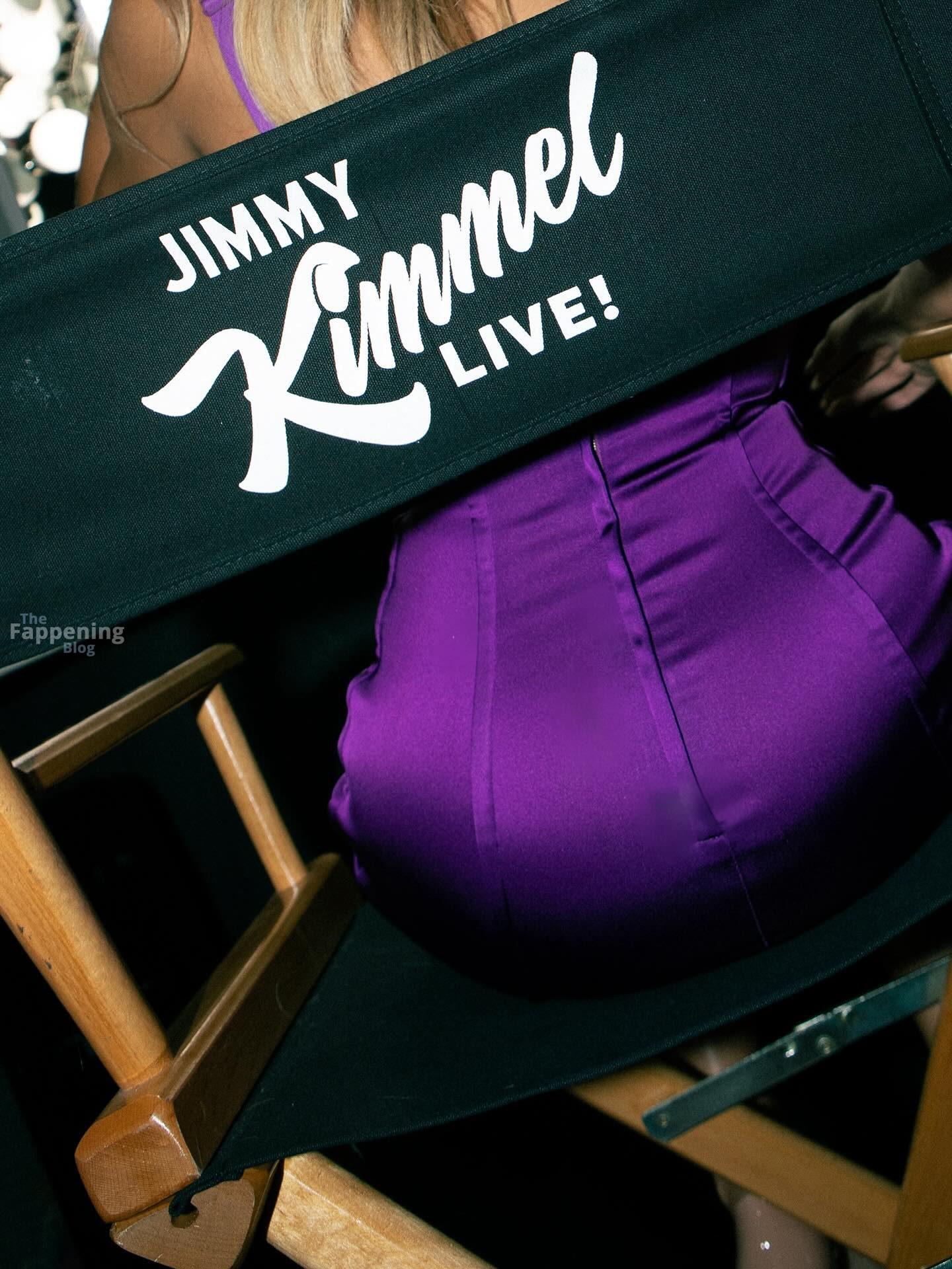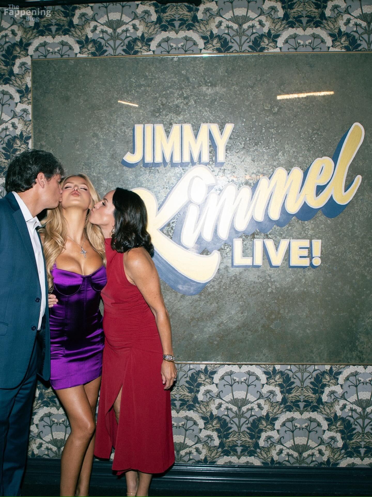 La modelo y estrella de reality TV Brooks Nader casi se le salen los pechos de un ajustado vestido de satén morado en esta sesión de fotos para Jimmy Kimmel Live realizada por Isabelle Passaglia.