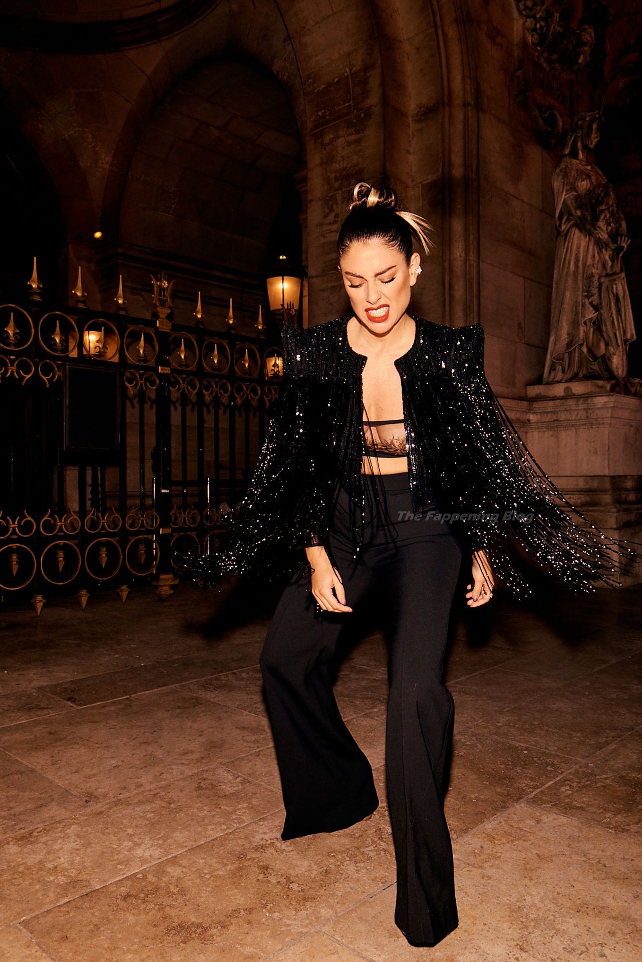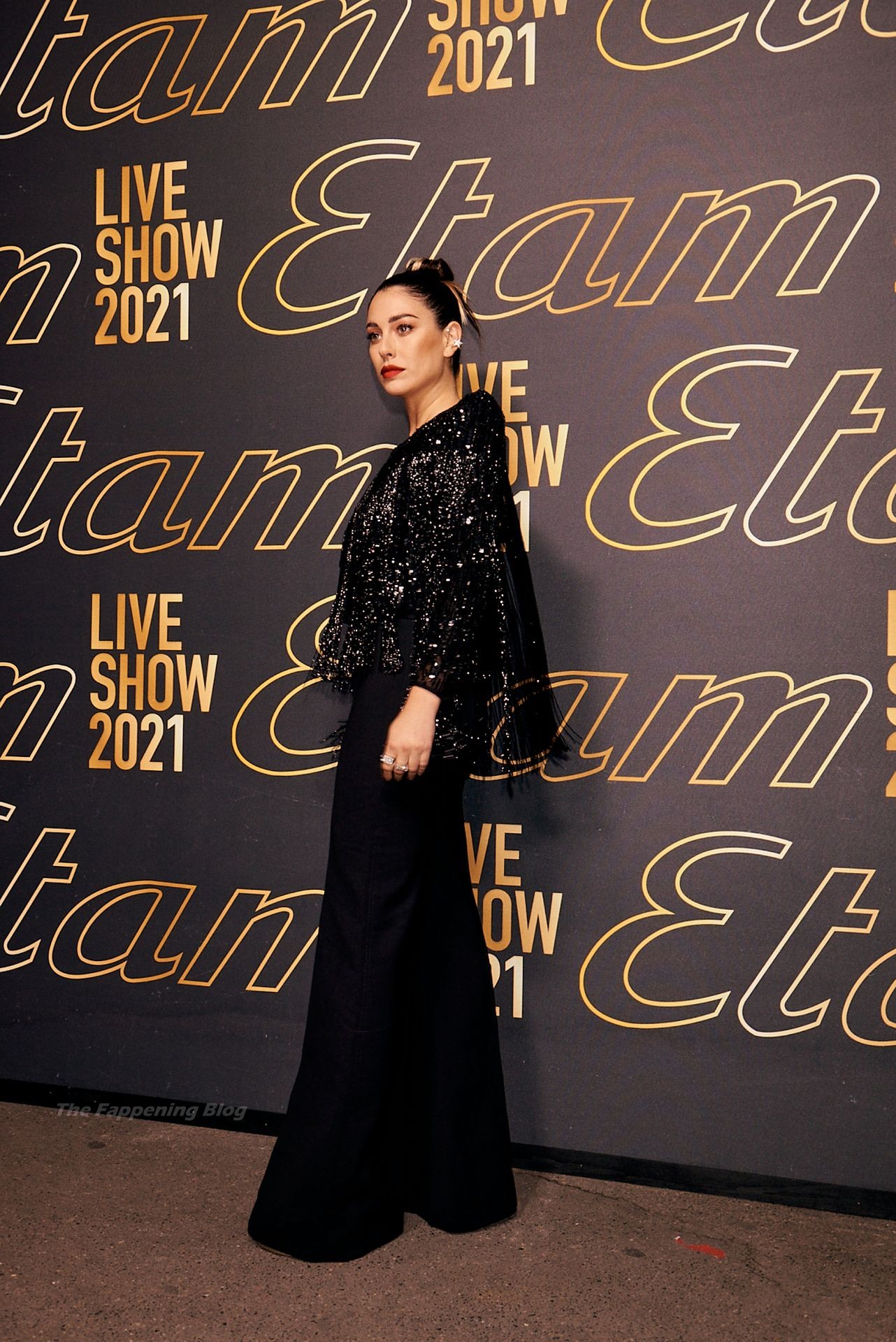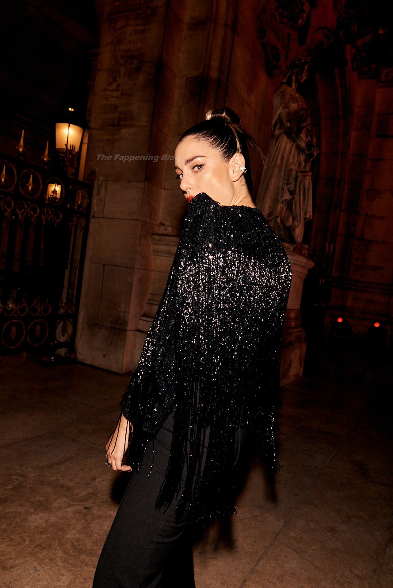 La actriz española Blanca Suarez posa en el desfile de moda de la marca de lencería Etam en París, mostrando sus pechos desnudos, 10/06/2021.