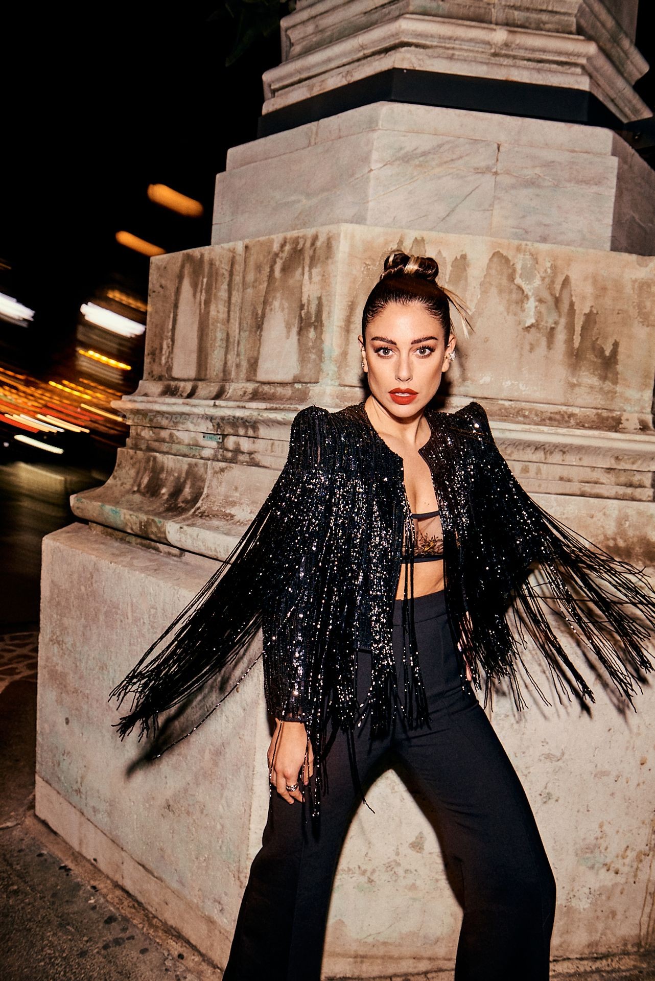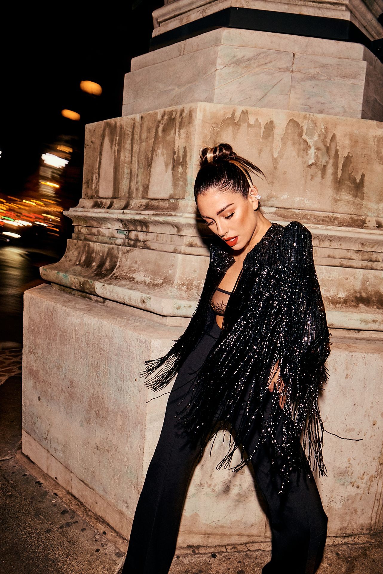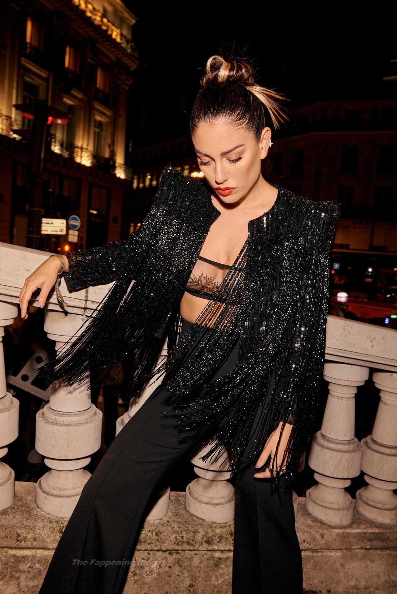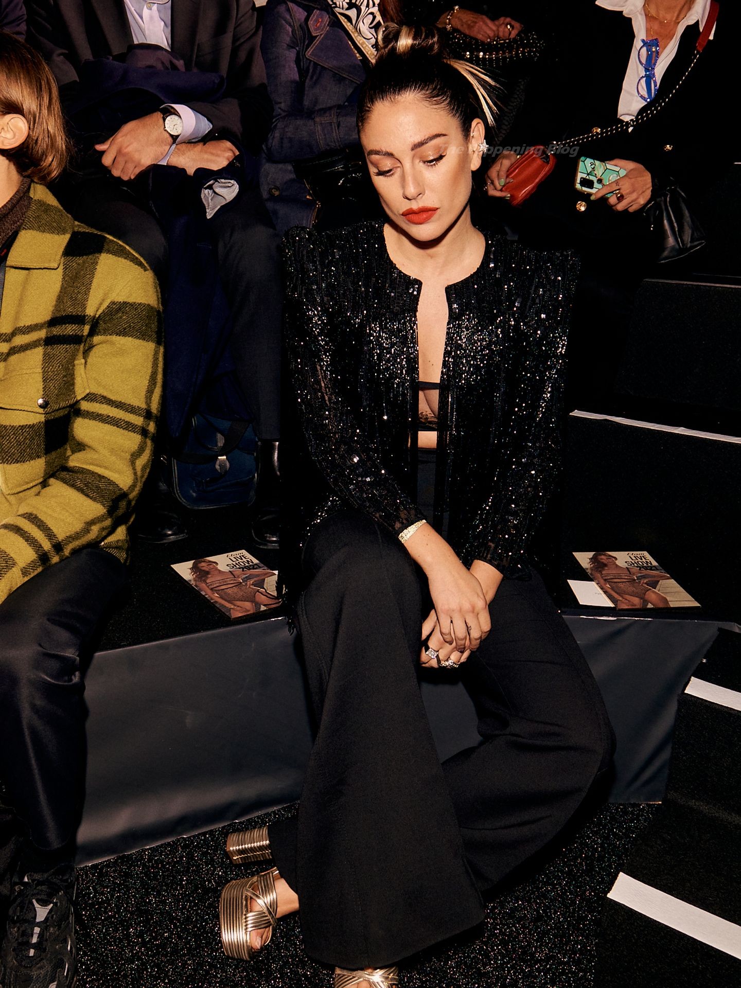 La actriz española Blanca Suarez posa en el desfile de moda de la marca de lencería Etam en París, mostrando sus pechos desnudos, 10/06/2021.