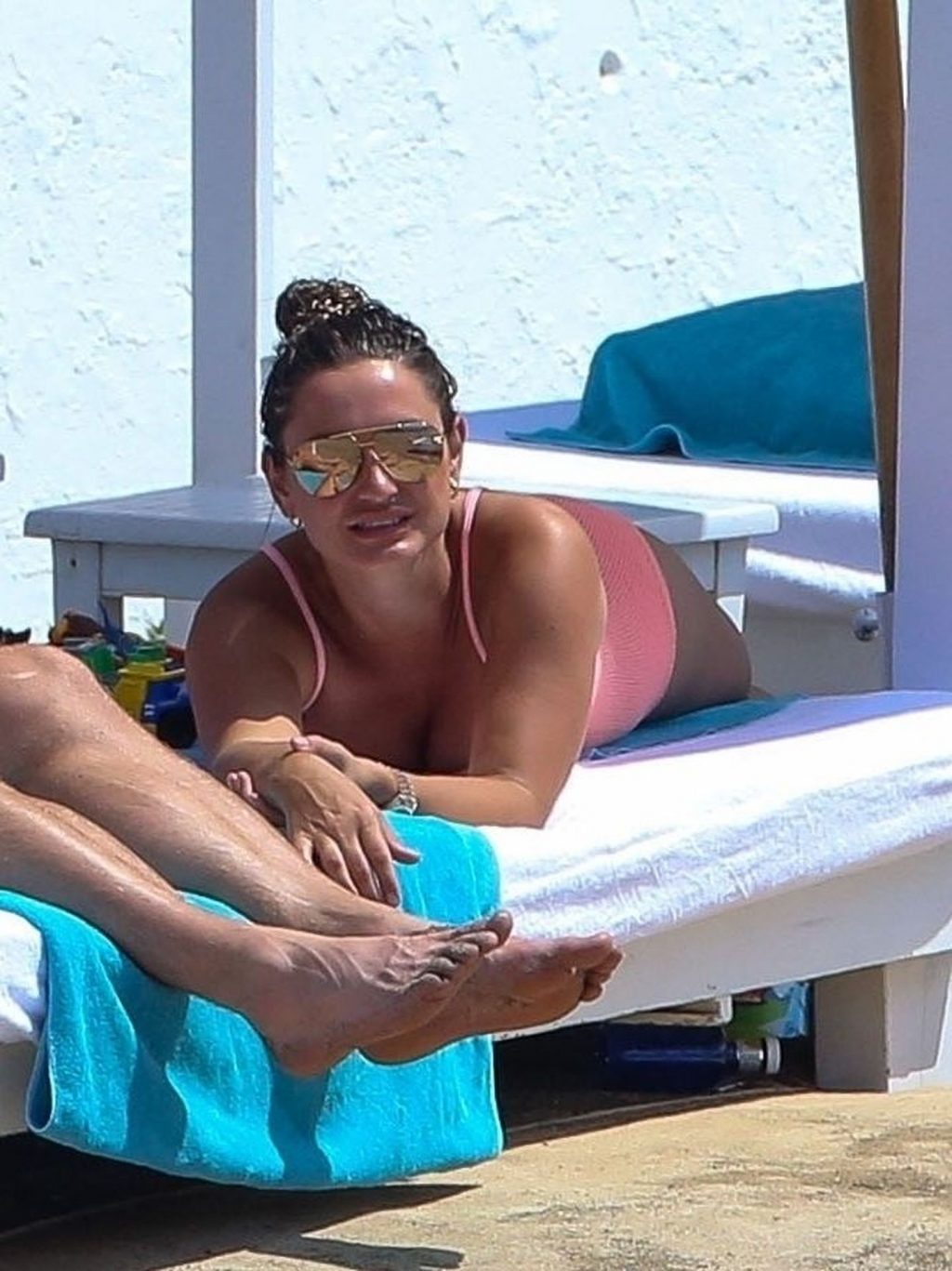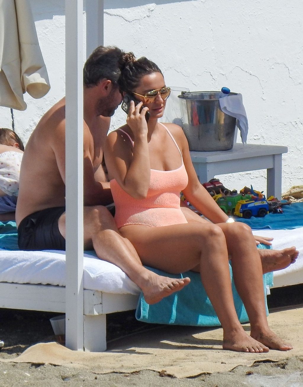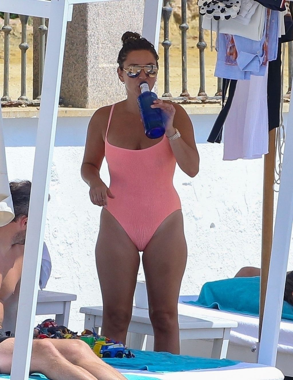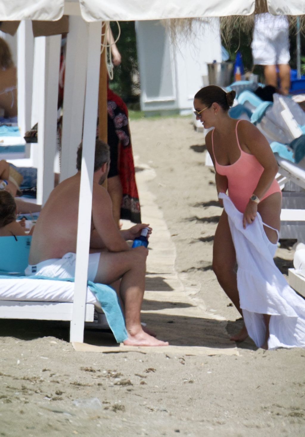 La estrella de televisión Sam Faiers se ve disfrutando de sus vacaciones soleadas junto a su esposo Paul Knightley y sus hijos Paul y Rosie – Marbella, España, 25/07/2020.
