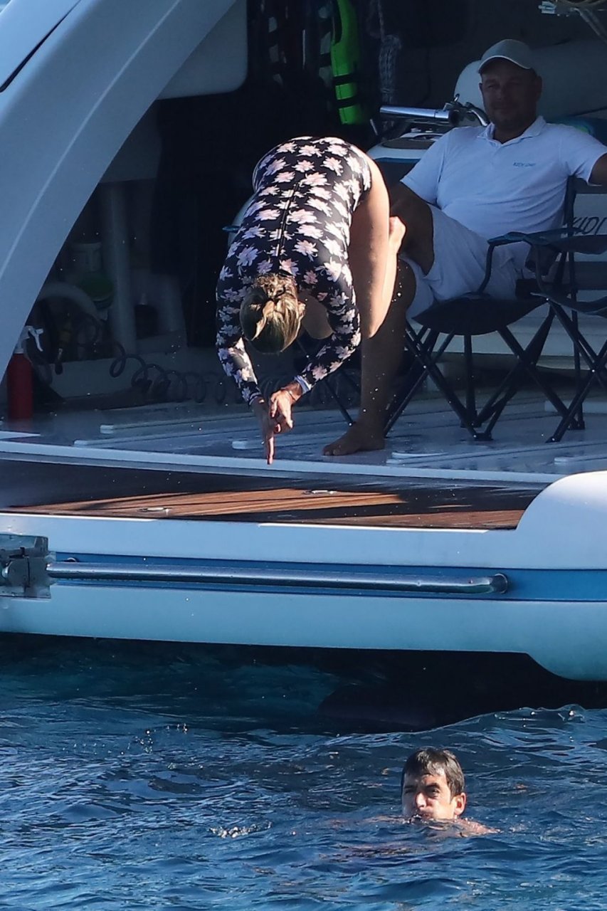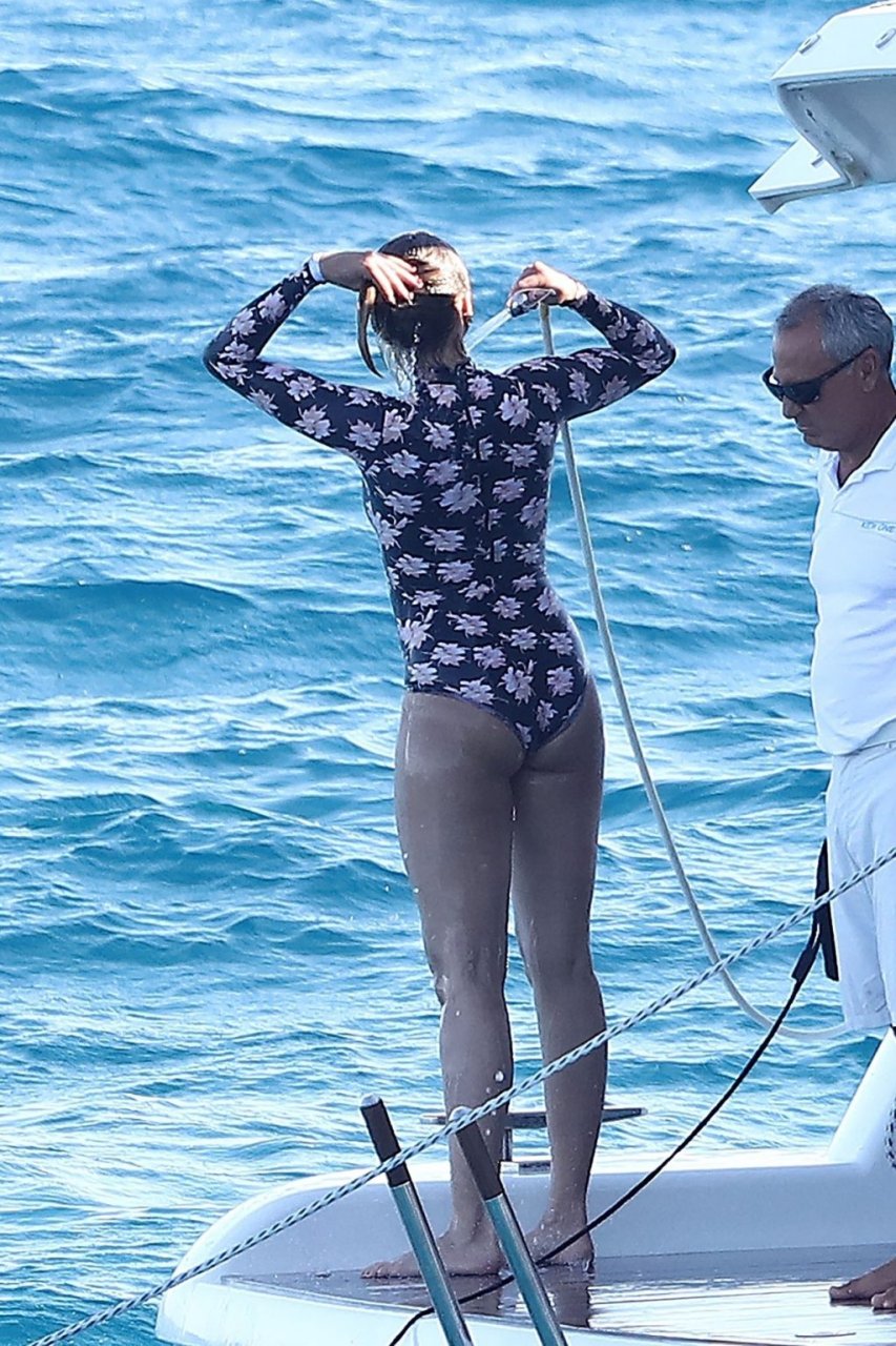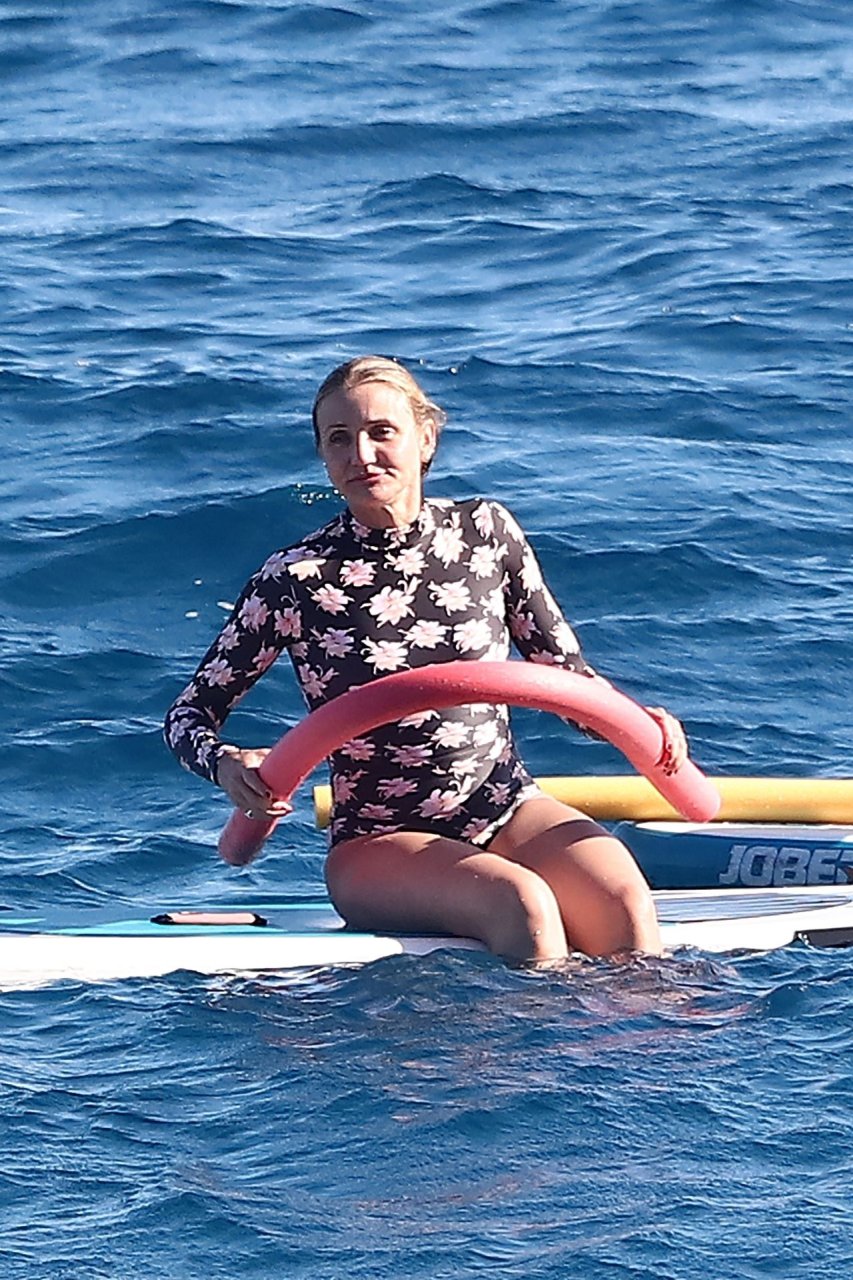 Cameron Diaz y su esposo Benji Madden están aprovechando al máximo sus vacaciones en Saint Tropez, 08/08/2019. La estrella de Charlie’s Angels fue vista zambulléndose en el Mediterráneo con un traje de baño de una pieza floral que mostraba su fantástico cuerpo.