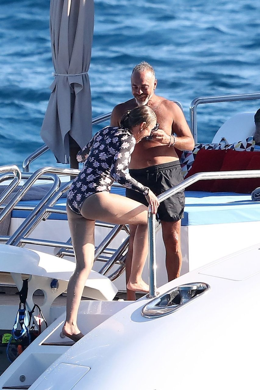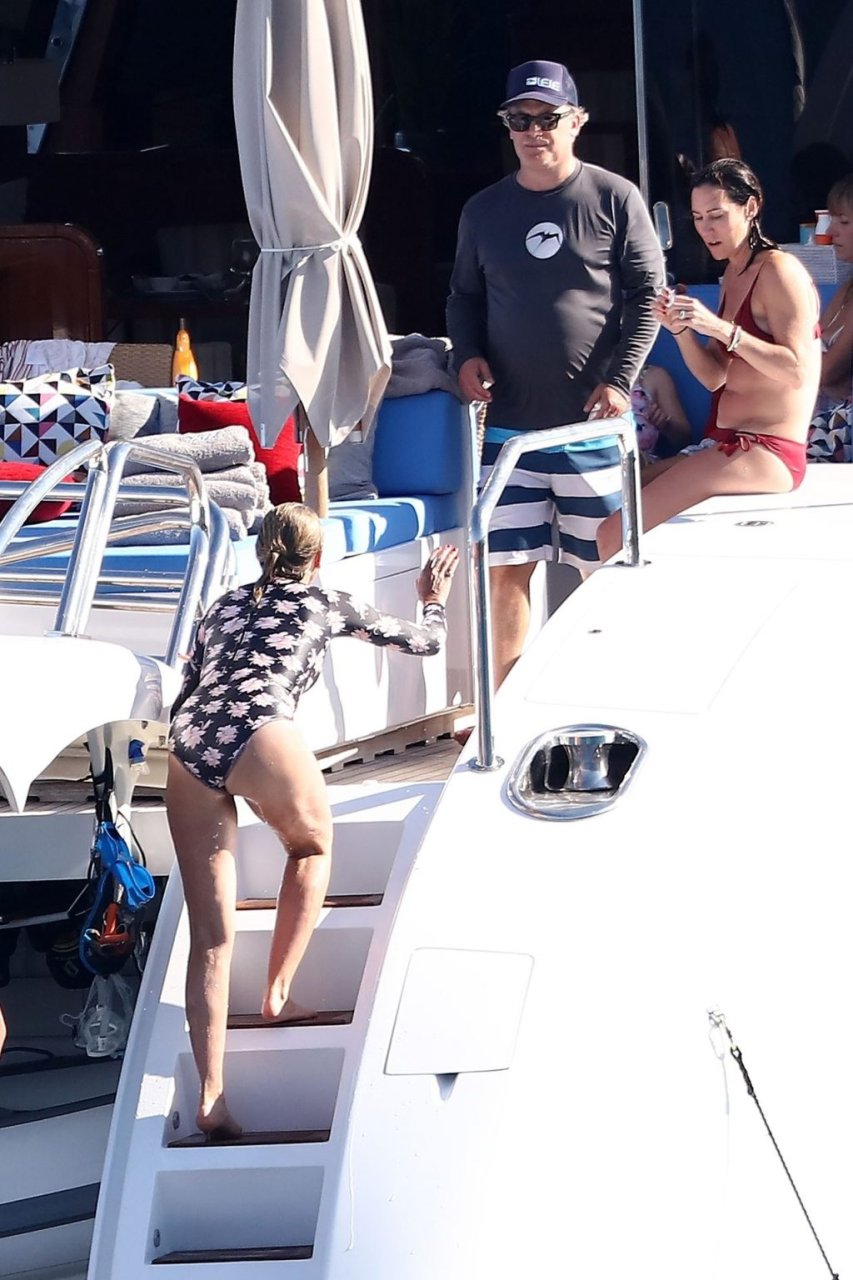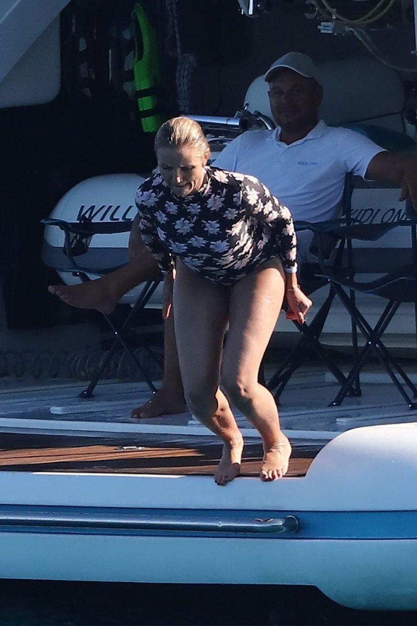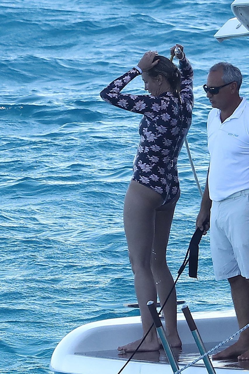 Cameron Diaz y su esposo Benji Madden están aprovechando al máximo sus vacaciones en Saint Tropez, 08/08/2019. La estrella de Charlie’s Angels fue vista zambulléndose en el Mediterráneo con un traje de baño de una pieza floral que mostraba su fantástico cuerpo.