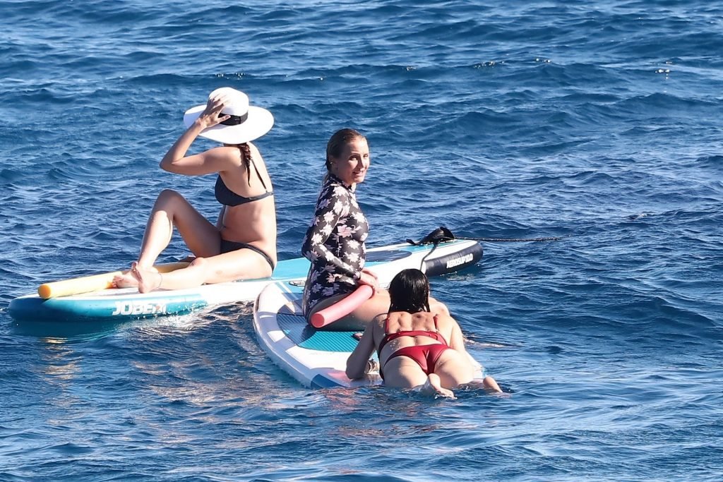 Cameron, que cumple 47 años este mes, no pudo contener su alegría mientras era vista montando una tabla motorizada con Benji por el mar y riendo con amigos en tablas de surf durante su día fuera.