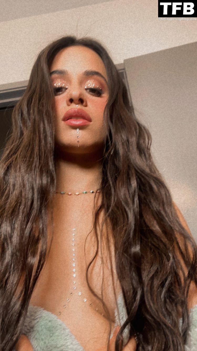 Fíjate cómo tiene cuidado de no inclinar la cámara demasiado hacia abajo. Truco común de chicas gorditas – "¡No, no, mira mi cara brillante y escote! ¡No mires mi enorme trasero!"