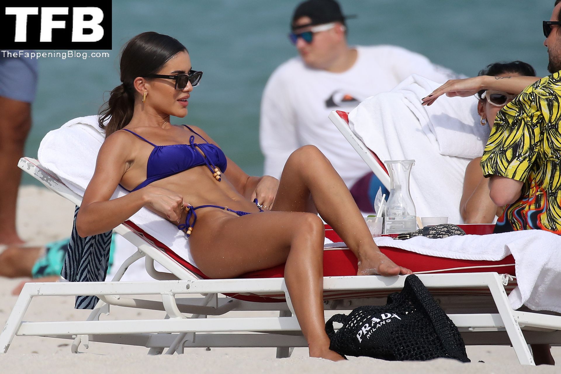 La modelo Camila Coelho lleva un bikini azul mientras se relaja en la playa de Miami, 28/10/2021.