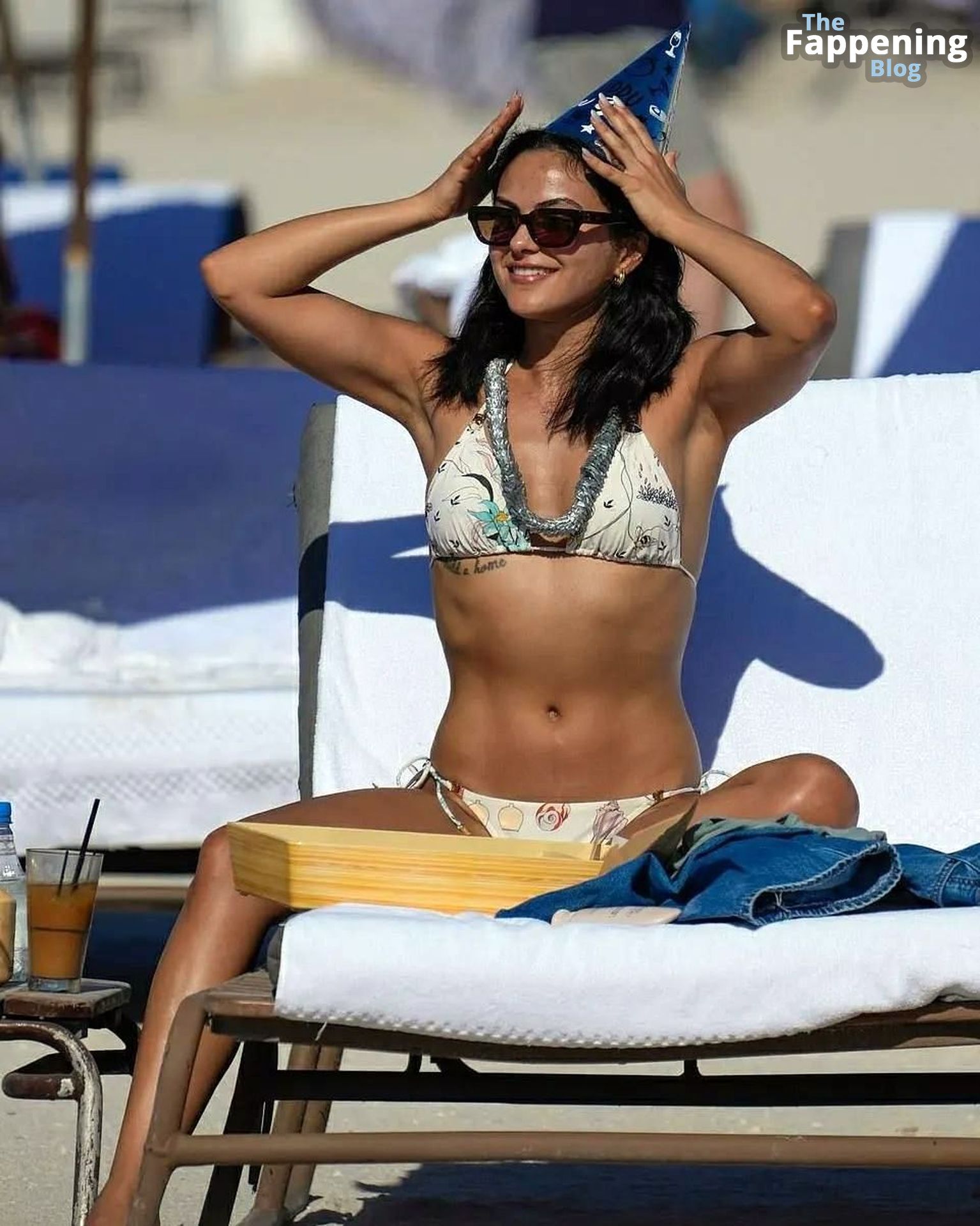 Camila Mendes muestra su cuerpo sexy con un pequeño bikini en la playa de Miami.