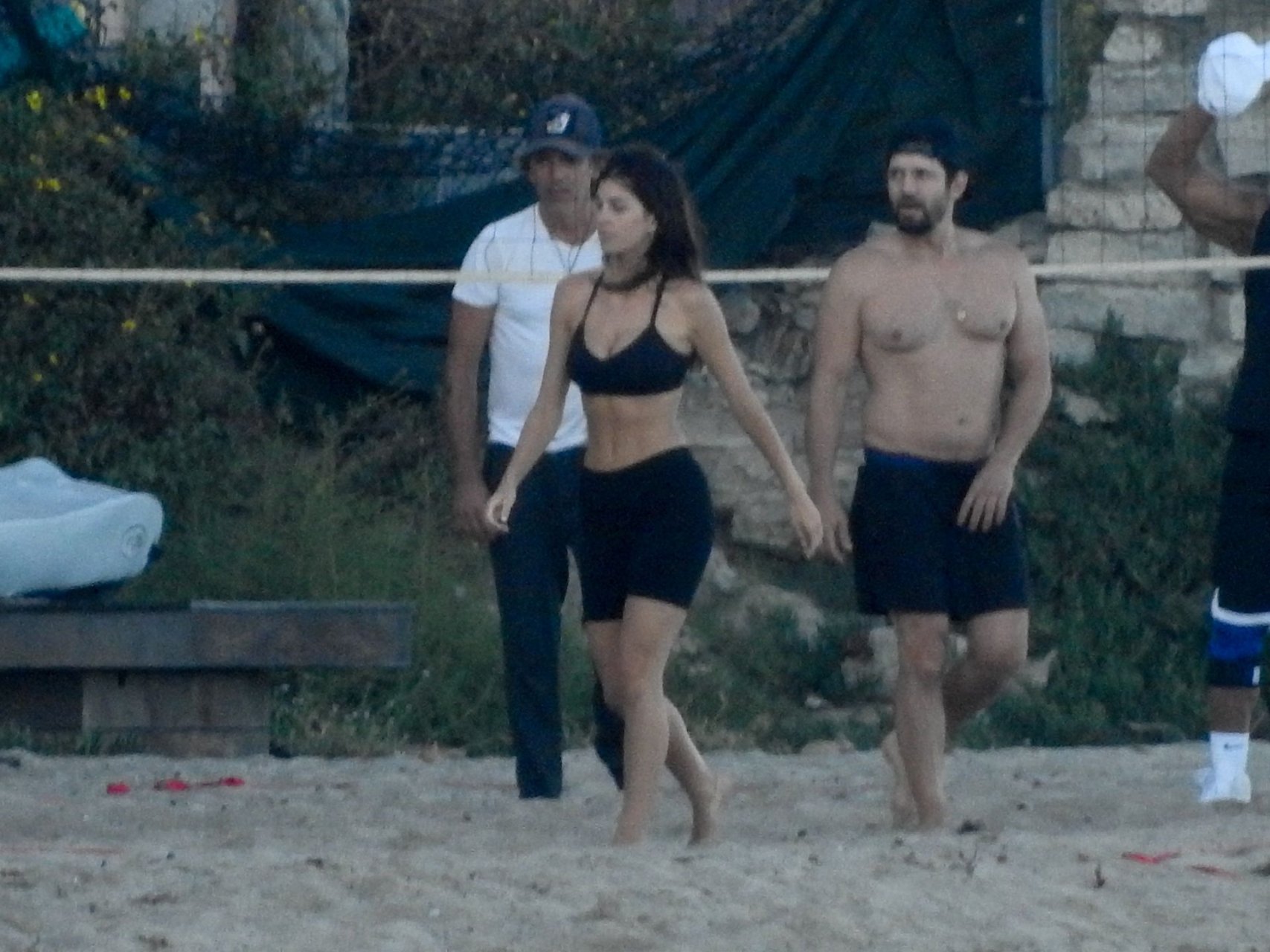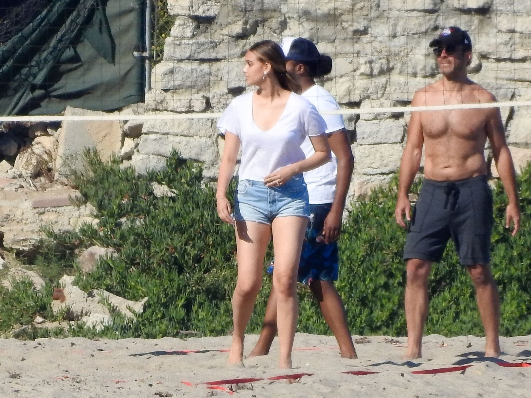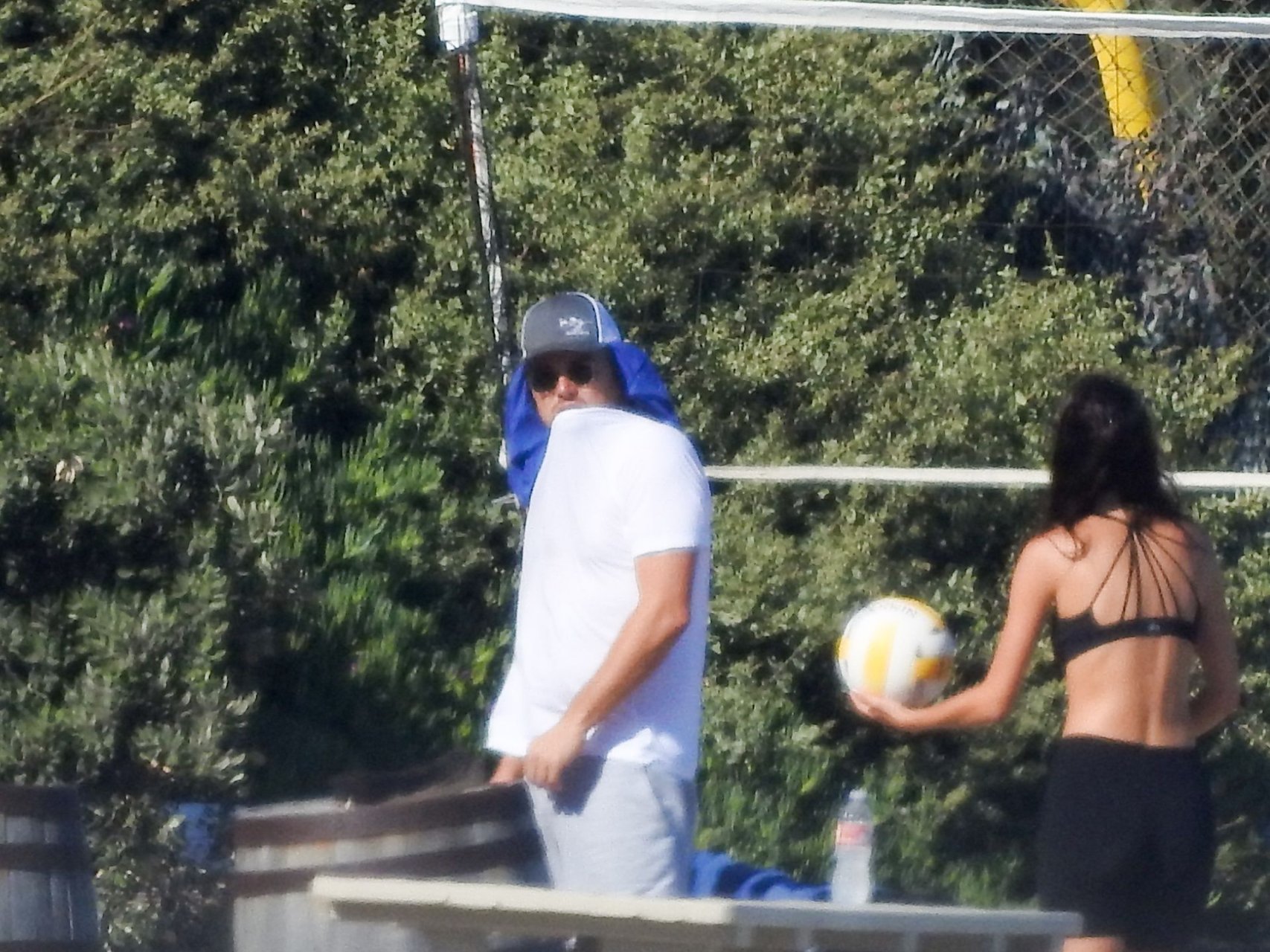 Ganador del Premio de la Academia Leonardo DiCaprio, su sexy novia Camila Morrone, y el dúo de A-listers Robin Thicke y April Love Geary, junto con sus pequeños, fueron vistos disfrutando uno de los deportes de playa favoritos de Leo este fin de semana, ¡un juego de voleibol! Fotografiado el 14/07/19.