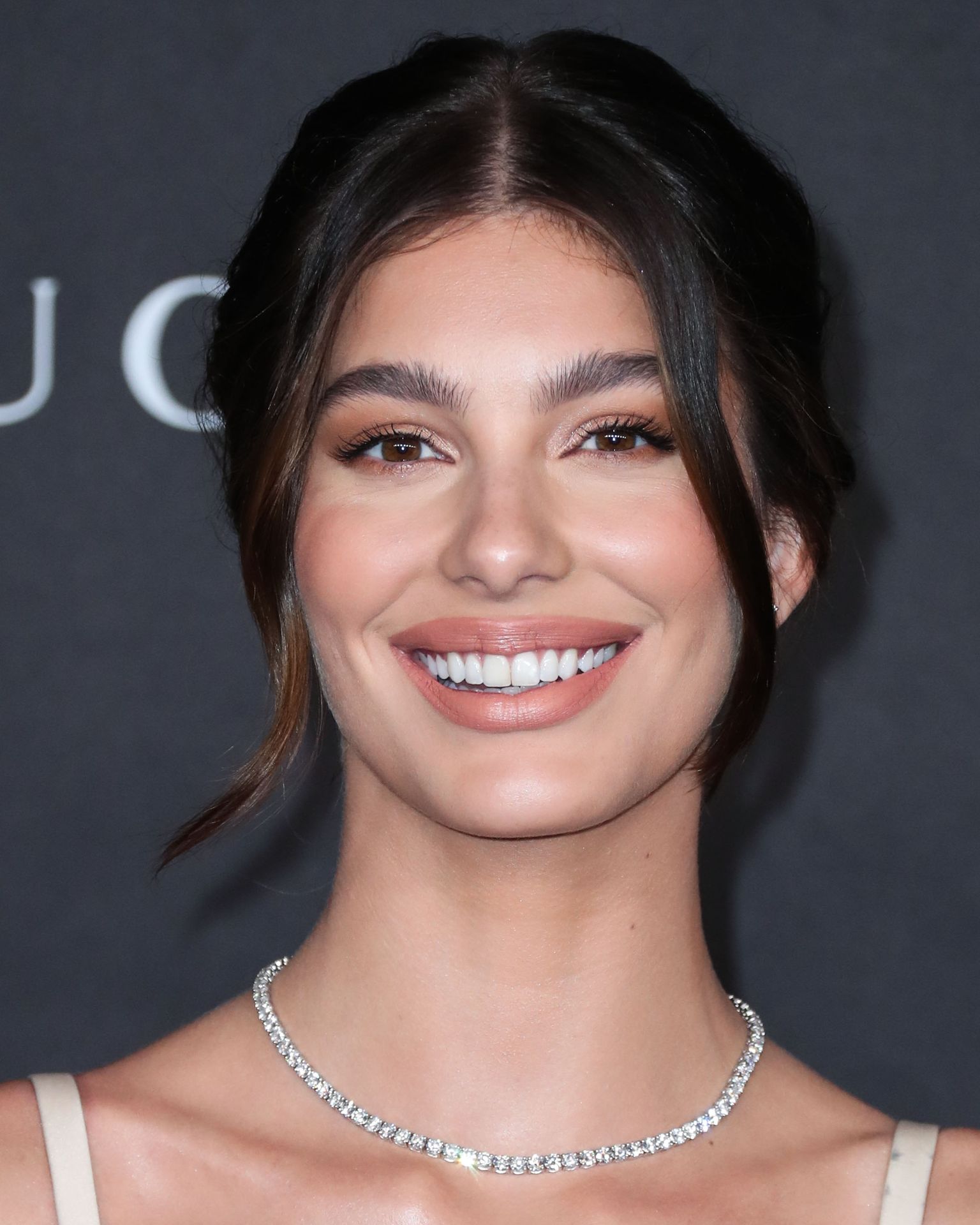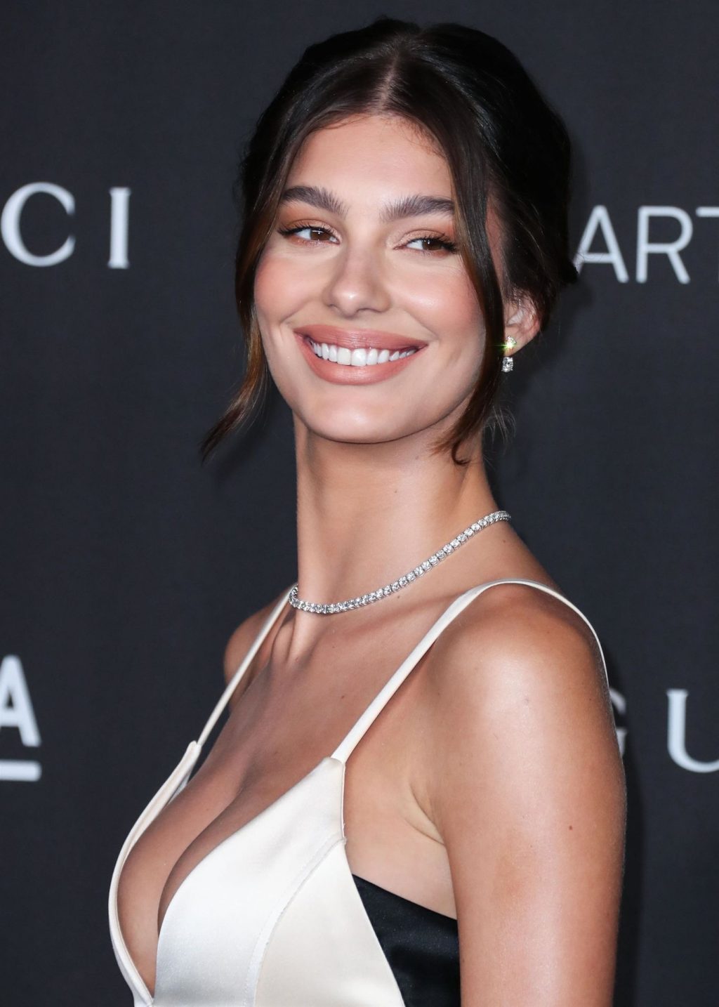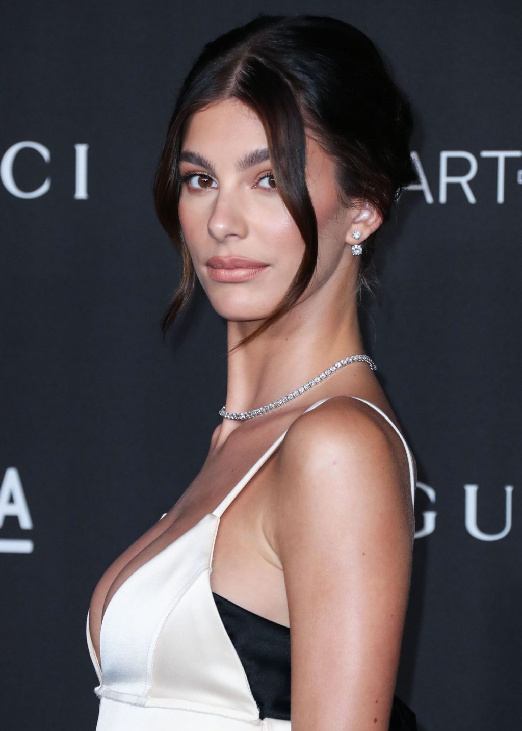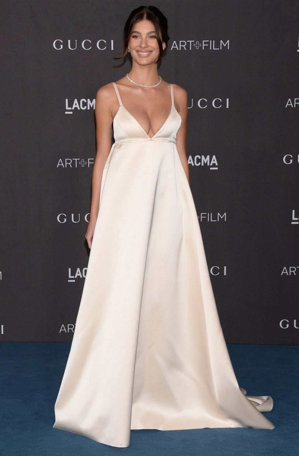 La modelo/actriz Camila Morrone mostró su escote perfecto, vistiendo un vestido blanco en la Gala de Arte y Cine LACMA 2019 en el Museo de Arte del Condado de Los Ángeles el 2 de noviembre de 2019, en Los Ángeles, California.