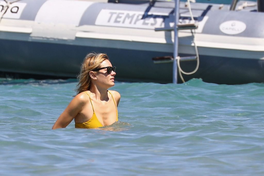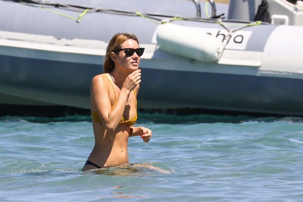 La famosa supermodelo Camille Rowe (28) fue vista en Córcega donde se reunió con su familia solo unos días después del anuncio de su ruptura con Harry Styles. Apareció sola en la playa mientras ya circulan rumores de nuevas relaciones, 11/08/2018.