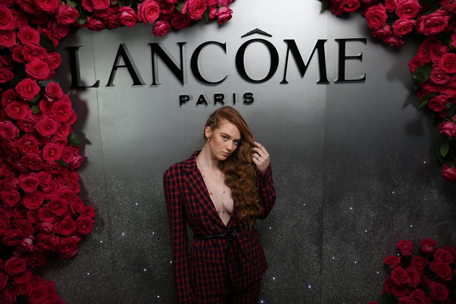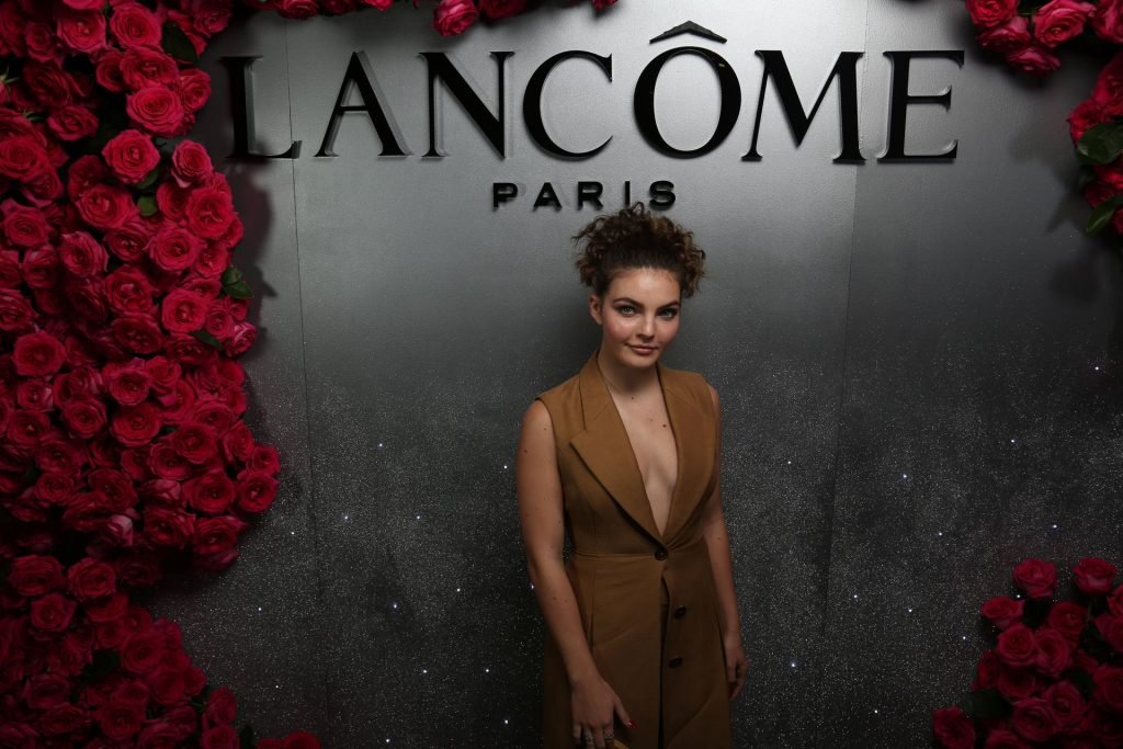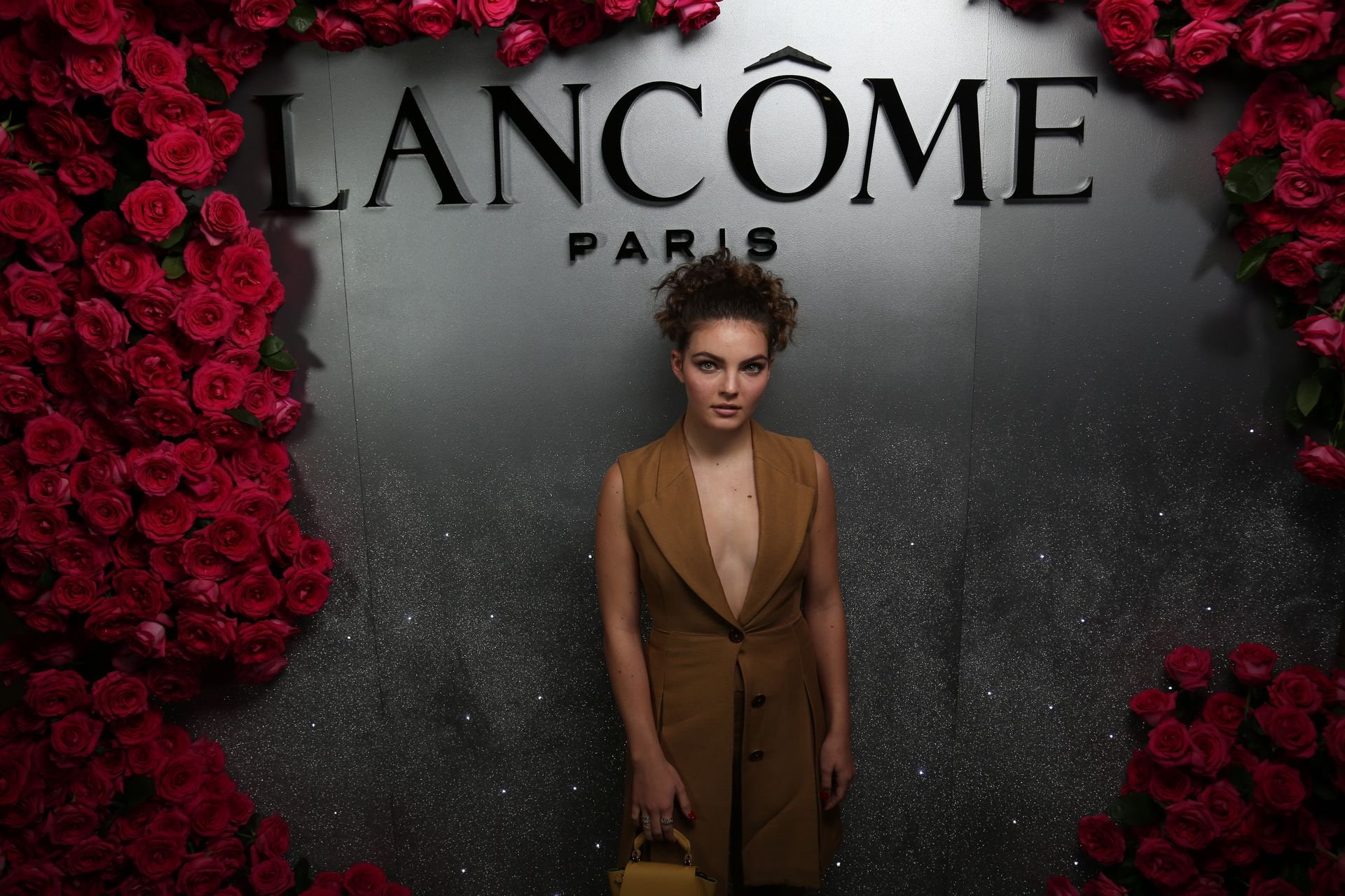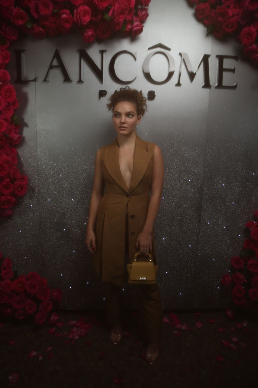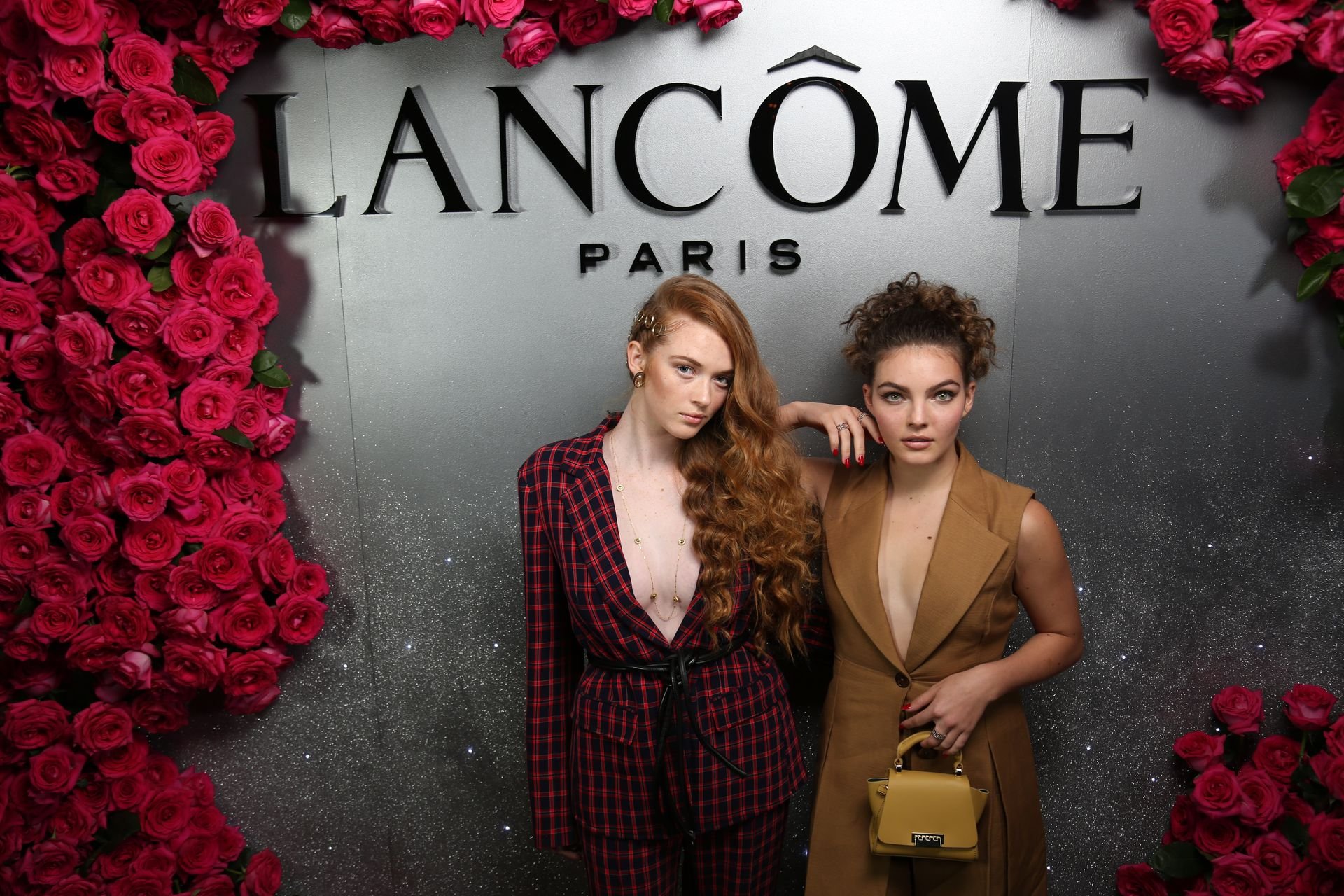 Actrices jóvenes y sexys Camren Bicondova y Larsen Thompson asisten a la cabina de fotos de la fiesta navideña Lancome X Vogue en Los Ángeles, 30/11/2018.