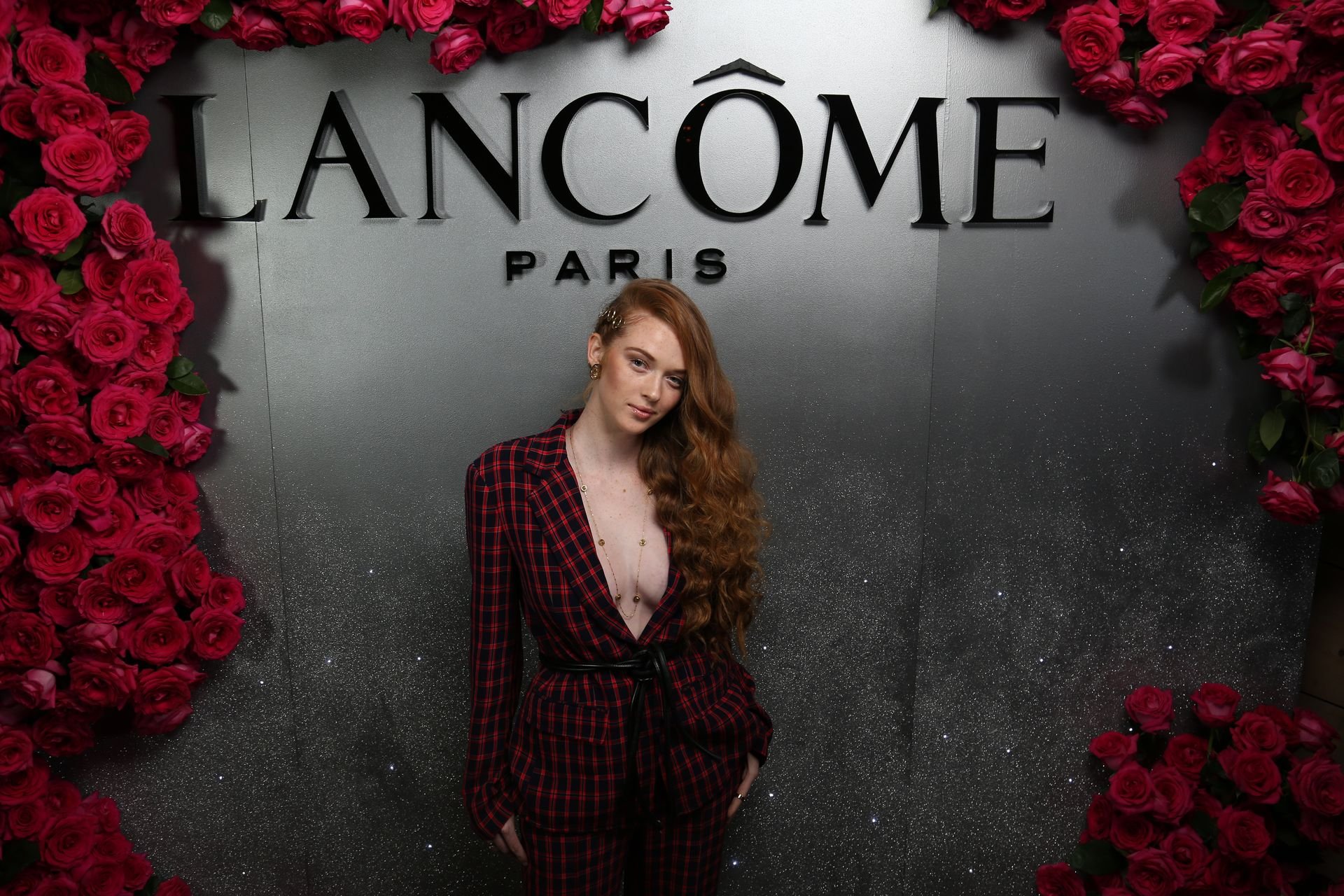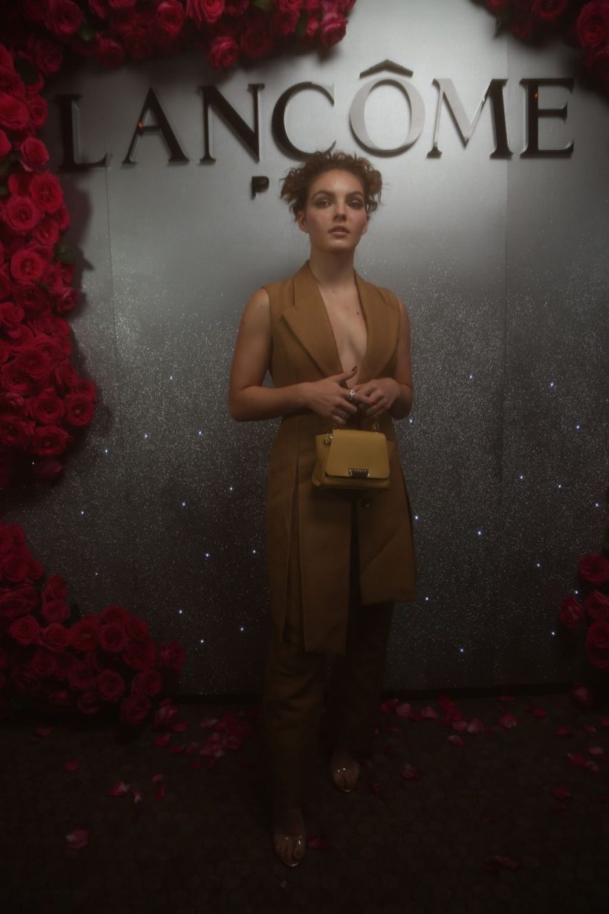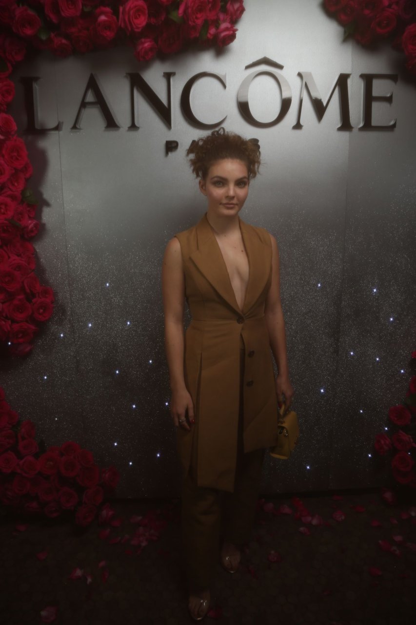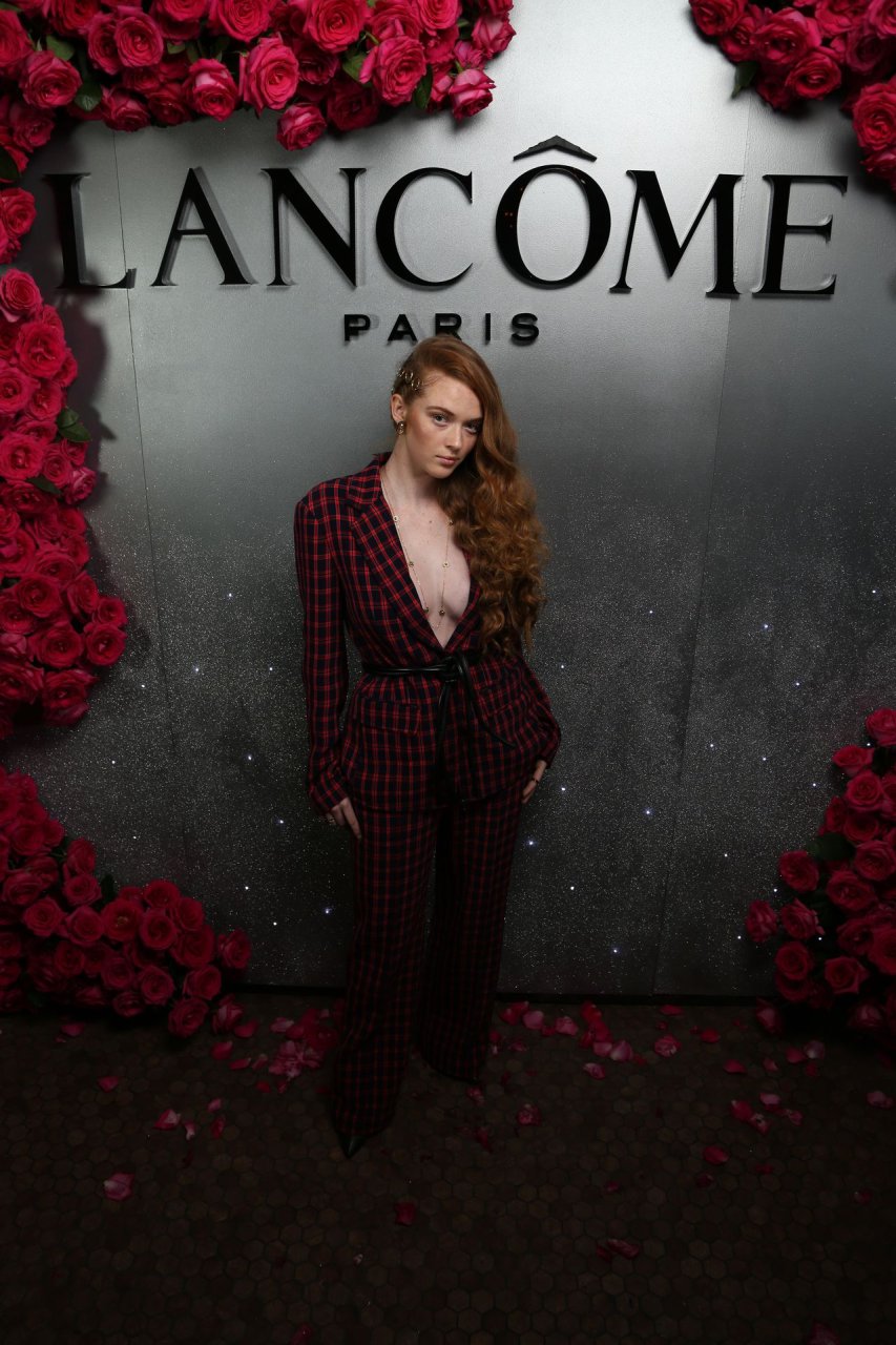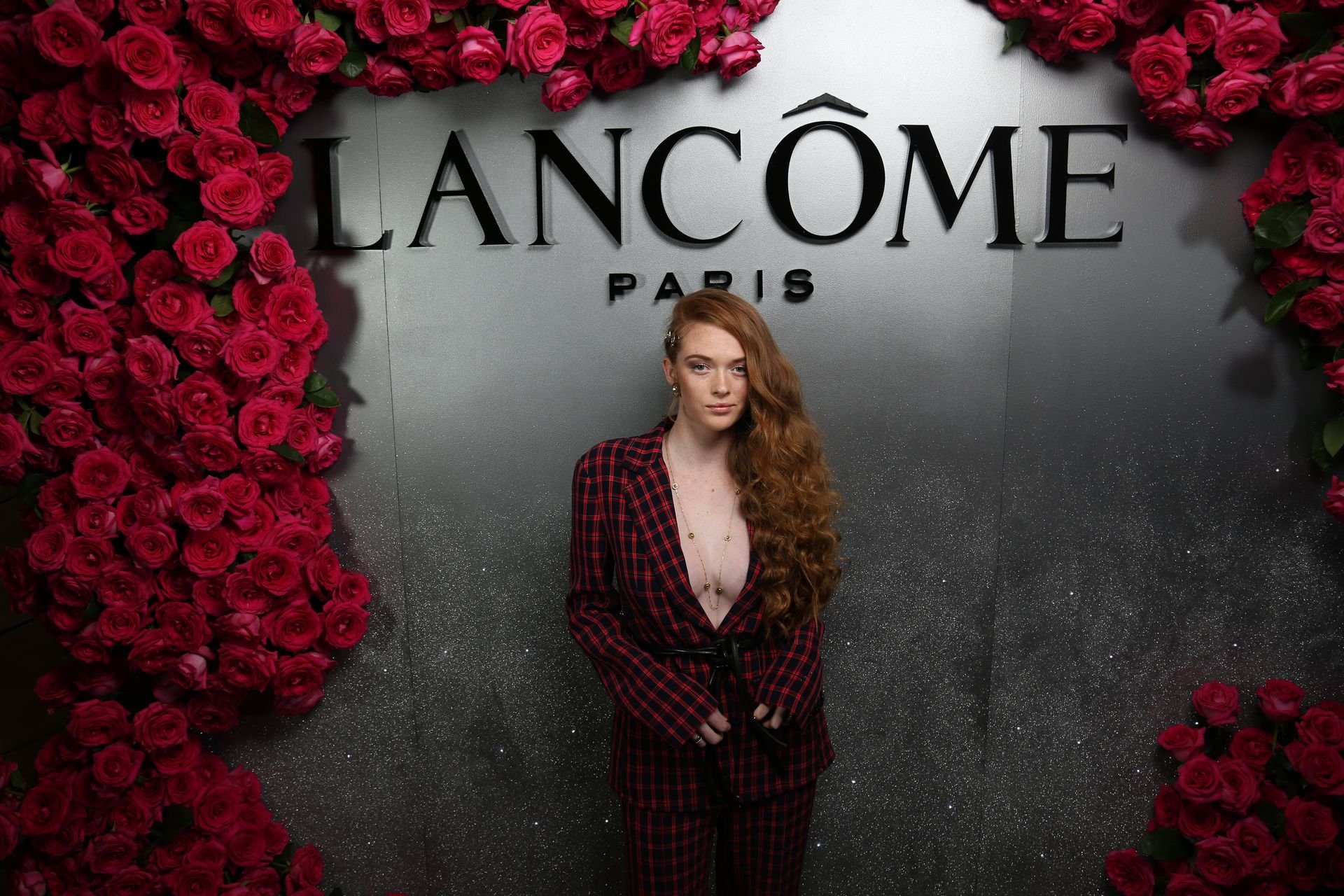 Actrices jóvenes y sexys Camren Bicondova y Larsen Thompson asisten a la cabina de fotos de la fiesta navideña Lancome X Vogue en Los Ángeles, 30/11/2018.