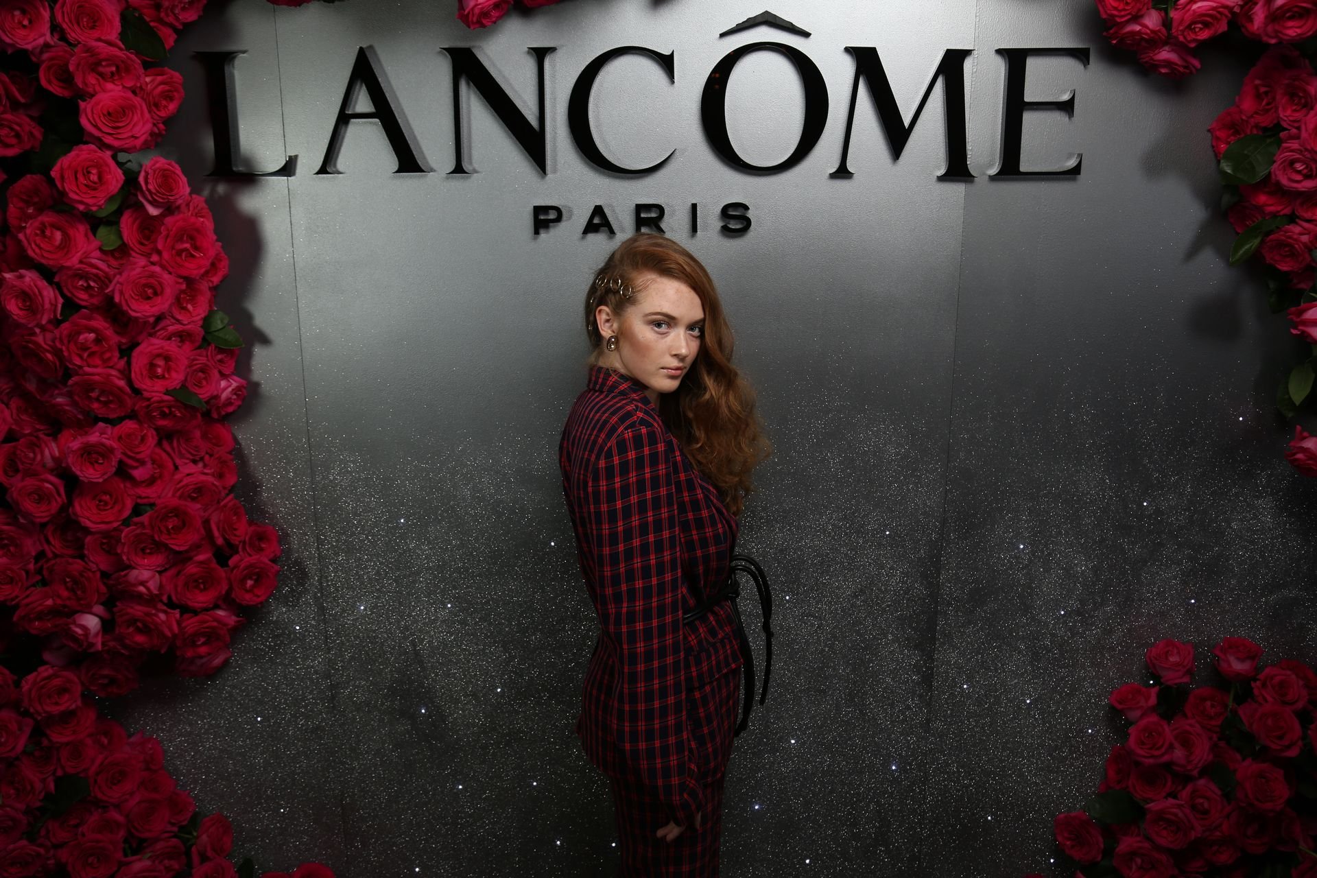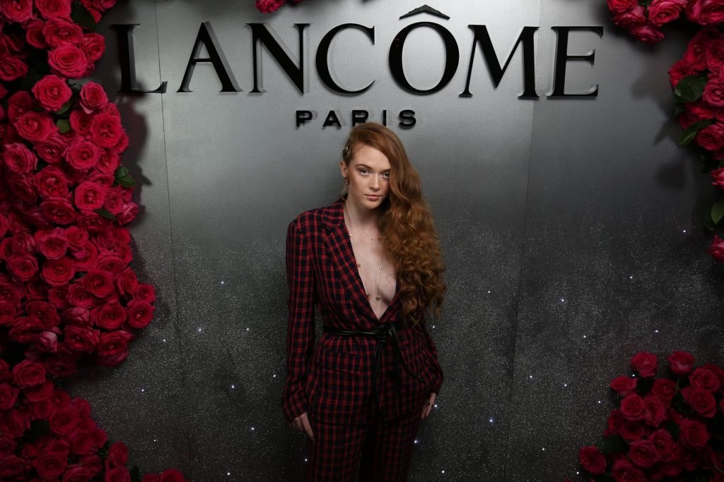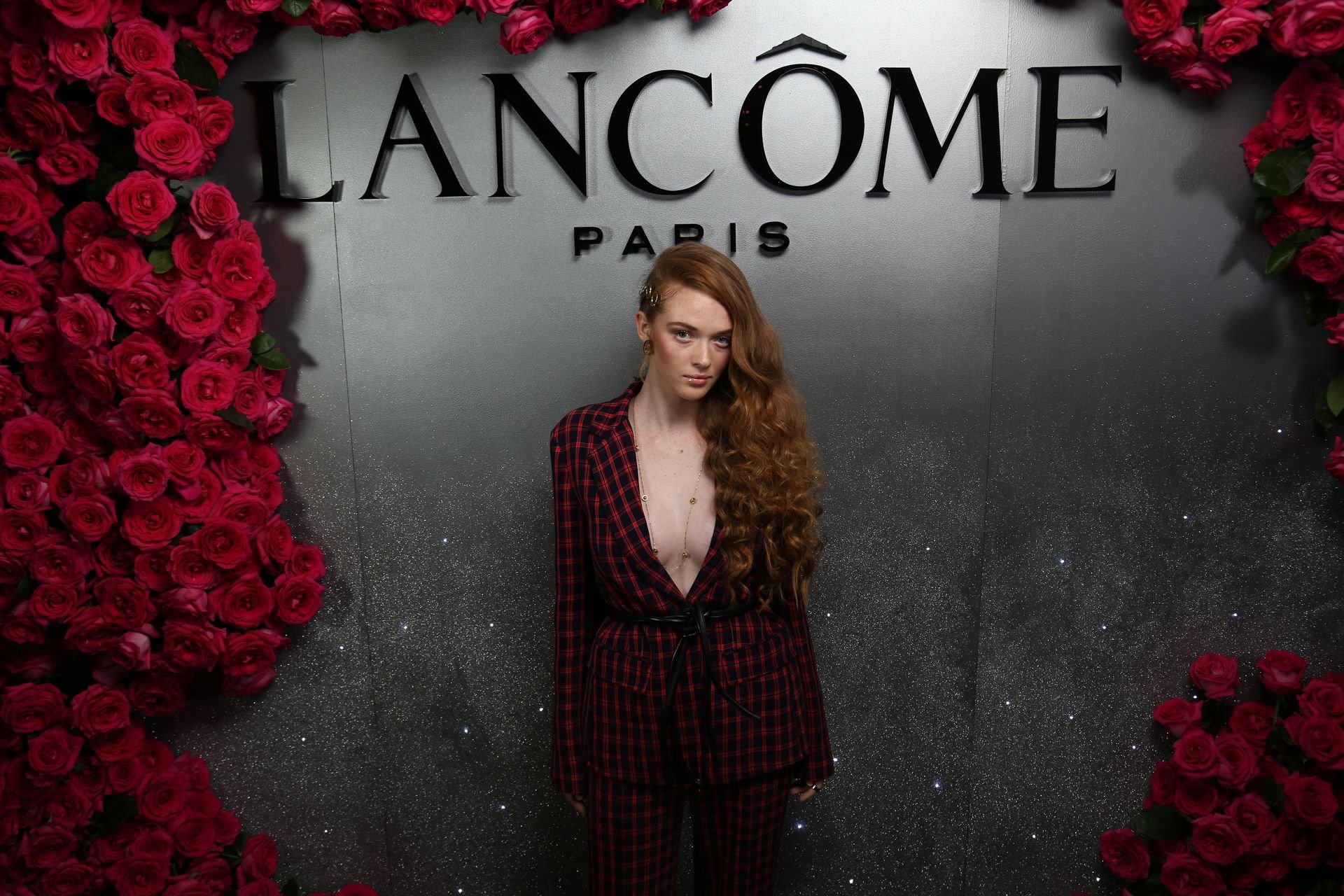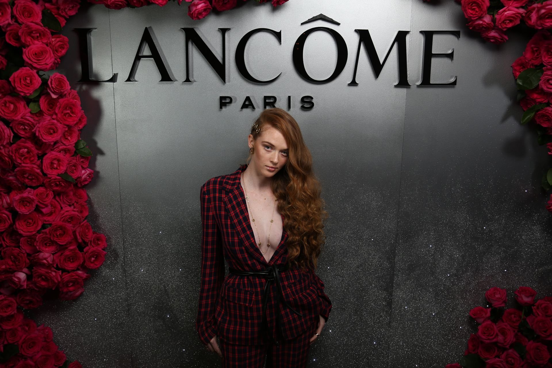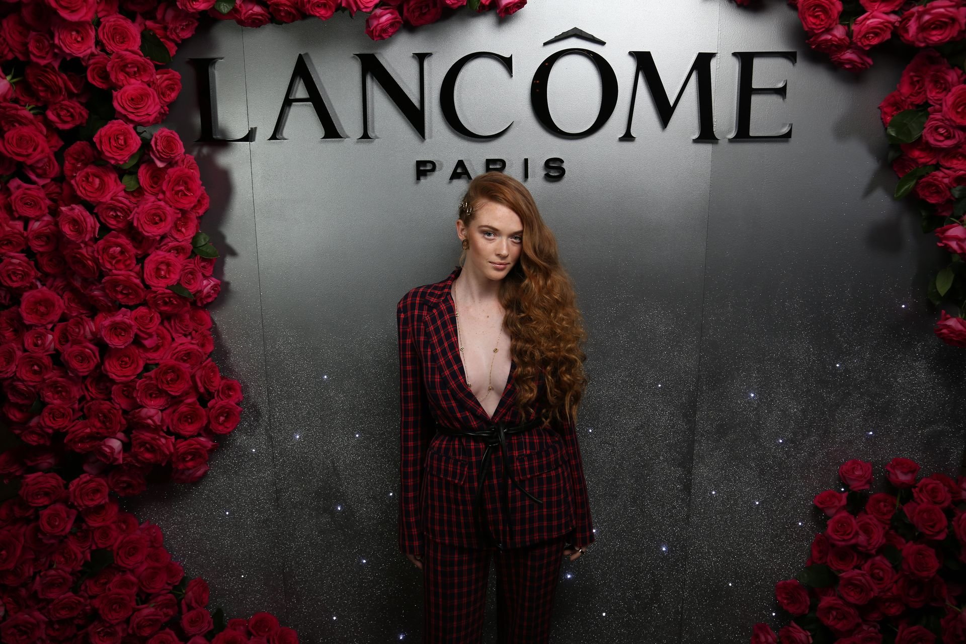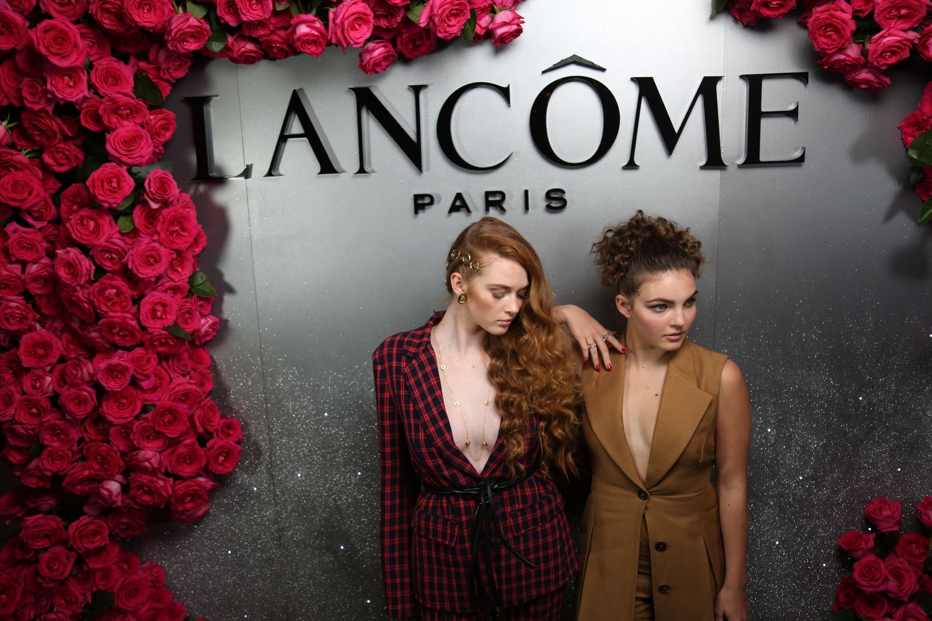Actrices jóvenes y sexys Camren Bicondova y Larsen Thompson asisten a la cabina de fotos de la fiesta navideña Lancome X Vogue en Los Ángeles, 30/11/2018.