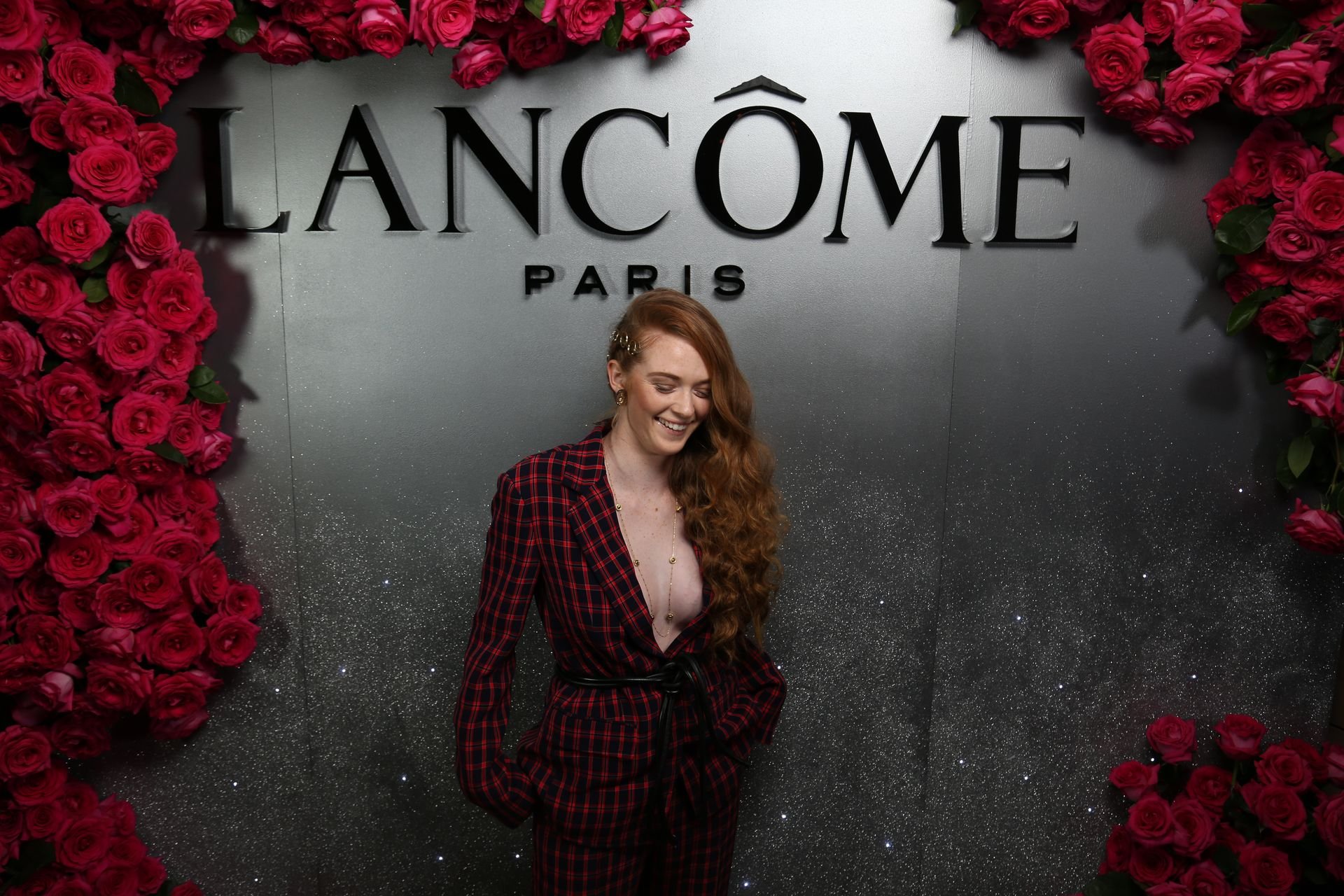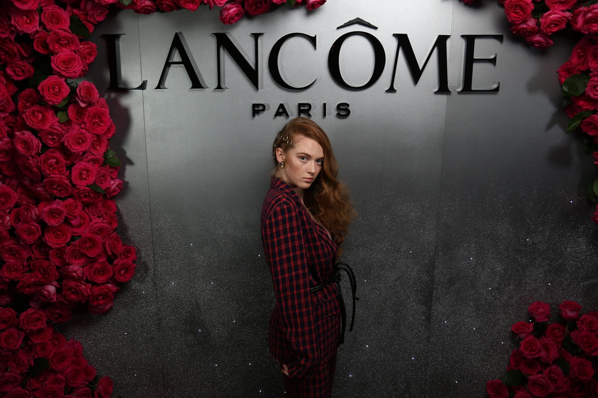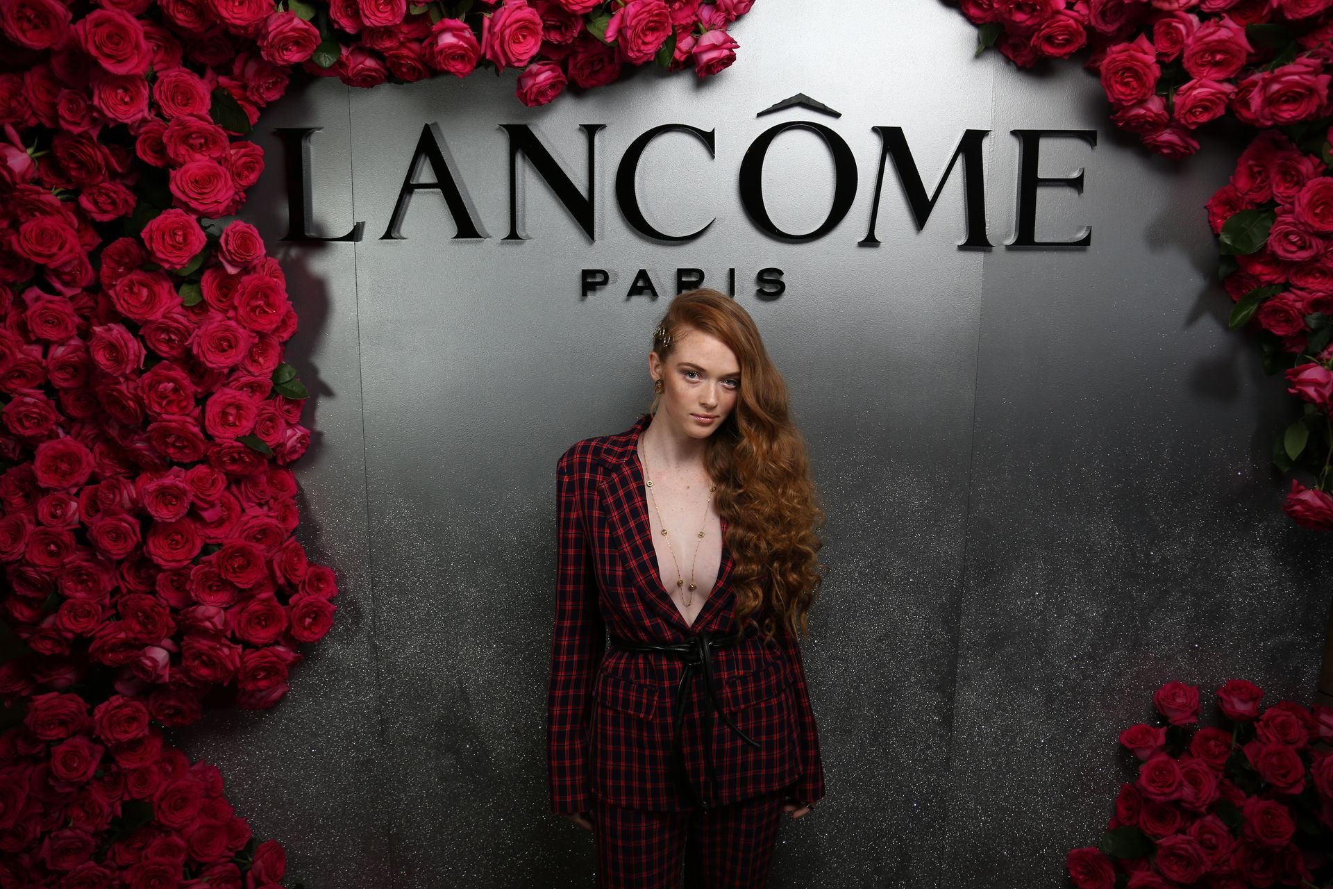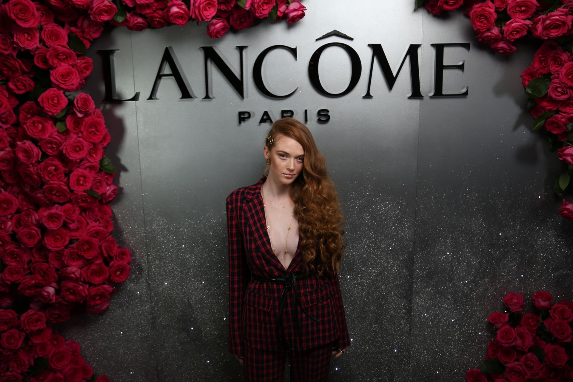 Actrices jóvenes y sexys Camren Bicondova y Larsen Thompson asisten a la cabina de fotos de la fiesta navideña Lancome X Vogue en Los Ángeles, 30/11/2018.