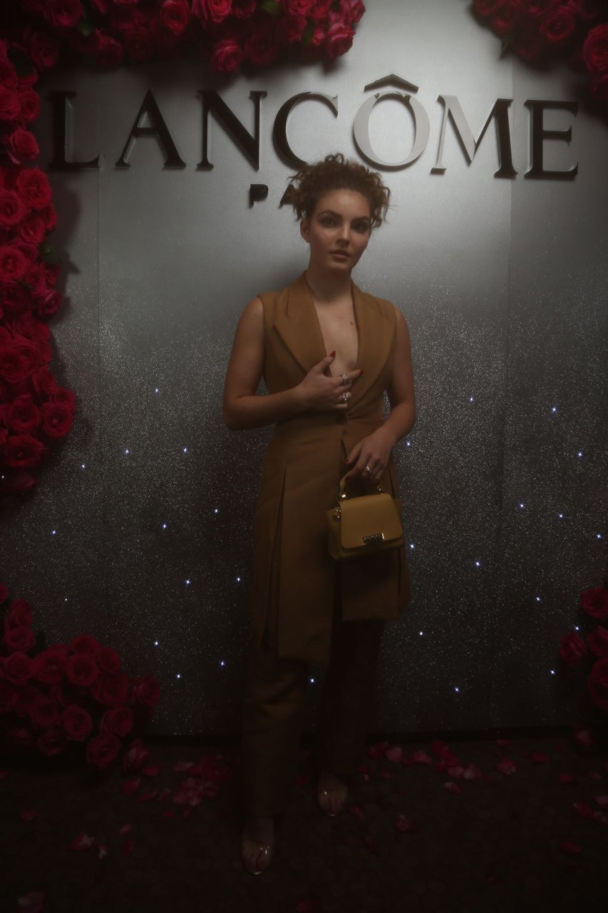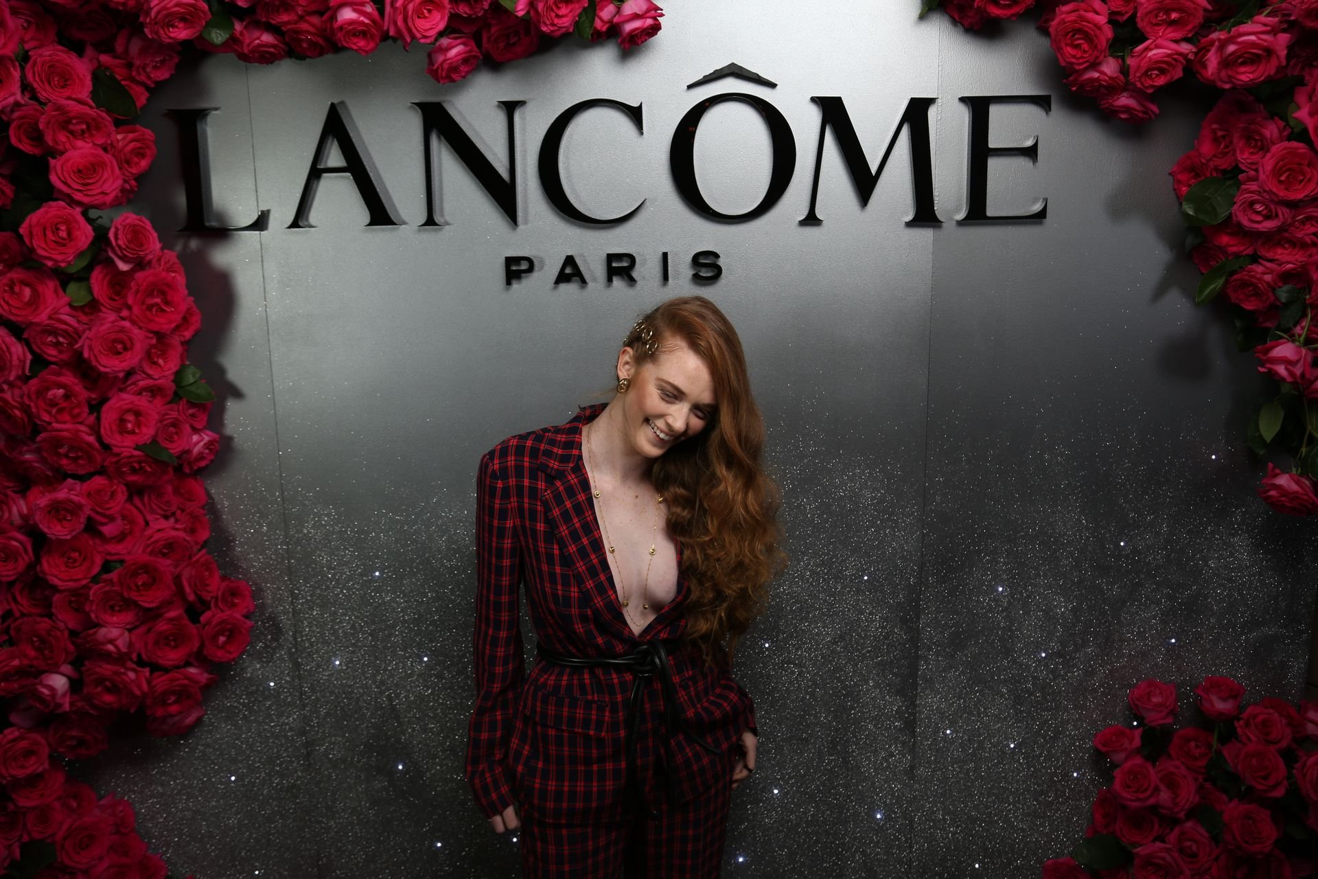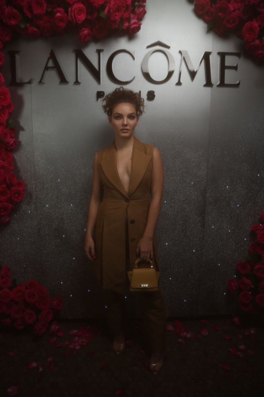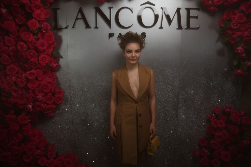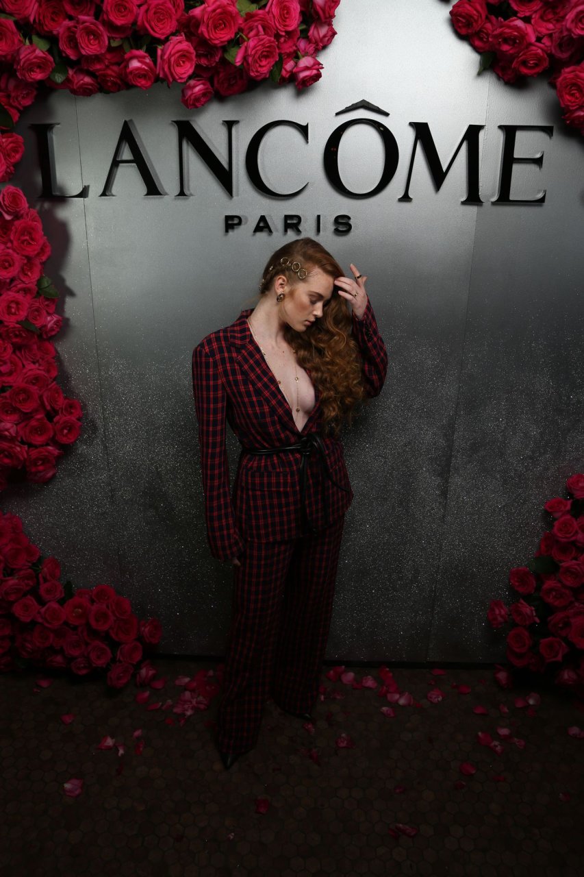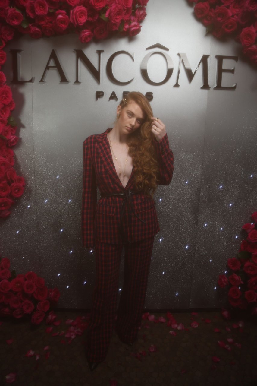 Actrices jóvenes y sexys Camren Bicondova y Larsen Thompson asisten a la cabina de fotos de la fiesta navideña Lancome X Vogue en Los Ángeles, 30/11/2018.