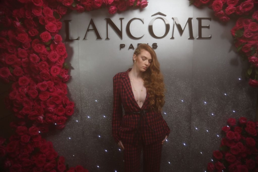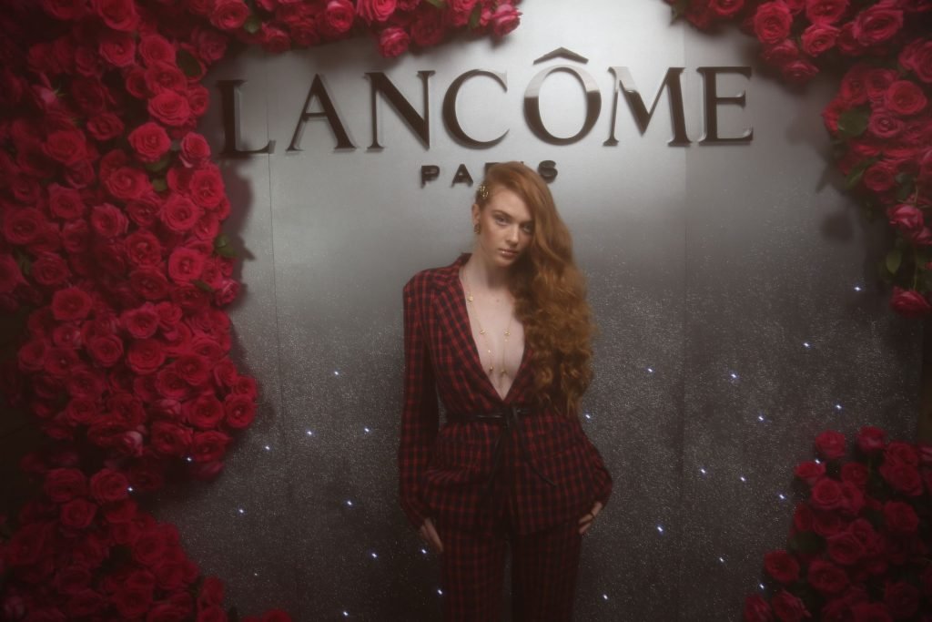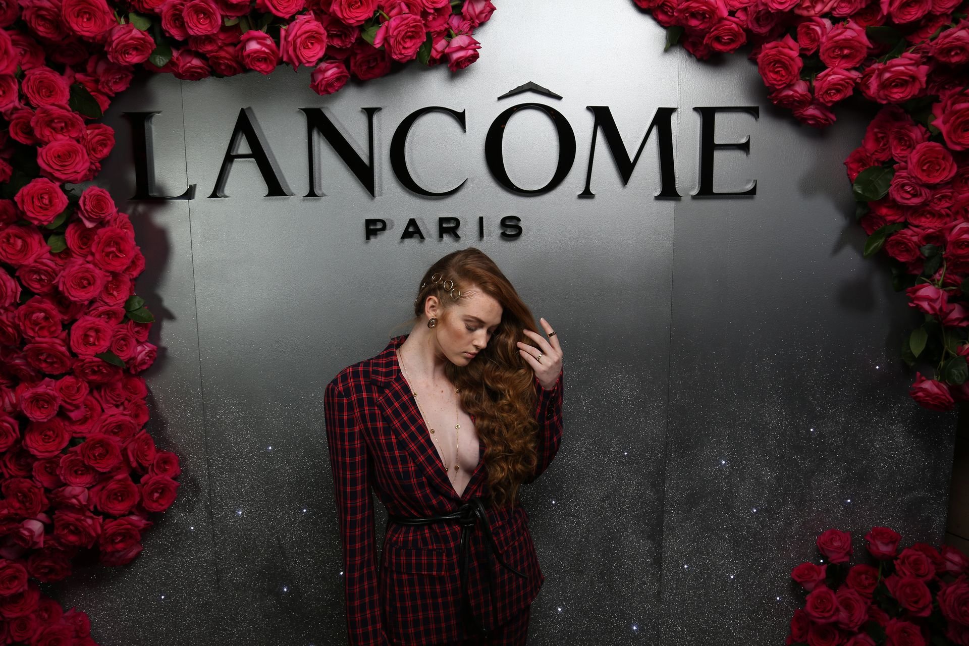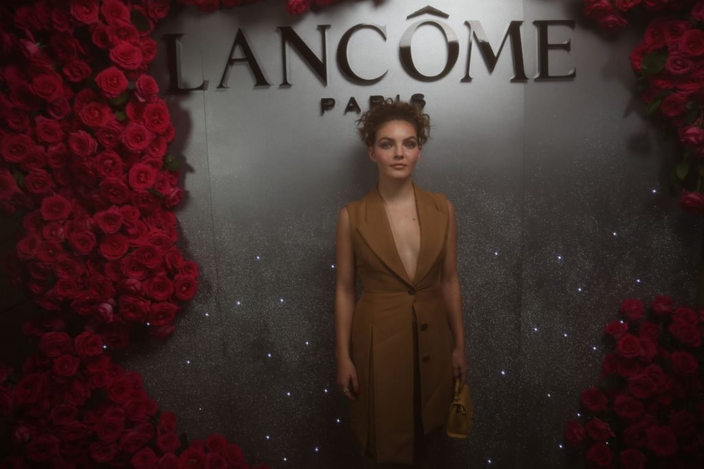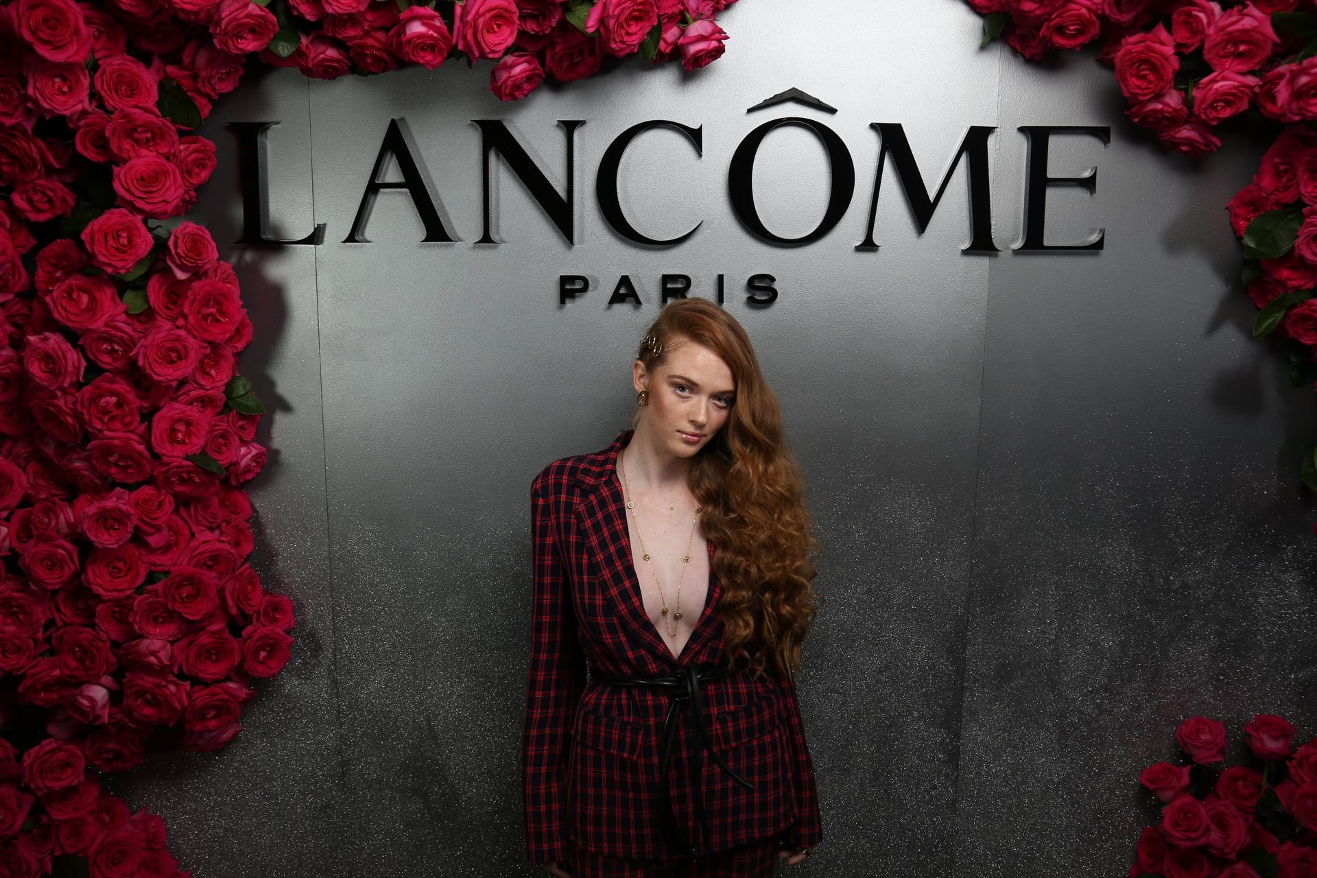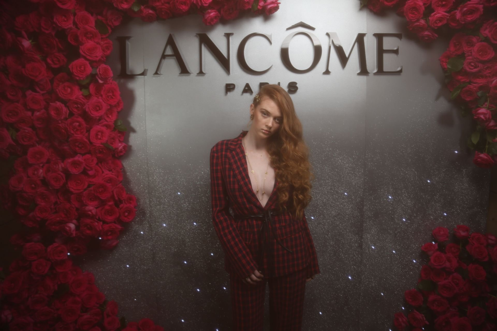 Actrices jóvenes y sexys Camren Bicondova y Larsen Thompson asisten a la cabina de fotos de la fiesta navideña Lancome X Vogue en Los Ángeles, 30/11/2018.