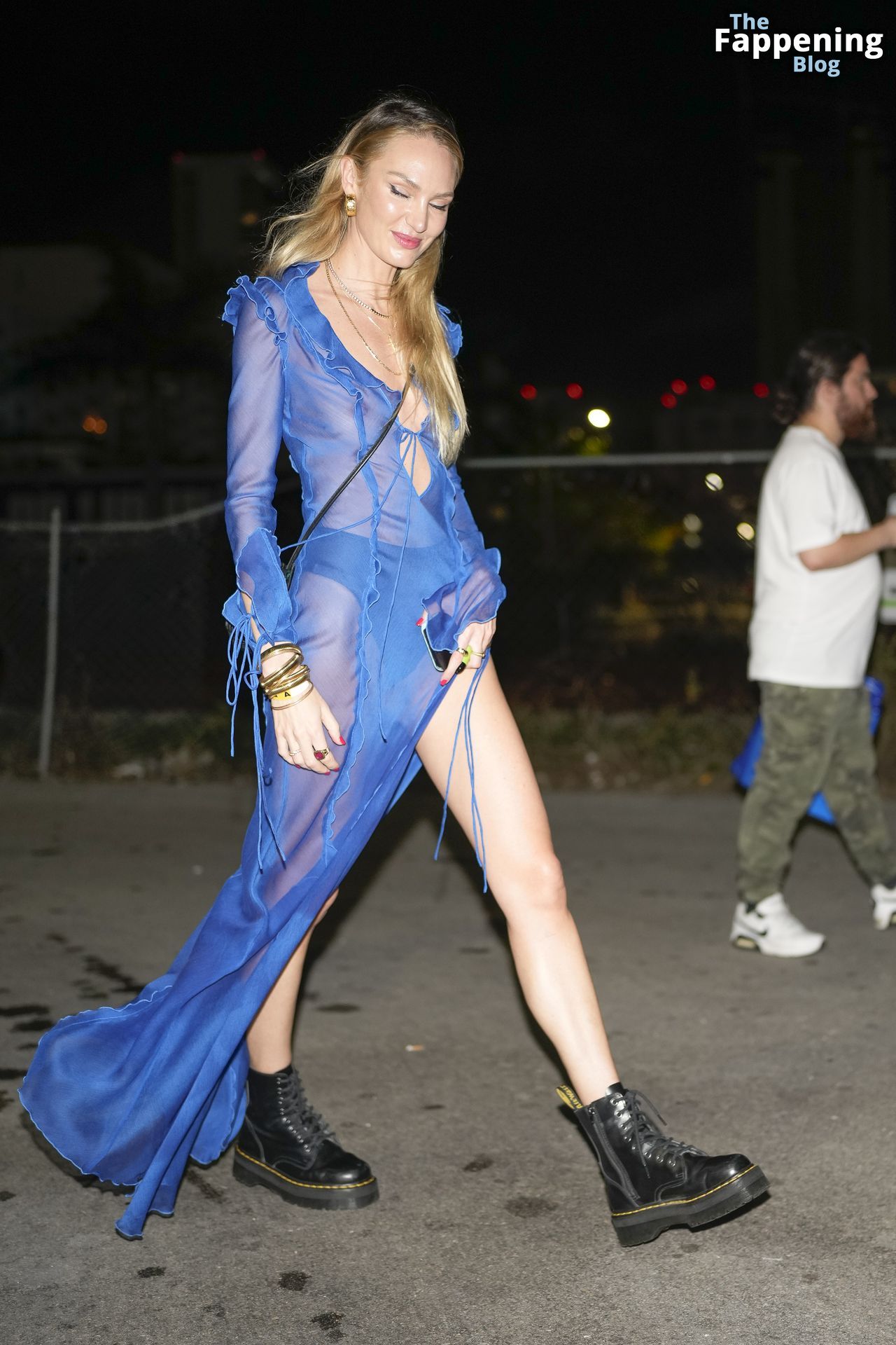 La supermodelo Candice Swanepoel deslumbra con un vestido azul transparente sin sujetador en la fiesta de cumpleaños de Anitta en Miami, Florida.