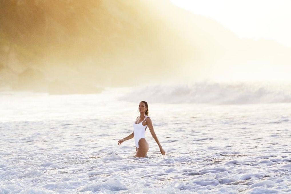 Model Candice Swanepoel, 29, promociona su nueva colección Tropic of C (2018).