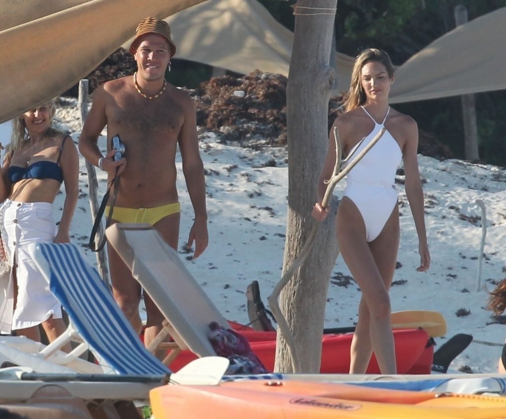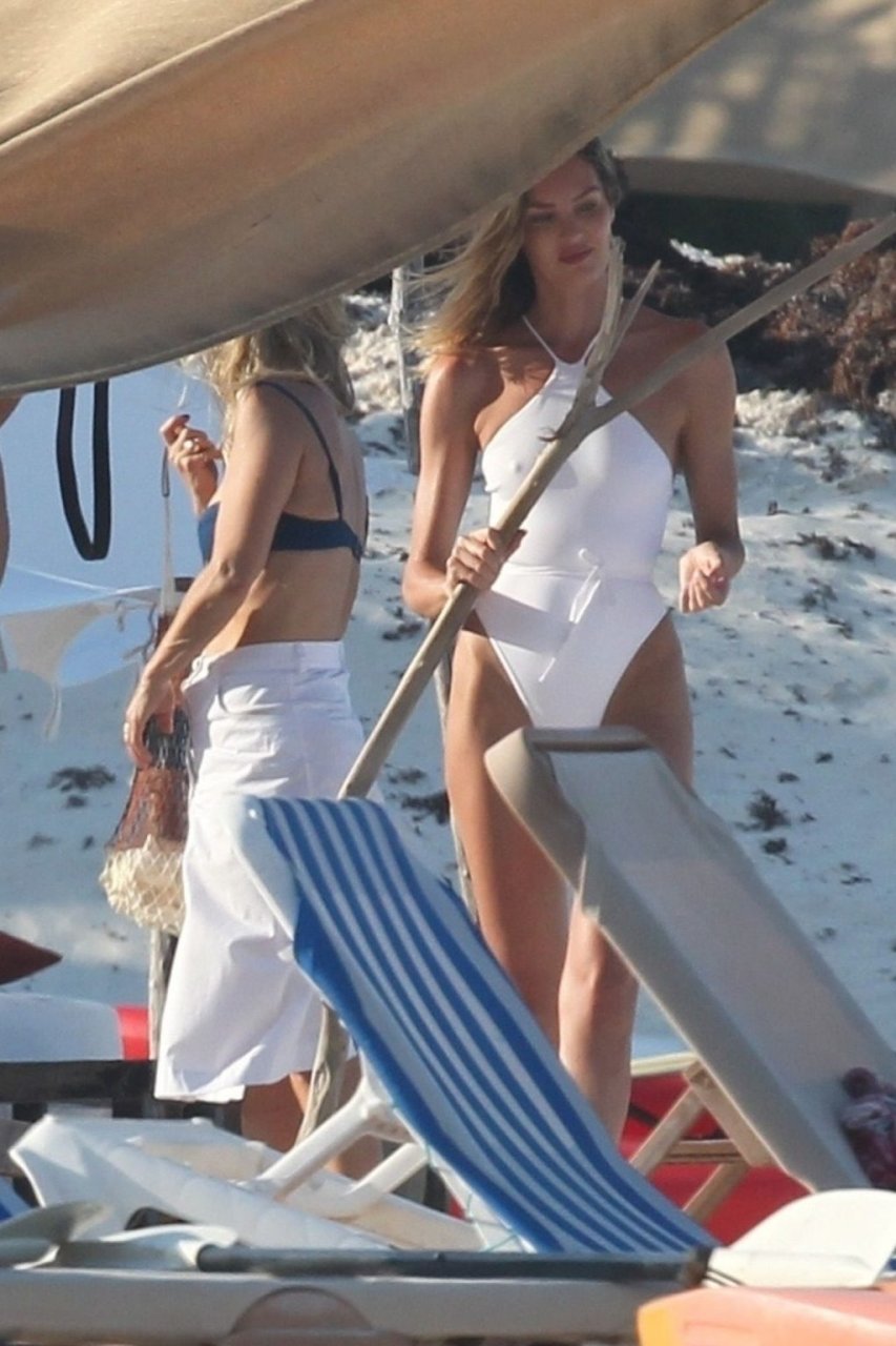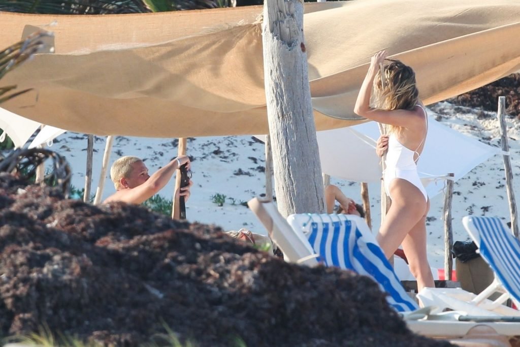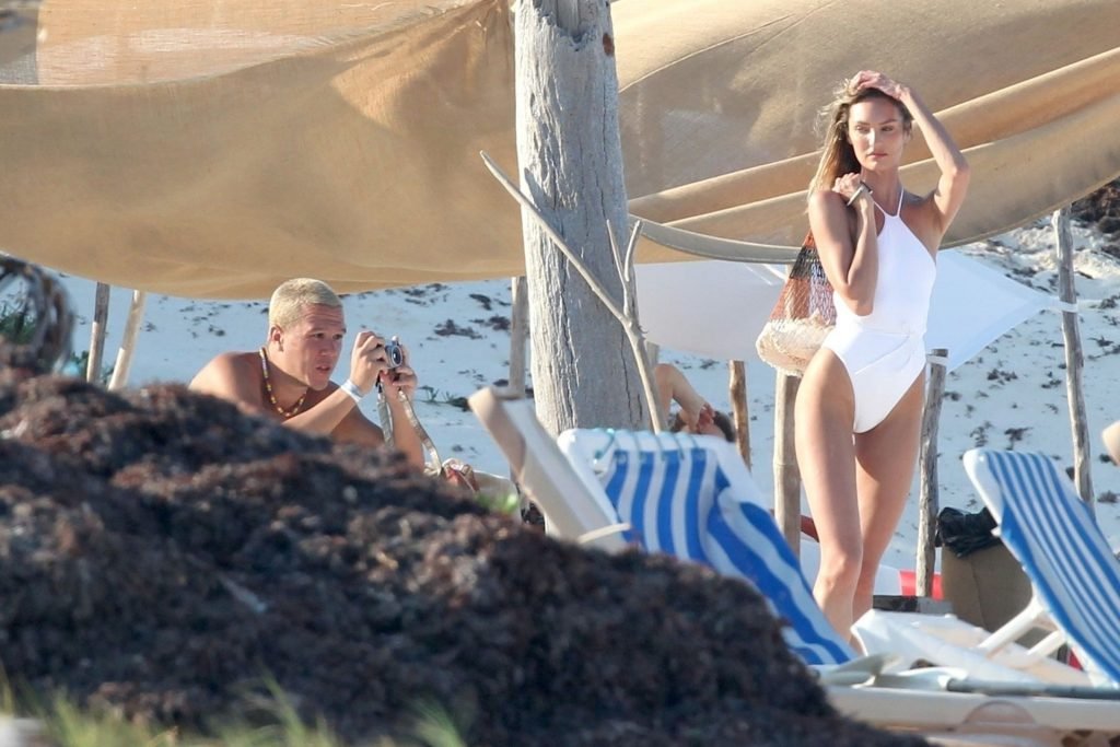Supermodelo Candice Swanepoel luce un traje de baño blanco mostrando su sexy trasero para una sesión de fotos en Tulum, 28/03/2019.