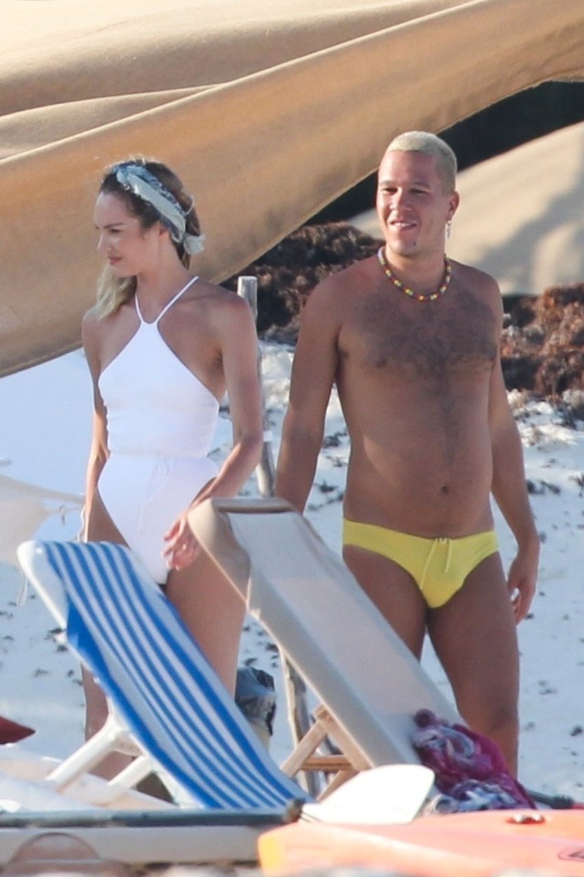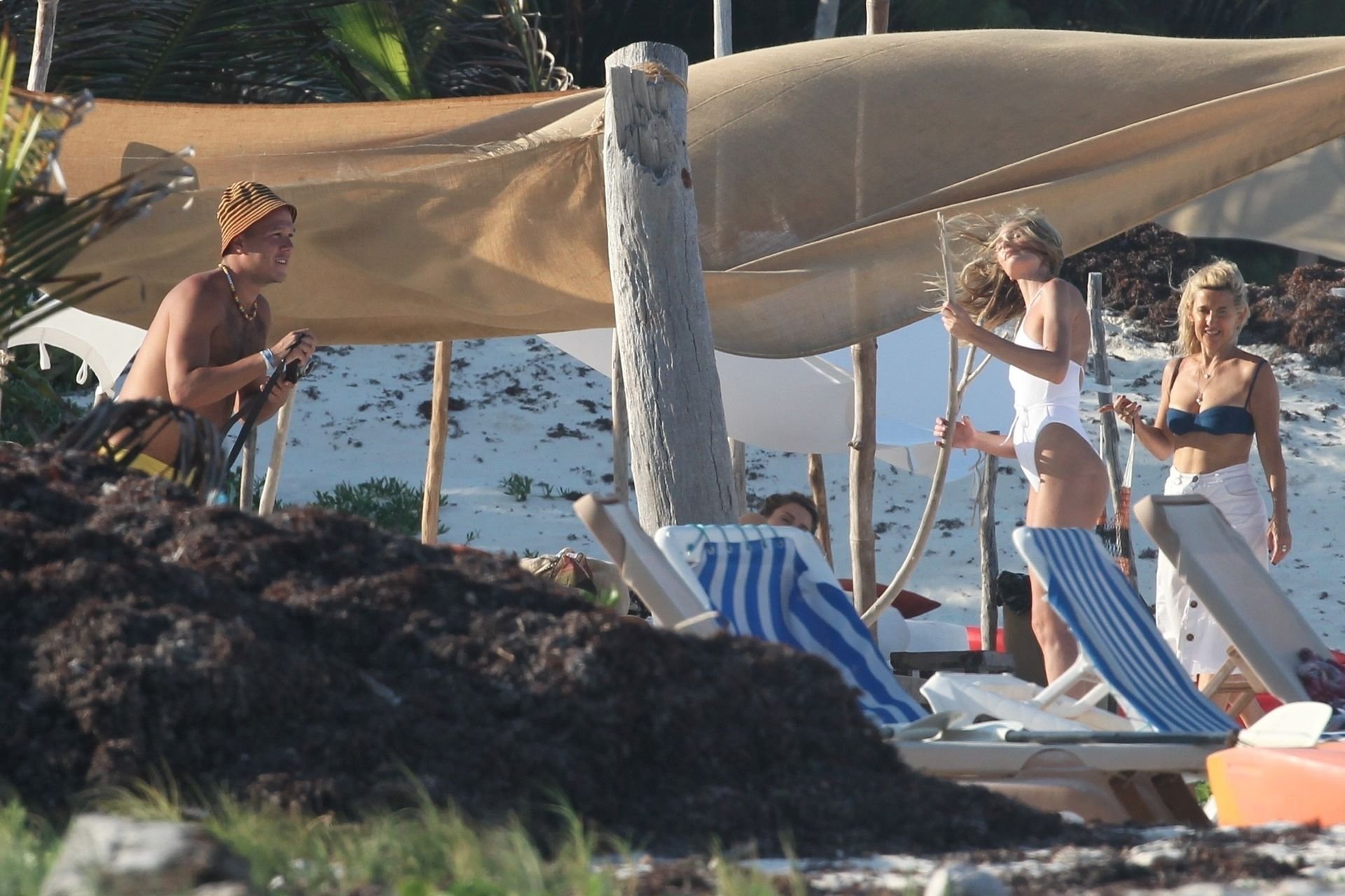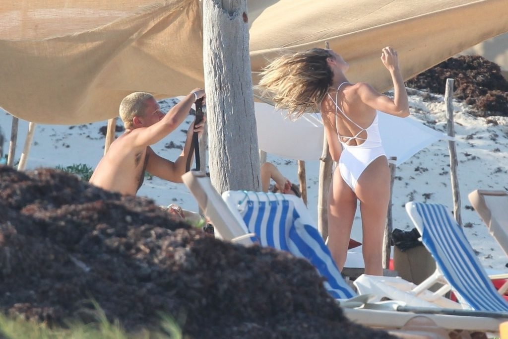 Supermodelo Candice Swanepoel luce un traje de baño blanco mostrando su sexy trasero para una sesión de fotos en Tulum, 28/03/2019.