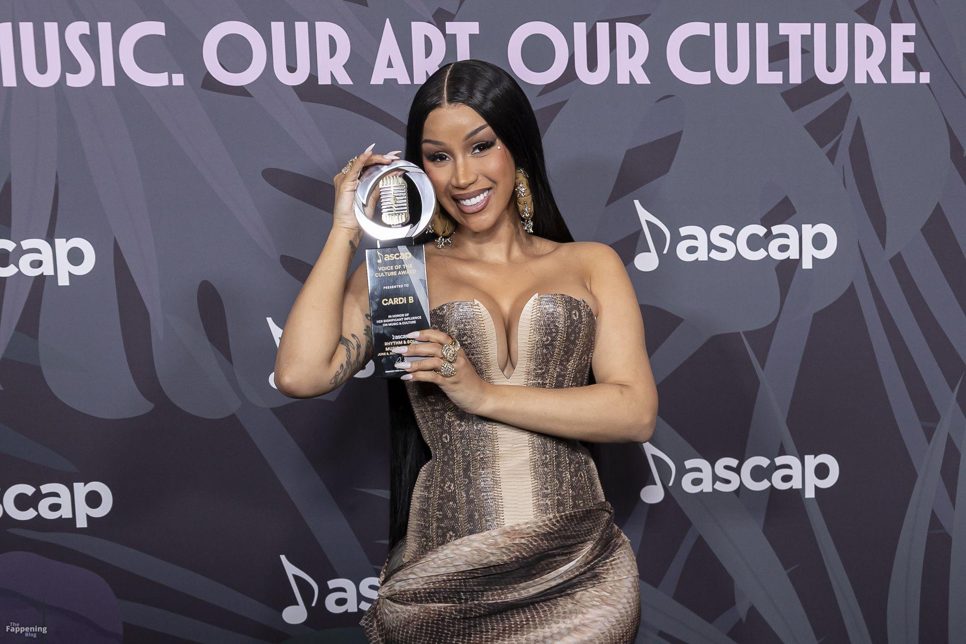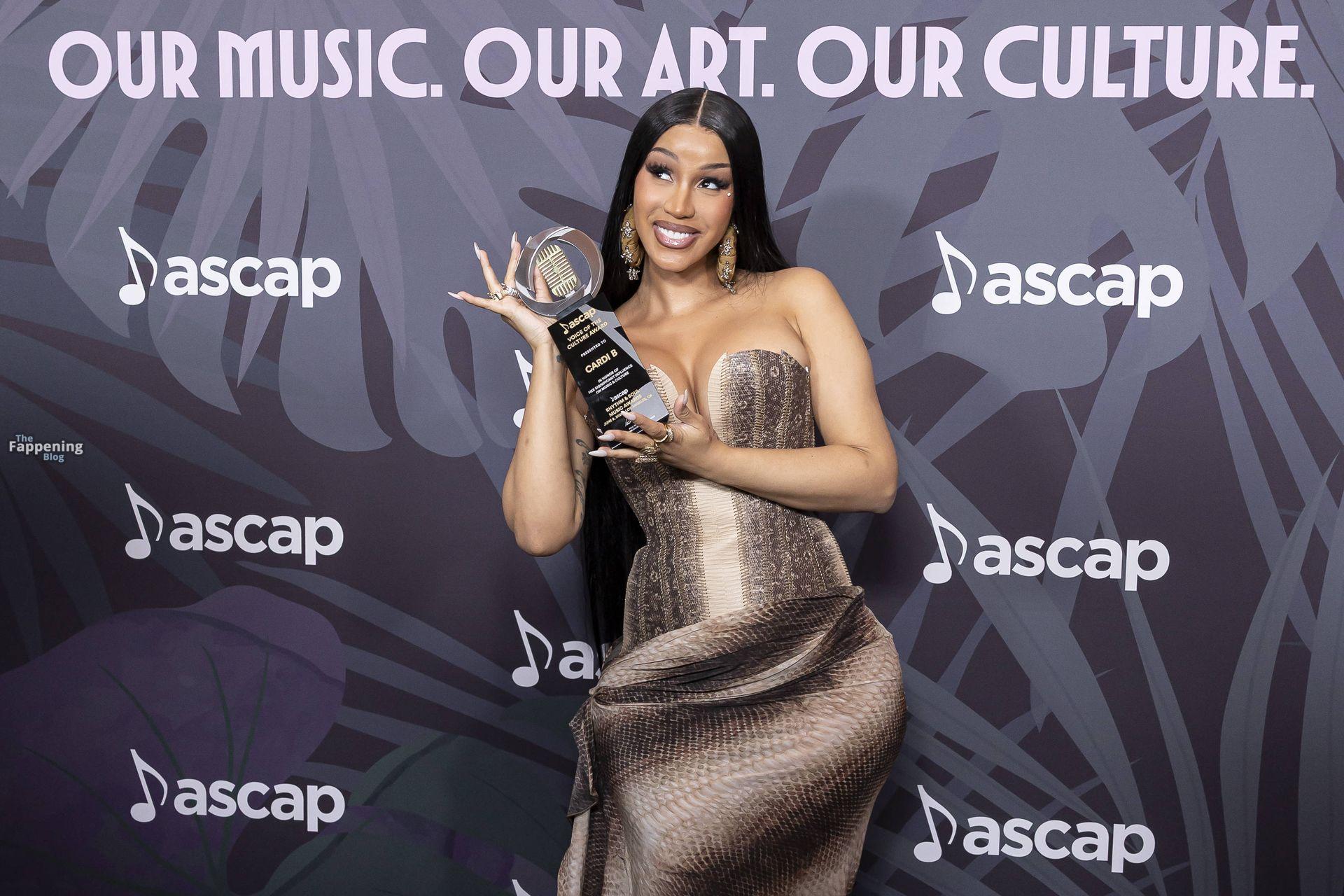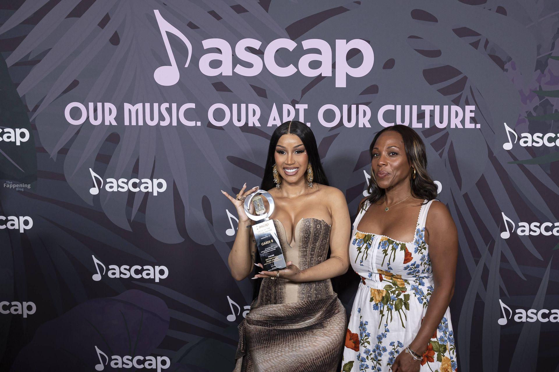 Cardi B llega a la alfombra roja de los premios ASCAP con su premio voces de la cultura en sus manos en el Hotel Four Seasons Los Ángeles en Beverly Hills.