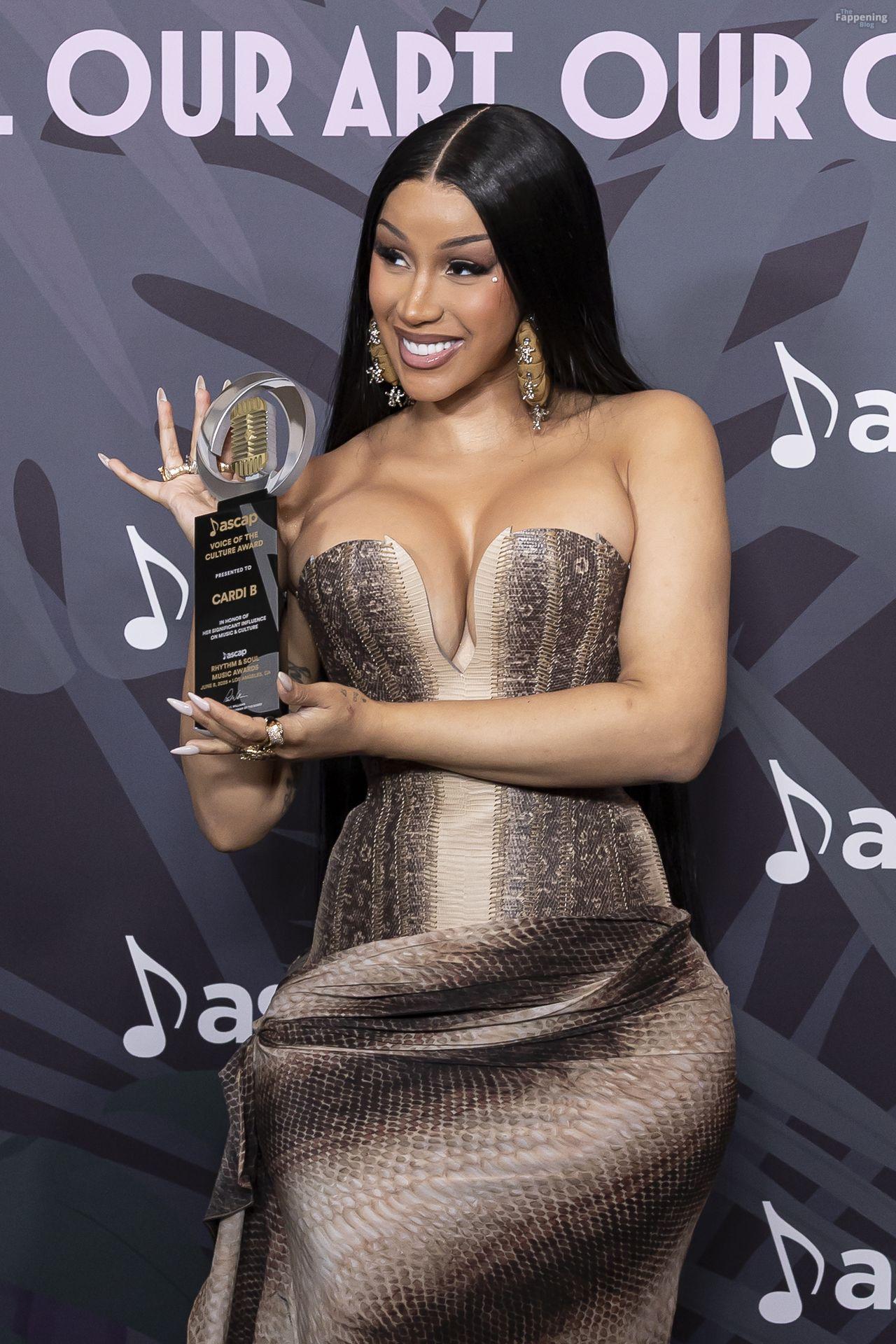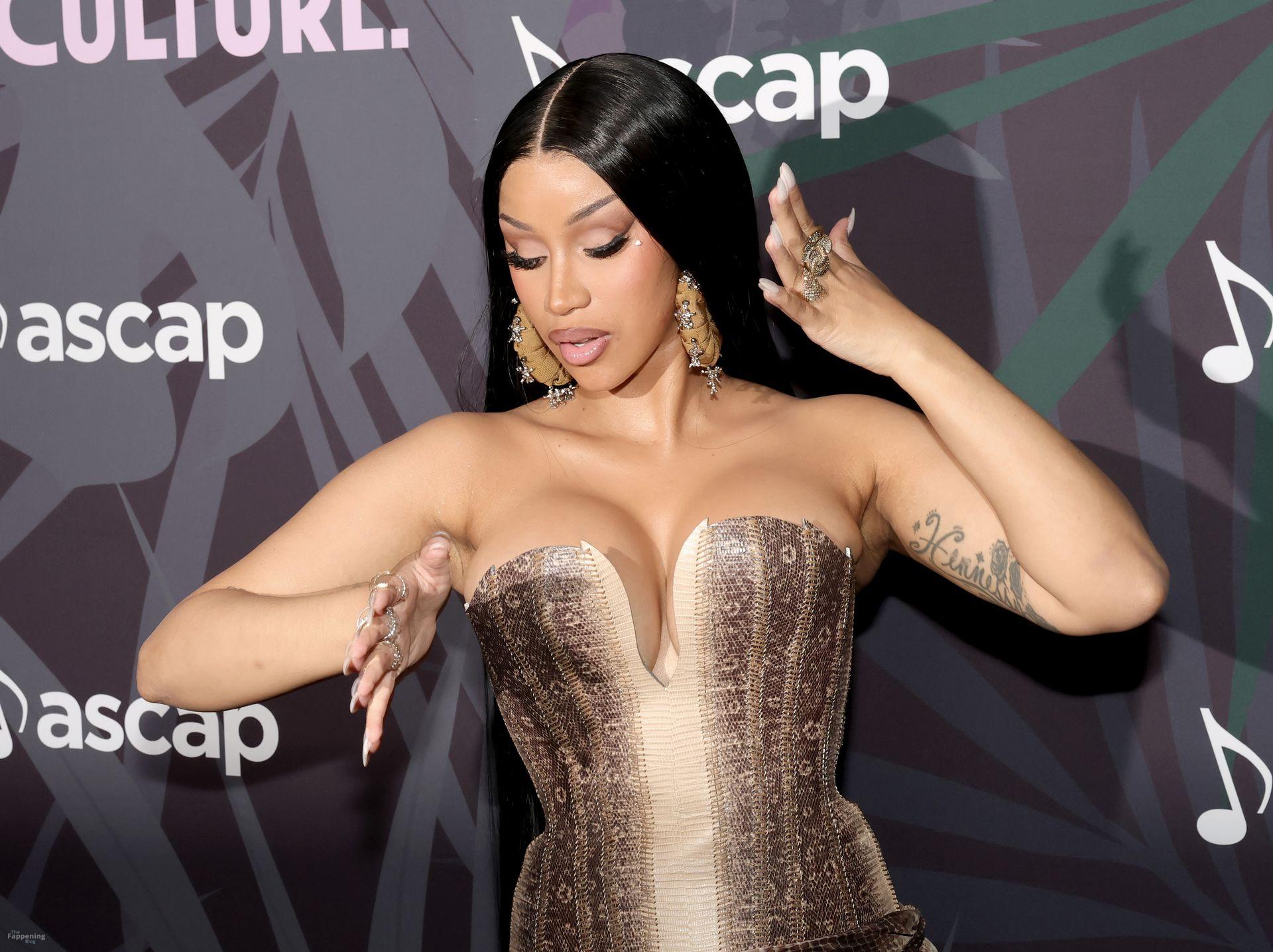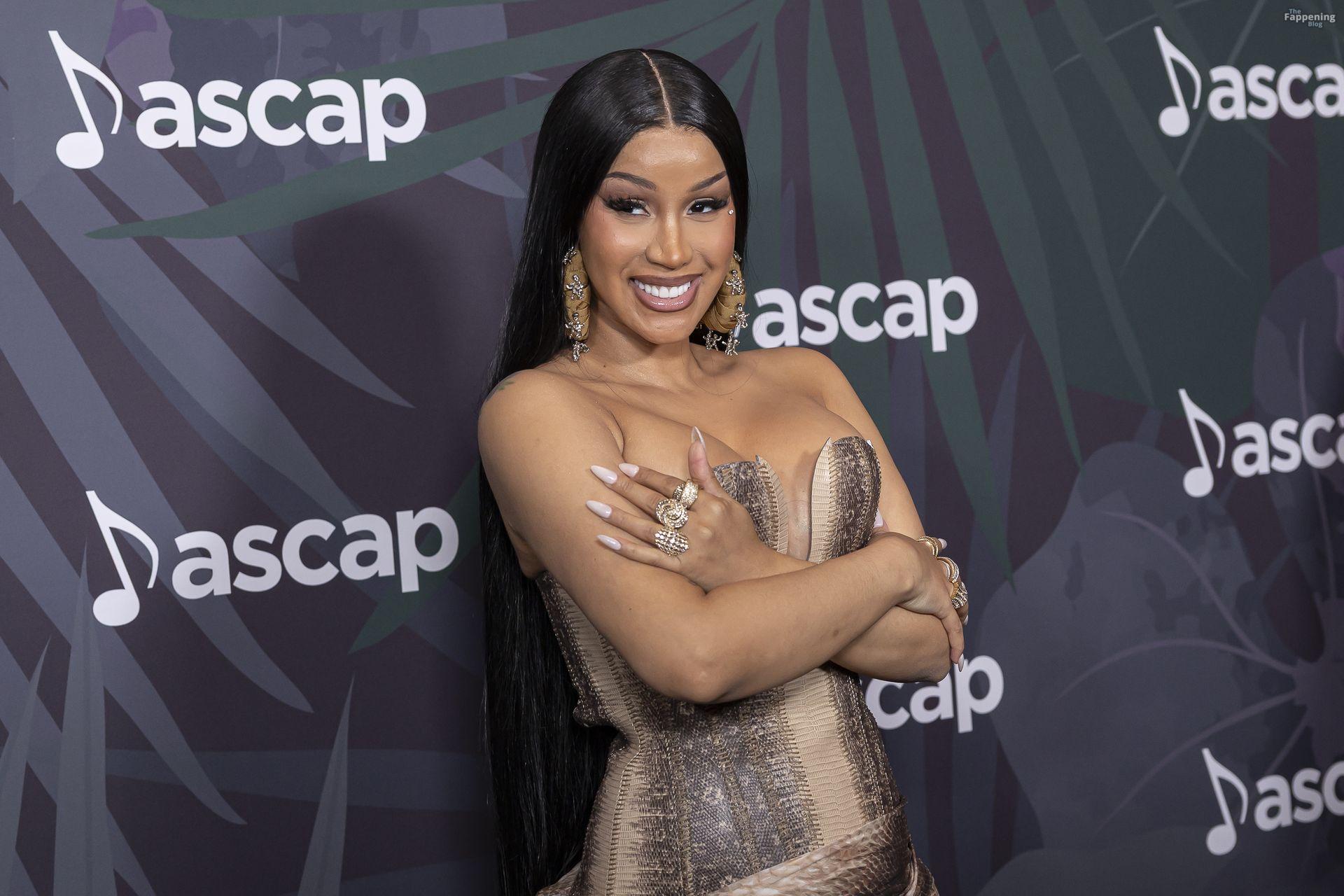 Cardi B llega a la alfombra roja de los premios ASCAP con su premio voces de la cultura en sus manos en el Hotel Four Seasons Los Ángeles en Beverly Hills.