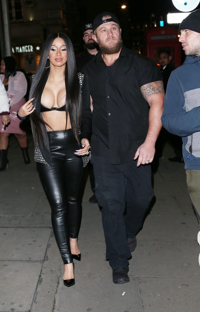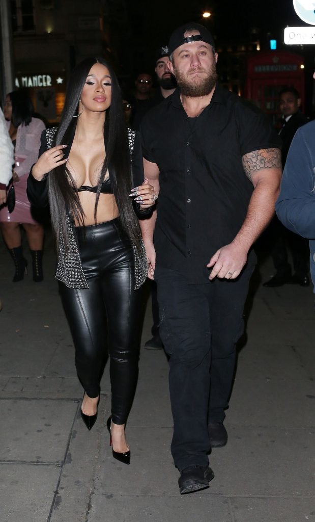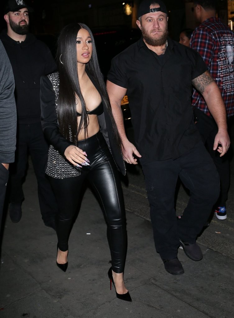 Cantante nominada al Grammy Belcalis Almanzar (también conocida como Cardi B) mostrando escote mientras pasa el rato en Tape London, un club privado para socios en Mayfair, Londres, 28/11/2017.