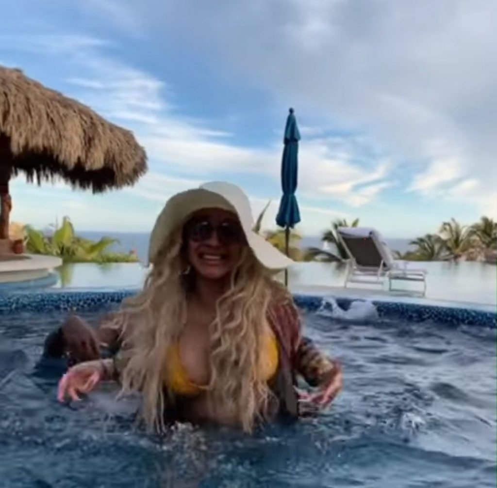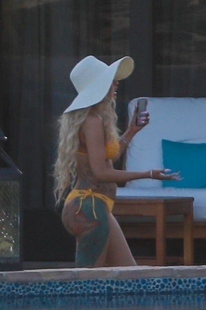 Cardi B muestra sus curvas con un bikini de hilo amarillo mientras continúa su escapada en Cabo San Lucas con su pareja intermitente Offset, 05/03/2019. La cantante parecía estar haciendo FaceTime con alguien en su teléfono celular, posiblemente Offset, quien se presentará con Migos como parte del Cabo Spring Break 2019 de JusCollege.