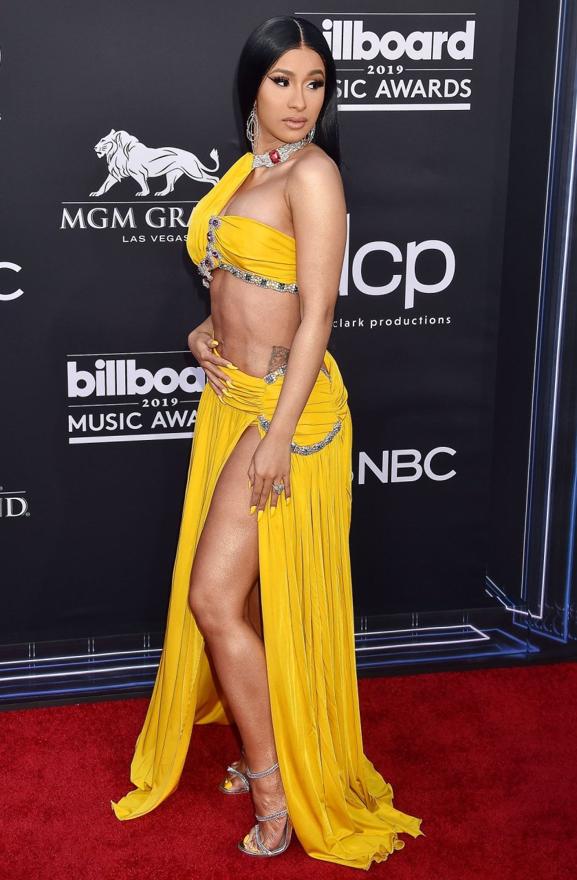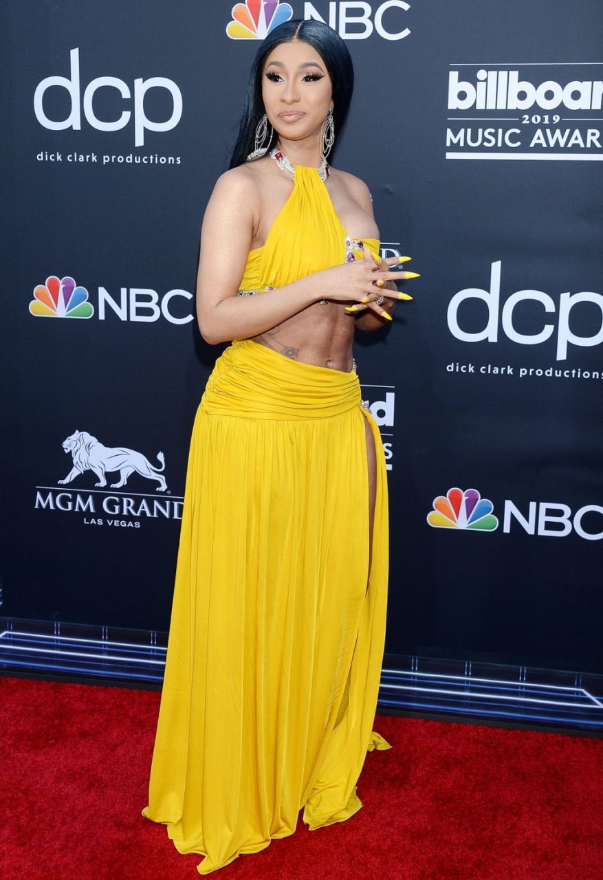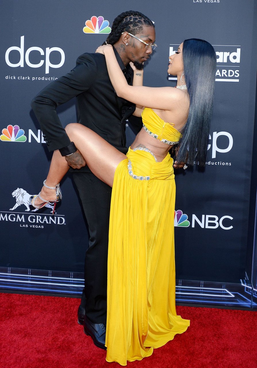 Cardi B deslumbra con un vestido amarillo en la alfombra roja besándose con Offset en los Billboard Music Awards 2019 en el MGM Grand Garden Arena en Las Vegas, 01/05/2019.