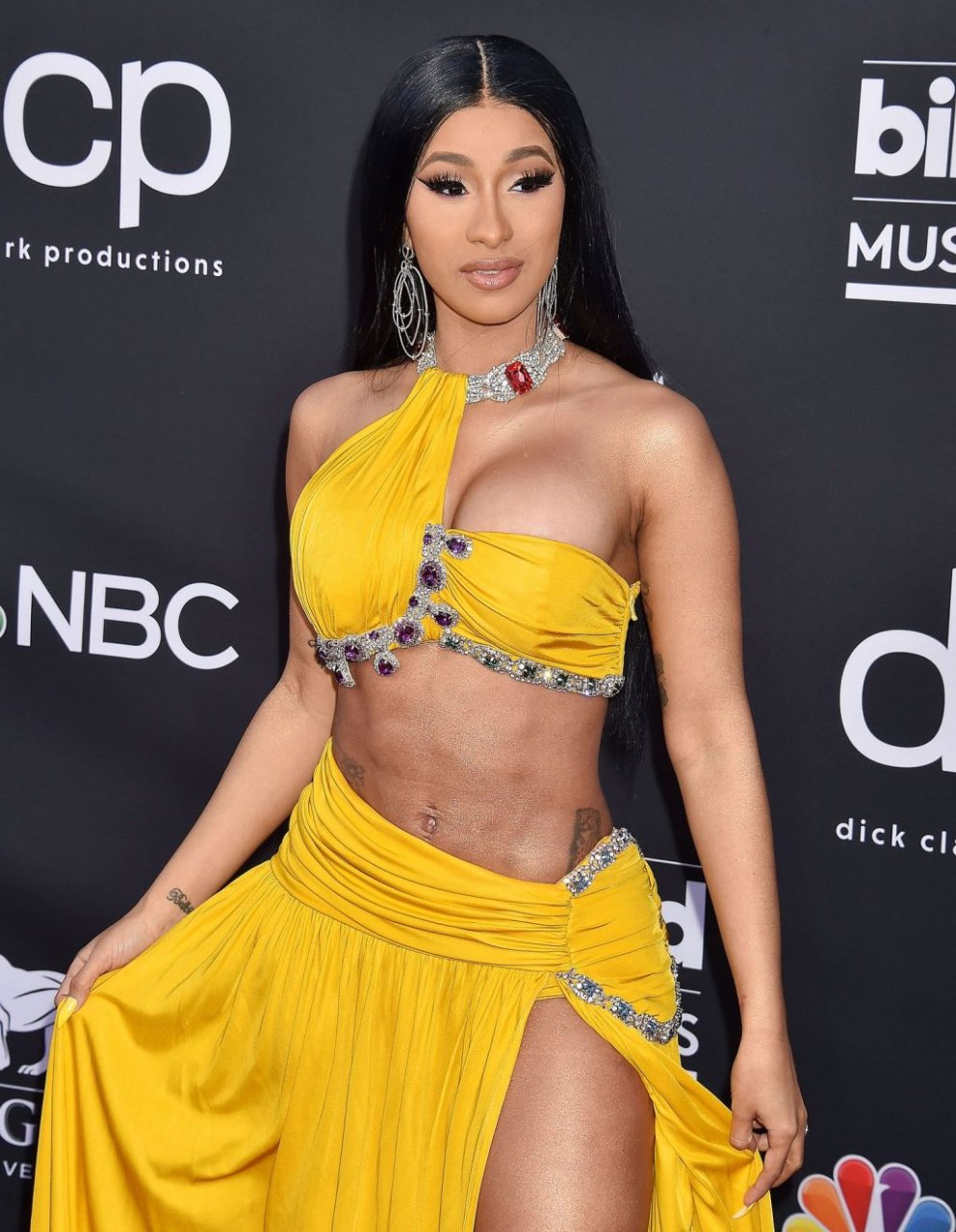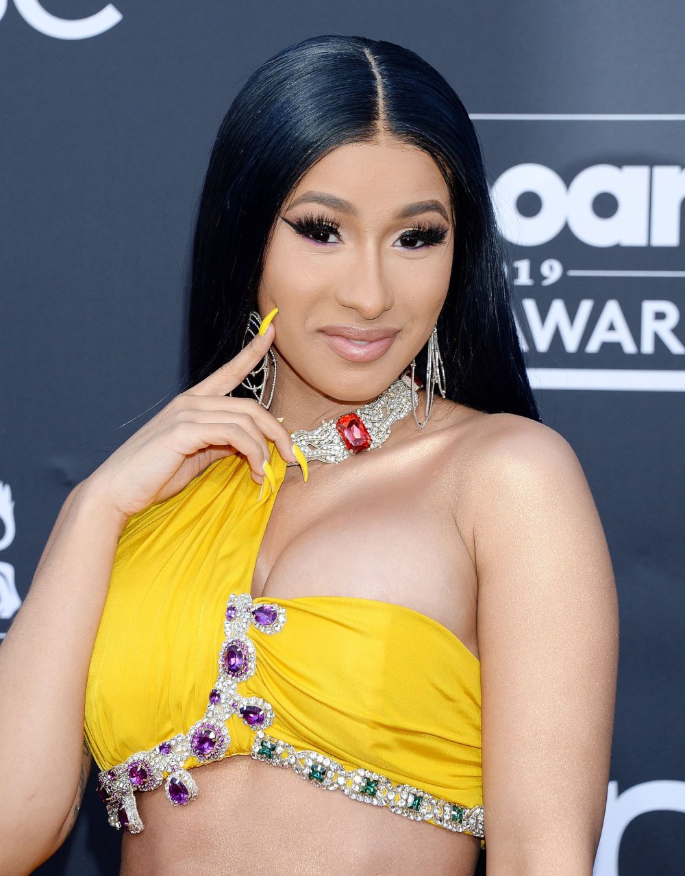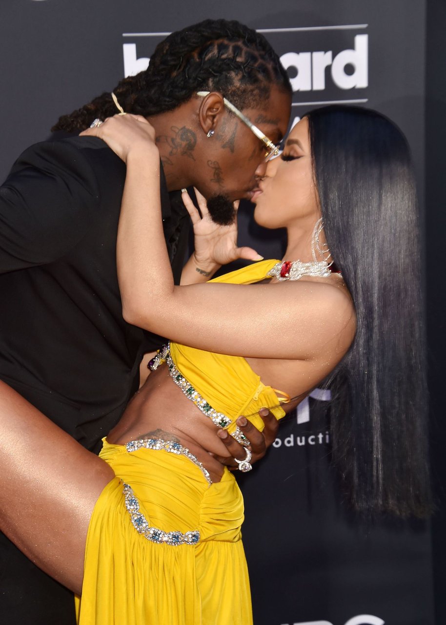 Cardi B deslumbra con un vestido amarillo en la alfombra roja besándose con Offset en los Billboard Music Awards 2019 en el MGM Grand Garden Arena en Las Vegas, 01/05/2019.
