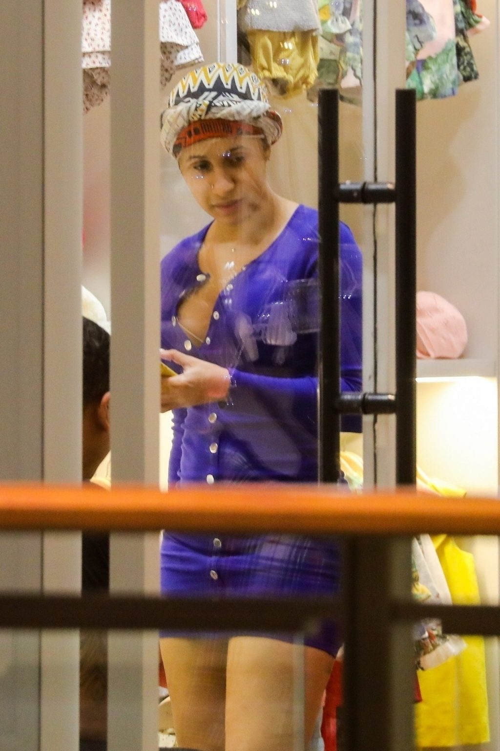 Cardi hizo varias paradas, incluyendo Louis Vuitton, Ferrari, Foot Locker, Gucci, una tienda de ropa para bebés y una panadería, atrayendo a multitudes de espectadores que esperaban verla. Mientras compraba, también se la pudo ver hablando por su teléfono celular mientras estaba escoltada por su equipo de seguridad.
